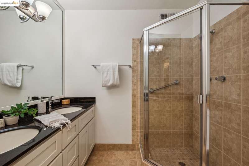 Welcome to St. Andrews Park in Oakland's Rose Garden. This level-in condo was tastefully updated throughout and boasts an ideal floorplan for easy living and entertaining. The living areas provide ample room for working from home. The galley kitchen opens to dining space. Sliding glass doors in the living and dining areas lead to a private balcony for al-fresco dining or relaxing. The primary bedroom features ample closet space & an updated ensuite bath with two sinks. The second bedroom also benefits from a large closet & is near the second full bath with shower over tub. Each floor in the building has two washers + dryers. The unit has a deeded parking space in the secure garage + storage unit. Ideal to the 580/24/80 interchange plus the AC Transit P Route with a direct route into San Francisco is just a block away. The neighborhood is a tight knit community that takes great pride in the blooming paths at the Morcom Rose Garden and hosts an annual block party for National Night Out. The neighborhood borders the city of Piedmont ideally situated between Piedmont Ave + Grand Lake. Enjoy being near shopping, coffee and dining. Take in a movie at the landmark Grand Lake theater or spend Saturday morning at the Grand Lake Farmers Market. Welcome home!