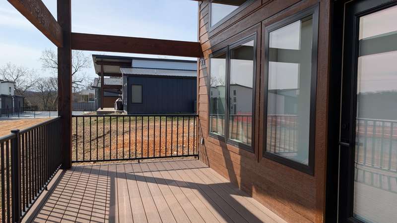 This home is just a short easy walk to the community's amenities, has a great lake view and is still just a gentle sloping walk to Table Rock Lake! The modern selections of this unit include granite countertops, luxury vinyl plank flooring, custom built cabinets, modern black lighting/plumbing fixtures, vaulted ceilings, open floor plan and large windows to not miss out on the picturesque views of Table Rock Lake. The exterior gives off some edgy vibes with their sharp, clean lines and bold colors. The community features a swimming pool, pavilion, space for yard games, a children's play area, a rock climbing wall, outdoor fireplace, and 2 boat docks with slips available for purchase! The best part of all is that your grounds maintenance is completely taken care of, all you have to do is come and enjoy the lake and all the Branson, Missouri area has to offer. These units are zoned for nightly rental so they are perfect for investment or just to help pay for that lake home you've always wanted!