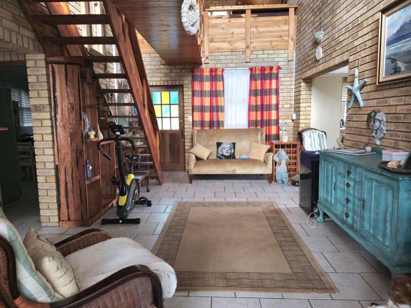 Low-Maintenance Holiday Haven in Stilbaai West This charming two-bedroom, two-bathroom facebrick home blends character with modern comfort, offering the perfect retreat for relaxation and entertaining. Step through the double-volume entrance into a warm, open-plan living space featuring a cozy fireplace. The well-designed kitchen flows into a spacious family room, while a converted garage now serves as an elegant dining area. A striking wooden staircase leads to a versatile loft with access to an undercover balcony?Çöideal for enjoying Stilbaai?ÇÖs fresh air. Unique windows flood the home with natural light, enhancing its inviting atmosphere. Both generously sized bedrooms include built-in cupboards, with the main bedroom boasting an en-suite. A second bathroom provides convenience for guests. A separate lounge offers a quiet retreat, completing this exceptional holiday home.