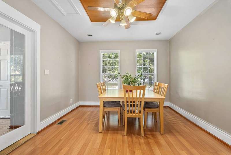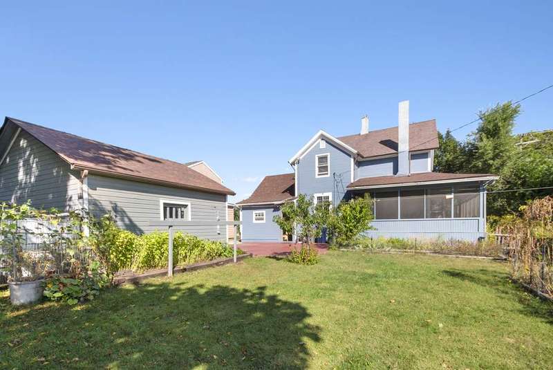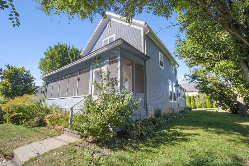 Welcome to this beautiful home in the heart of Elgin, perfectly situated on a corner lot. Enjoy your morning coffee or relax on the wraparound enclosed front porch. As you step inside, you will be greeted by gleaming wood laminate flooring and an open floor plan. The living room features white trim, built in cabinets and a brick fireplace, creating an inviting atmosphere for relaxation and entertainment. The dining room is equipped with wood laminate flooring, white trim, can lighting, and a fan. Bright and sunny kitchen features many cabinets, counter space, and an island. Mudroom off the kitchen is perfect for additional storage. Main floor bedroom has wood laminate flooring and beautiful french doors. The full hallway bathroom completes the main level. Upstairs you will find 2 nice size bedrooms both featuring hardwood flooring. 1 bedroom includes a walk-in closet and the other bedroom offers a bonus room, that is perfect for an office, playroom, or walk-in closet. Full hallway bathroom on the 2nd floor. Full basement with lots of space for storage. Newer windows throughout the main and 2nd floor of the home. Sprawling backyard features a large patio, perfect for entertaining. 2 car detached garage currently being used for storage, but has potential to be converted back. Don't miss this opportunity to own a meticulously maintained home. Schedule your private showing today! Property sold as-is.