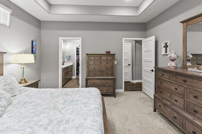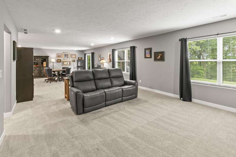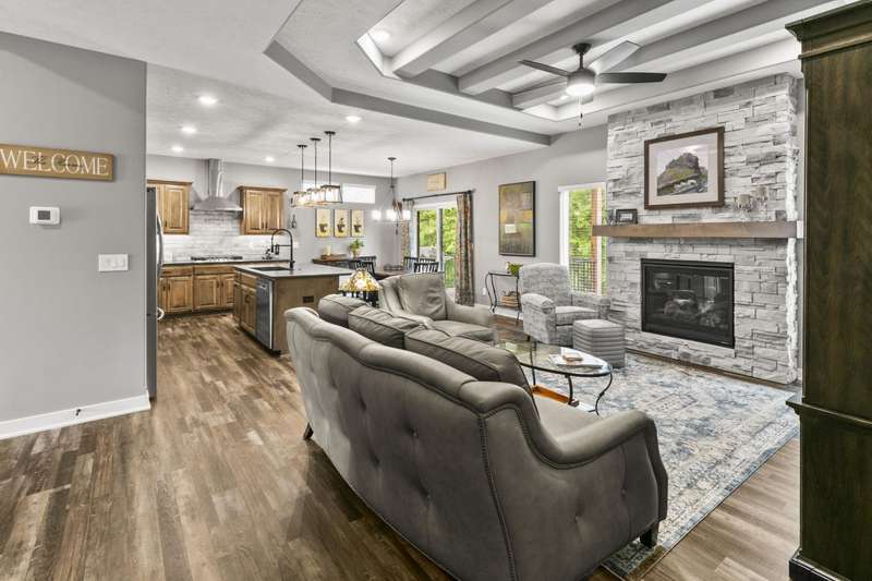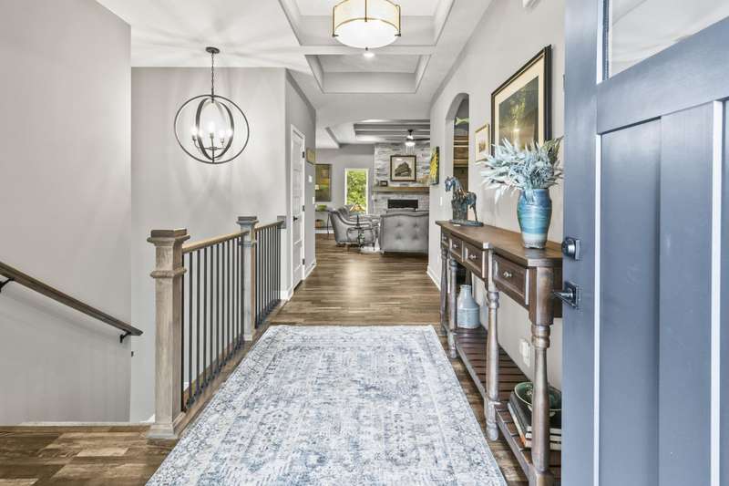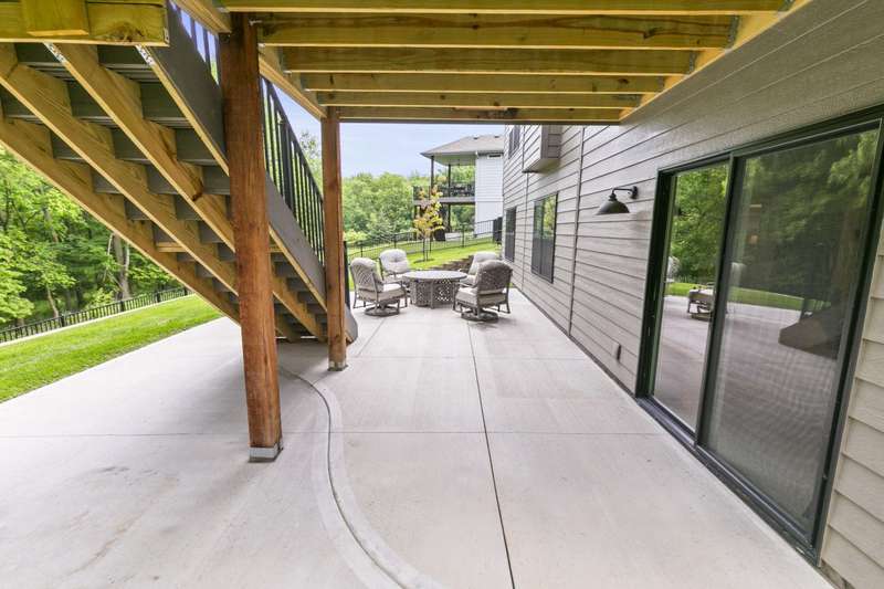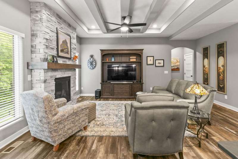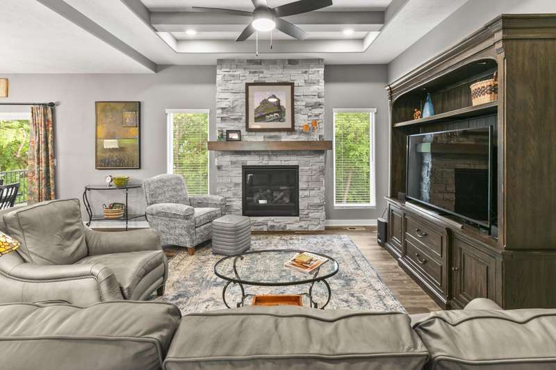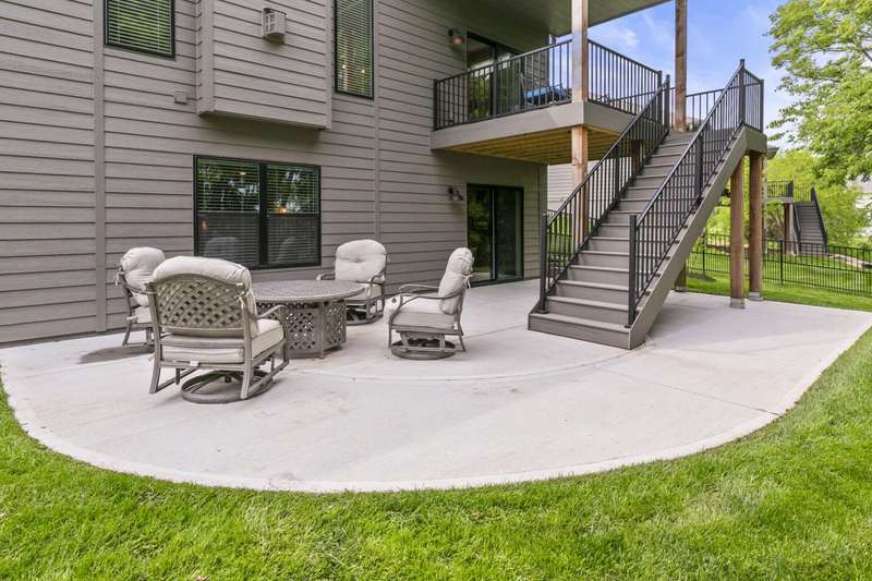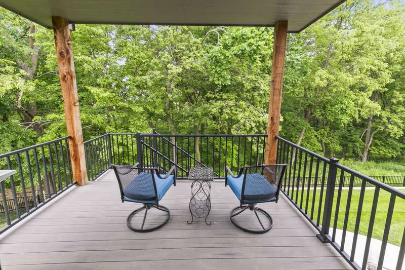 This is a stunning free standing villa built with love & all the upgrades! Backing to trees with great outdoor space. Open floorplan with a stone to ceiling fireplace, walk in pantry, primary suite is spacious w/walk-in closet & 3/4 bath, large 2nd bedroom, main bathroom w/soaking tub & laundry room rounds out the main floor. Lower level is finished with a generous family room, bathroom, 3rd bedroom & storage. If you are looking for easy living this is it! Since this a free standing villa mowing and snow removal (after 2'' of snow) $425 a quarter. Some of the upgrades-Black steel fencing, custom holiday lighting, leaf guards, extended patio, maintenance free decking, garage fully insulated, custom window coverings, upgraded flooring, soft close kitchen drawers.