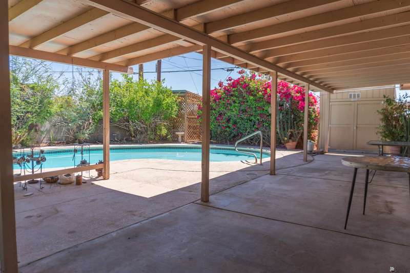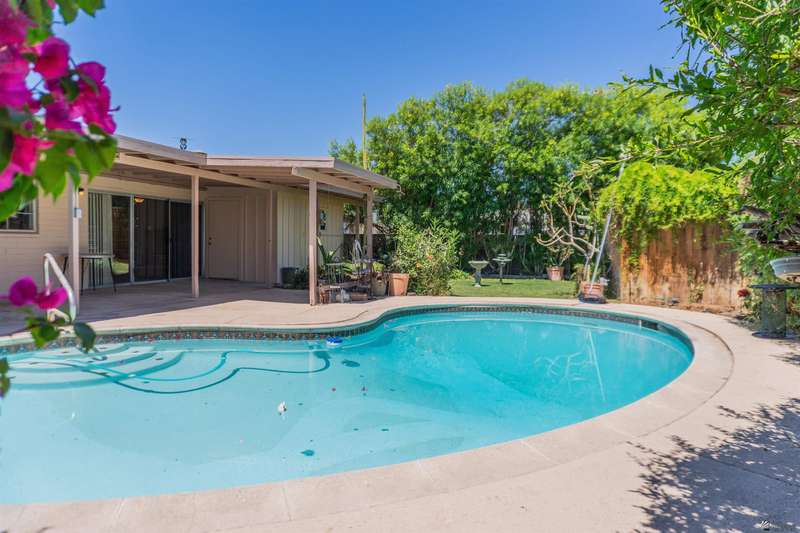 Welcome home to your favorite lush haven tucked in Palmcroft Estates, just minutes to Smuckers Park, Kofa High School and of course Palmcroft Elementary. Offering ample parking, including a circular driveway and covered carport. Inviting and open entryway with two entrances, one to the main house, and one to your future home office (Hello Tax Exemption!). Remodeled kitchen including new countertops and backslash. Additionally, you will love the modern touches to both bathrooms. Two great living spaces for hosting family and friends. The home's true gem is the backyard featuring the most tranquil pool setting offering so much greenery, you will feel as if if you are on the coast. Must see in person, schedule your showing today!