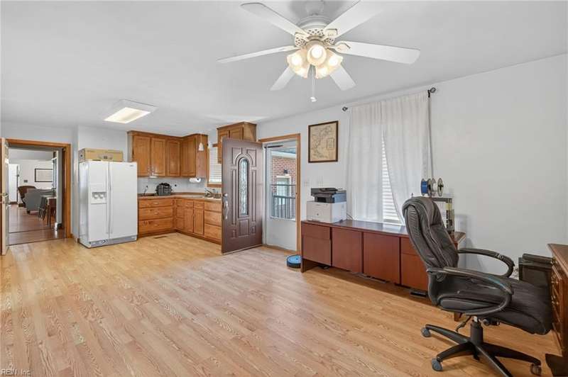 Well maintained Brick Ranch with Large Open Living Room & Dining Room. Well equipped kitchen with Island, gas stove, electric oven, beautiful cabinetry with plenty of storage. Front Porch, attached Garage with plenty of off-street parking. Large Primary Bedroom with sitting area, an ensuite bath with a room sized walk-in closet. In-Law Suite has it's own entrance including ramp & kitchen, bedroom, walk-in closet & Full bath with tub/shower. Large Laundry Room equipped with cabinetry for extra storage & counter for folding clothes. Backyard completely fenced-in. Large 12 X 18 Workshop with electricity (2-15 AMPS) Ethernet Cable & Coaxial for Camera. Add this Home to Your Must See List.