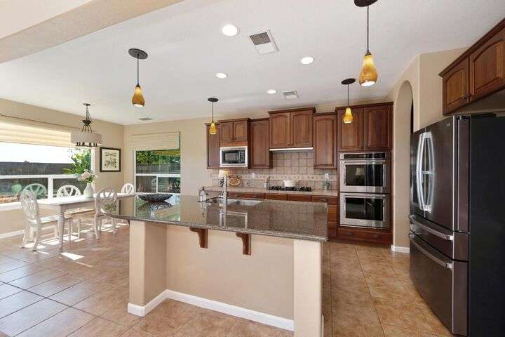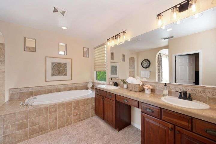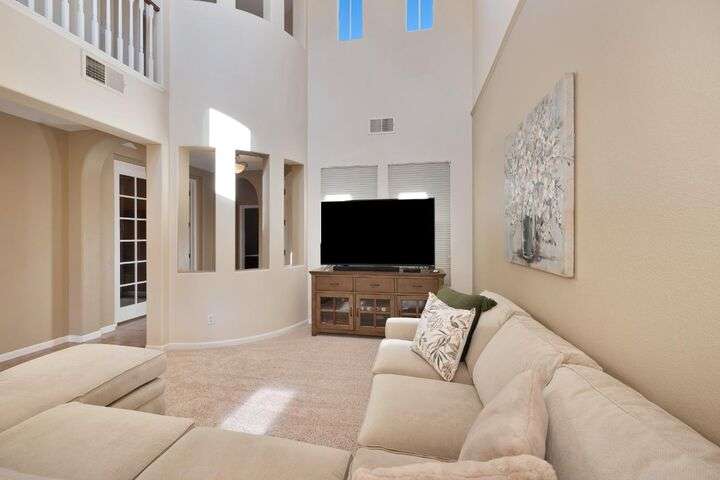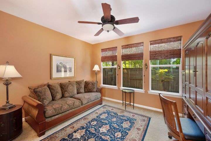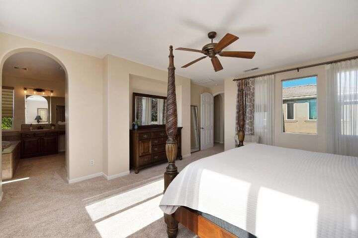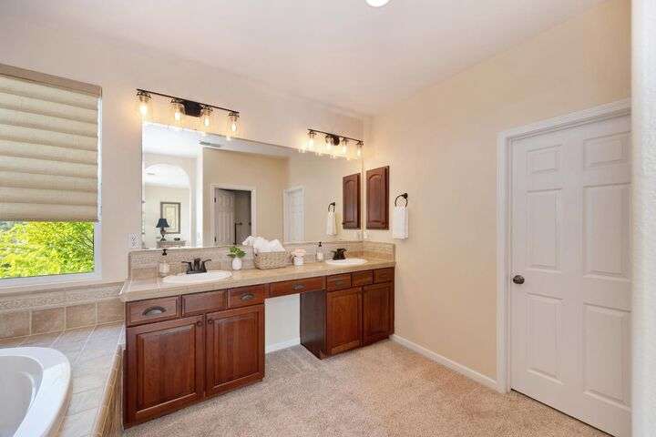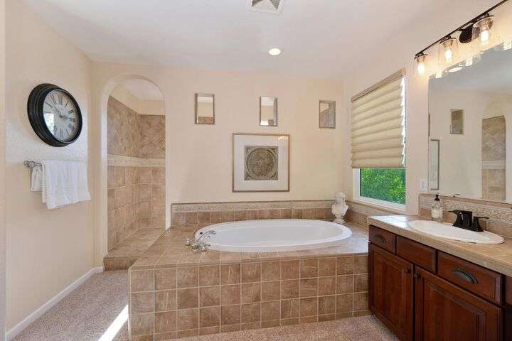 Come See This Turn-Key Home in the Prestigious Gated Community of Serrano! Experience luxury & comfort in this beautifully maintained home featuring 4 bedrooms (including a downstairs bedroom & bath ideal for guests) plus a dedicated office. The light-filled formal living and dining rooms showcase soaring ceilings and overlook a private courtyard, creating an elegant & inviting atmosphere. The gourmet kitchen is perfect for entertaining, complete with a grand island, butler's pantry with walk-in storage, stainless steel appliances, & a sunny breakfast nook. The cozy family room with fireplace opens to a private, low-maintenance backyard a wonderful space for relaxing or hosting gatherings. Unwind in the spacious primary suite, offering a walk-in closet, soaking tub, large walk-in shower,& dual sinks. Additional highlights include, owned solar, fresh interior and exterior paint and a prime location near top-rated schools, Serrano Country Club, parks, trails, shopping, & more, Enjoy luxury, convenience, and timeless appeal in one of El Dorado Hills' most sought-after gated communities.