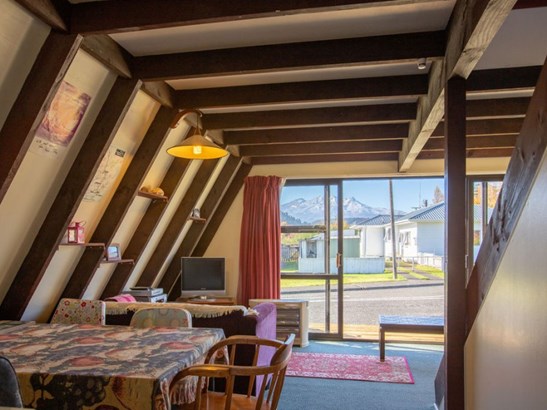 A fabulous street facing A-Frame with front row seats capturing a spectacular view of Mt Ruapehu on both levels of this chalet. As you step into this chalet, you're greeted by an inviting open-plan living space. The living area, bathed in natural light, is perfect for leisurely days, while the kitchen stands nearby with lots of cupboard and bench space making it easy to create something delicious to share. Enjoy a good read, a classic film, or simply the pleasure of each other's company in this cosy retreat. There is a separate laundry as well as bathroom complete with shower & toilet as well as a drying cupboard downstairs plus plenty of under stair storage. Upstairs you’ll find the mezzanine area and the main bedroom with a comfy queen bed. One quick look through the bedroom window in the morning will set the mood for the day, whether it’s a day for skiing, a bike ride, or perhaps some frisbee golf – the choice is yours. Outside, the property is a low-maintenance design, featuring aluminium windows and a sturdy sloping roof. With minimal exterior upkeep, you're free to spend your time enjoying the activities you like to do best. Having good off-street parking, this A-frame is an exceptional find, ready for someone to call it their own.