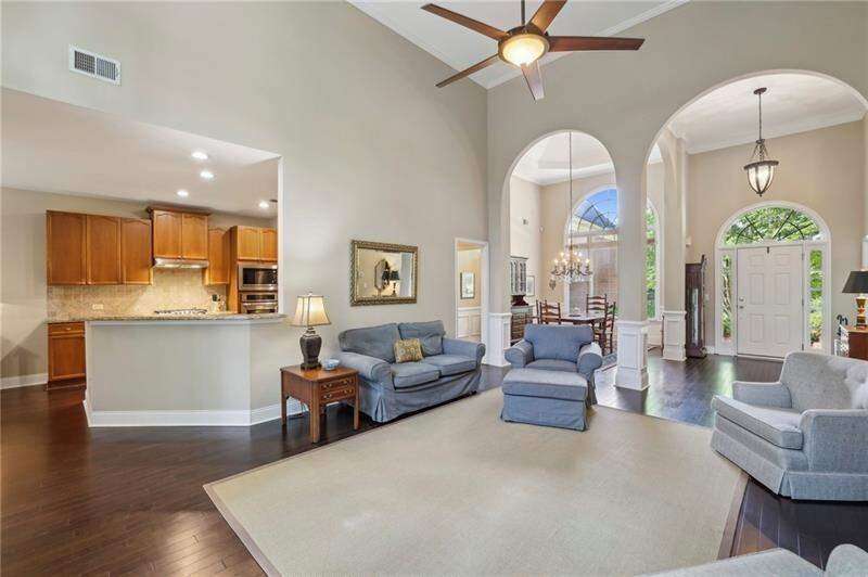 DON'T MISS THIS HARD-TO-FIND BRICK RANCH + HUGE BONUS ROOM IN POPULAR S/T COMMUNITY WITH SOUGHT AFTER NORTH GWINNETT SCHOOLS AND JUST MINUTES FROM SUWANEE TOWN CENTER, GEORGE PIERCE PARK, SHOPPING, RESTAURANTS AND IVY CREEK GREENWAY. EASY WALK TO SWIM/TENNIS ON COMMUNITY SIDEWALKS. THIS WELL MAINTAINED HOME FEATURES HARDWOOD FLOORS THROUGHOUT THE MAIN LEVEL AND VOLUMN CEILINGS IN ALMOST EVERY LIVING SPACE WITH LOADS OF NATURAL LIGHT! THE OPEN FLOOR PLAN INCLUDES FORMAL DR W/BOXED COLUMNS AND WAINSCOTTING, DOUBLE FRENCH DOORS TO VAULTED STUDY WITH BAY WINDOW, TWO-STORY, FIRESIDE GREATROOM OVERLOOKS PROFESSIONALLY LANDSCAPED AND FENCED BACK YARD WITH PATIO, KITCHEN WITH GRANITE AND STAINLESS APPL, NEW DW AND MICROWAVE NEVER USED, PANTRY, OPENS TO VAULTED BREAKFAST RM W/ DOOR TO PATIO, SPLIT BEDROOM PLAN WITH PRIMARY SUITE ON ONE SIDE AND TWO GUEST BEDROOMS WITH WALK-IN CLOSETS AND JACK/JILL BATH ON THE OTHER. PRIMARY SUITE WITH TREY CEILING, FRENCH DOOR TO PATIO AND SPA BATH WITH DOUBLE VANITIES, FRAMELESS SHOWER, JETTED TUB. WATER CLOSET AND HUGE WALK-IN CLOSET, POWDER ROOM, COAT CLOSET, STORAGE CLOSET PLUS A SPACIOUS FINISHED BONUS ROOM (12'X 22') OVER THE GARAGE WITH BRAND NEW PAINT/CARPET COULD BE 4TH BEDROOM. TWO-CAR GARAGE WITH EXTRA STORAGE SPACE. PRIVATE BACKYARD HAS A PLETHORA OF BEAUTIFUL PLANTINGS. YOU WILL NOT BE DISAPPOINTED!