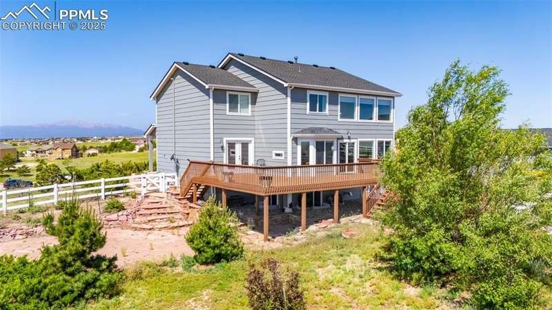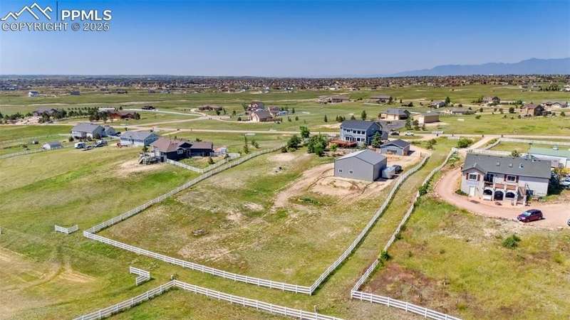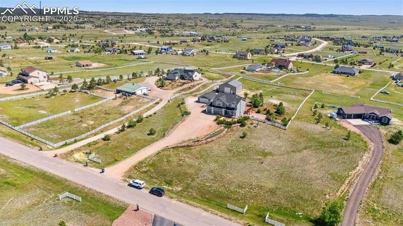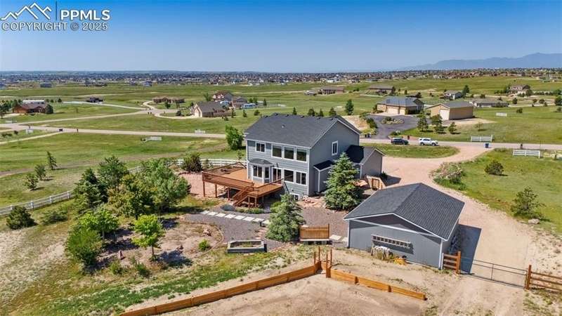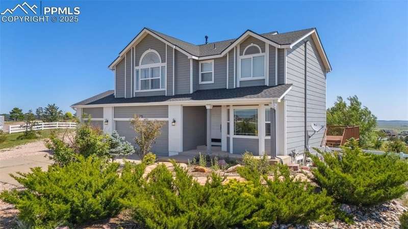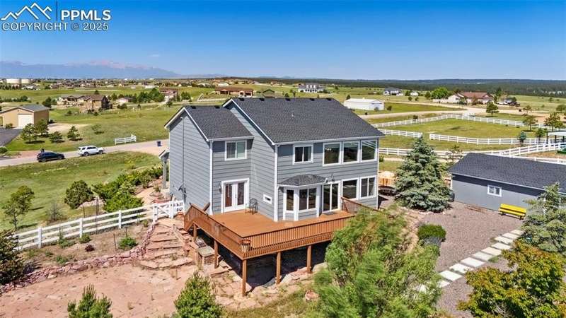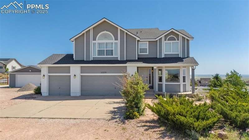 Discover the perfect blend of space, functionality, and comfort on this exceptional 2.5-acre property. This impressive 5-bedroom, 4-bathroom home offers over 3,400 square feet of thoughtfully designed living space—providing comfort, versatility, and room to grow. Built in 2001, the home features a spacious open floor plan with high ceilings, abundant natural light, and modern touches throughout. At the heart of the home is a generous kitchen with ample cabinetry, ideal for entertaining or family gatherings. The expansive primary suite serves as a relaxing retreat with a luxurious en-suite bath and walk-in closet. In addition to the attached 3-car garage, the property includes two detached garages: a 2-car garage and a separate RV Agricultural Building—perfect for car enthusiasts, hobbyists, or storing outdoor equipment. Mature trees, a private setting, and fantastic Pikes Peak views create a serene backdrop, while the expansive lot offers endless potential for outdoor living. Enjoy the peace and privacy of this unique property, just minutes from Falcon Town Center, grocery stores, restaurants, gas stations, and recreational centers!