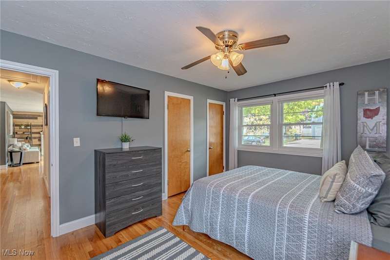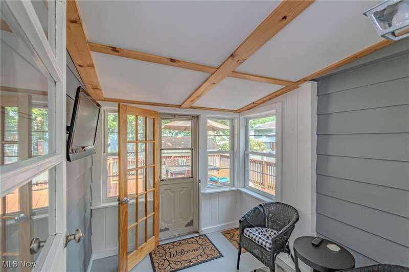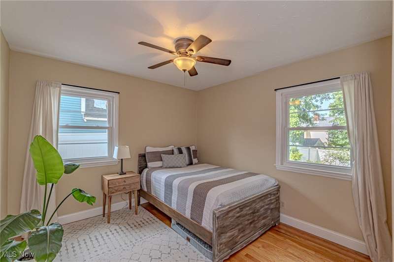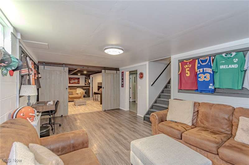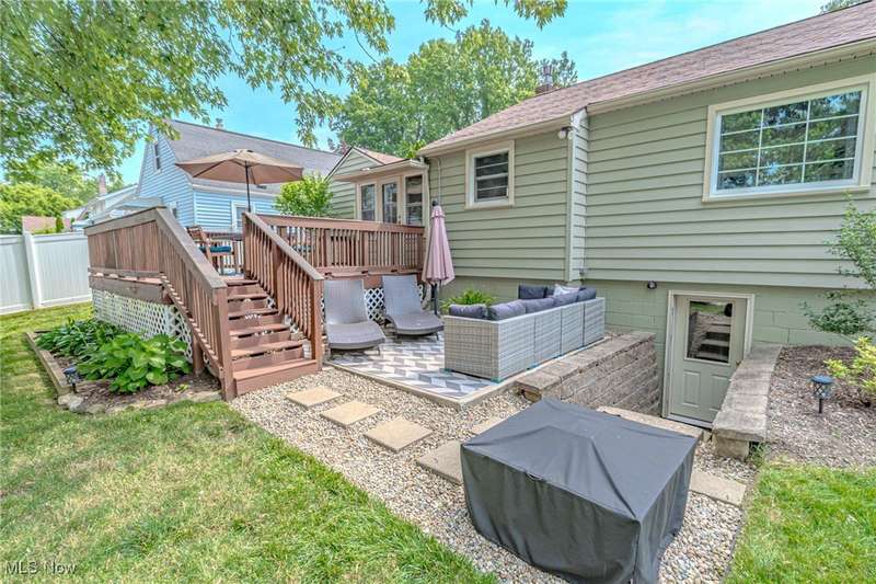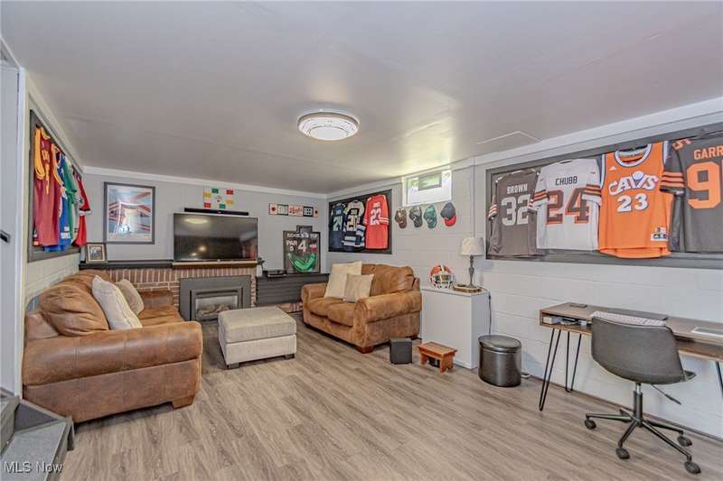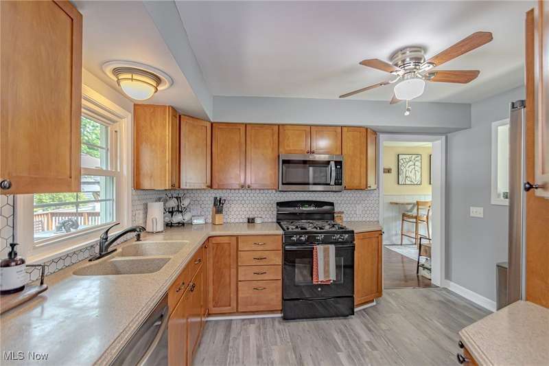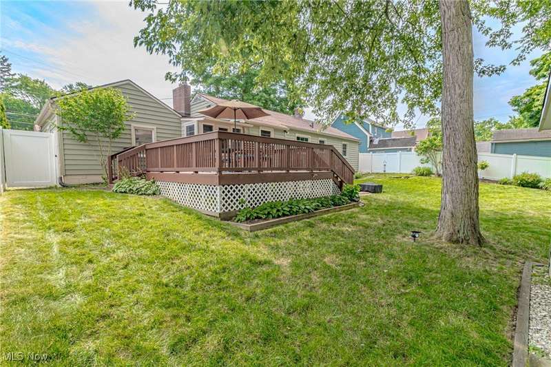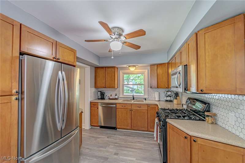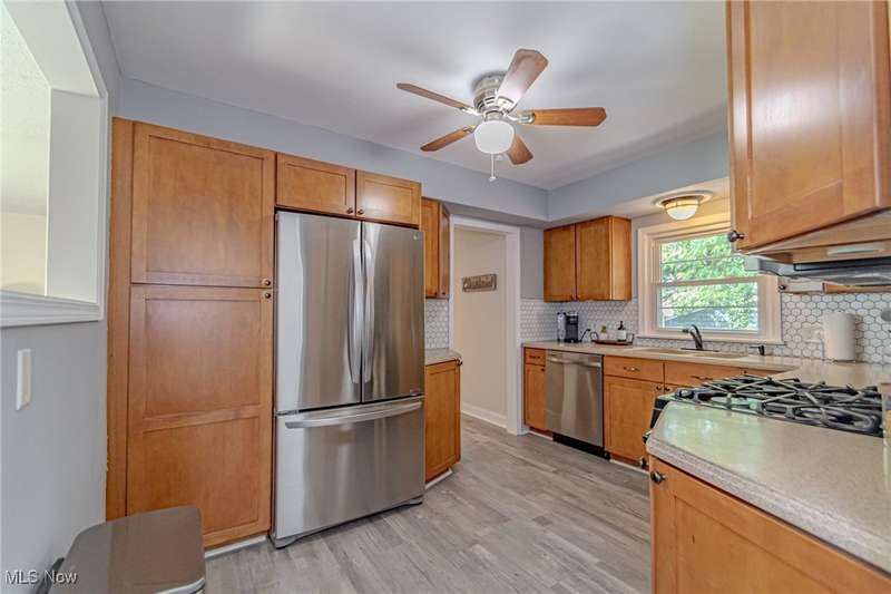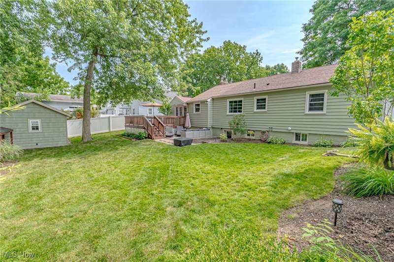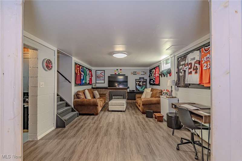 Welcome home to this move-in-ready home that features spacious living areas with refinished hardwood floors throughout, and a cozy, wood-burning fireplace. The kitchen offers maple cabinetry and Corian countertops, and all the appliances stay with the home, including the washer and dryer. The bright breezeway offers space to drop your things when you enter from the attached garage. The amazing basement, which has been fully refinished with paint and new flooring, has spaces for an office, entertaining guests, a home gym, or just lounging and has another fireplace, adding charm and ambiance. The beautiful backyard is a dream, featuring a vinyl fence that surrounds the yard, and a fantastic 17x18 deck for dining or relaxing with friends. The patio, and large storage barn/workshop elevate the outdoor experience of this lovely home. Major updates include roof, electrical panel, and sump pump. The exterior features vinyl siding and windows. A serene covered front porch adds loads of curb appeal. Don't wait to see this home!
