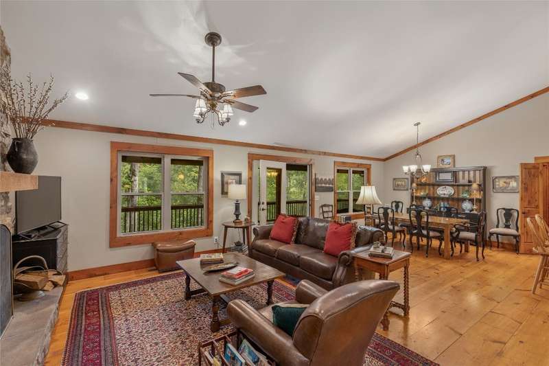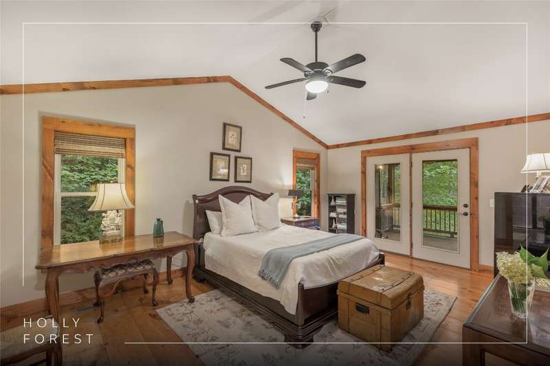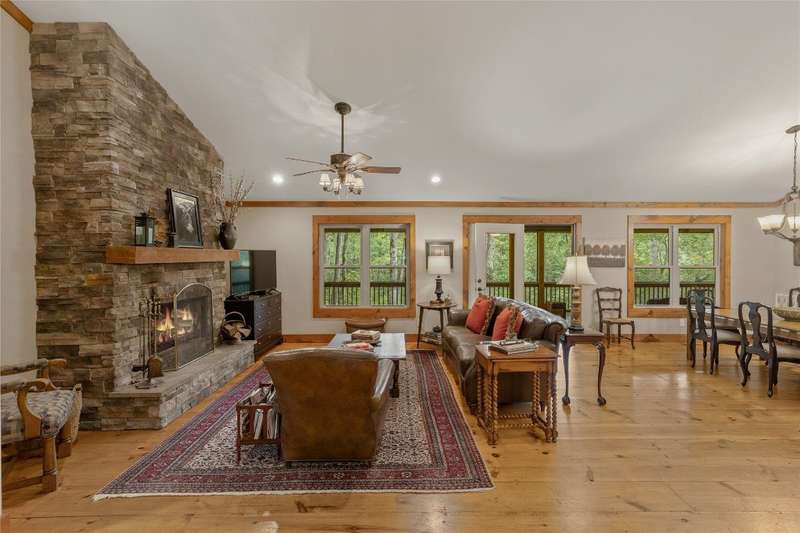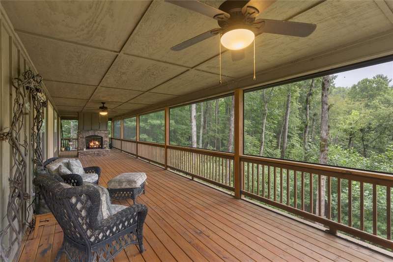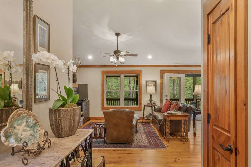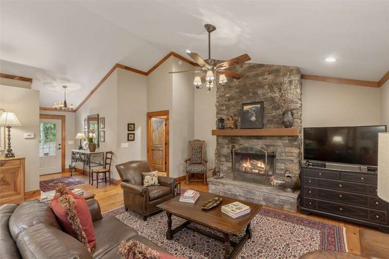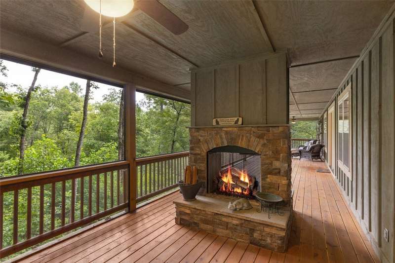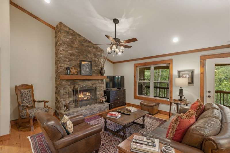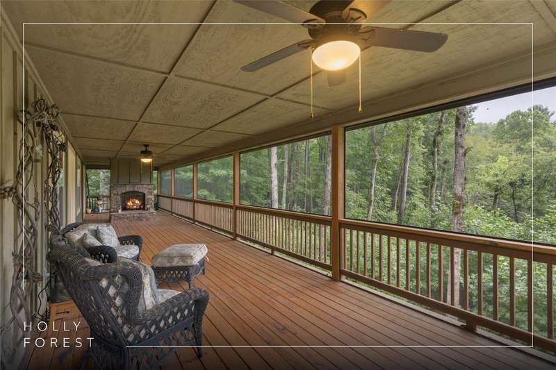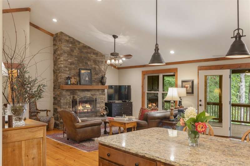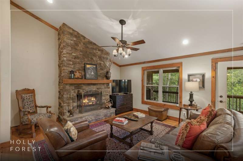 Enjoy an inviting three-bedroom, two-bathroom Arts and Crafts home in Holly Forest VI, where timeless style and modern comfort meet in a move-in-ready, single-level retreat. The spacious kitchen is a cook's dream, offering granite countertops, stainless steel appliances, custom tile backsplash, and a sit-up island perfect for entertaining alongside ample dining space. Wide-planked hardwood floors, cathedral ceilings, and a large open living area with a floor-to-ceiling stone fireplace create a warm and welcoming setting to gather and make lasting memories. The thoughtful split floor plan provides privacy for guests with a separate suite entrance, while the primary suite boasts a luxurious bathroom with dual vanities, a soaking tub, and direct access to the screened porch. Neutral tones, rustic finishes, and fine craftsmanship exude a relaxed mountain vibe. Outdoor living shines with a 12-by-60-foot covered and screened porch featuring a double-sided stone fireplace and year-round distant views of Toxaway Mountain. The landscaped yard offers plenty of space for a firepit, family fun, or pets to roam, and a paved driveway provides easy access to U.S. Highway 64. The exterior blends Hardie board siding with cedar shake accents and a charming covered front porch entry for curb appeal. This property is less than 45 minutes from the Asheville airport, providing the perfect opportunity to escape the summer heat or view the spectacular colors of fall. Enjoy Sapphire Valley Resort's full amenities, including a golf course, tennis courts, pools, a fitness center, a ski hill, and the breathtaking Fairfield Lake. Whether seeking a full-time residence, investment property, or lock-and-leave mountain retreat, this home is ready to welcome its next owner.