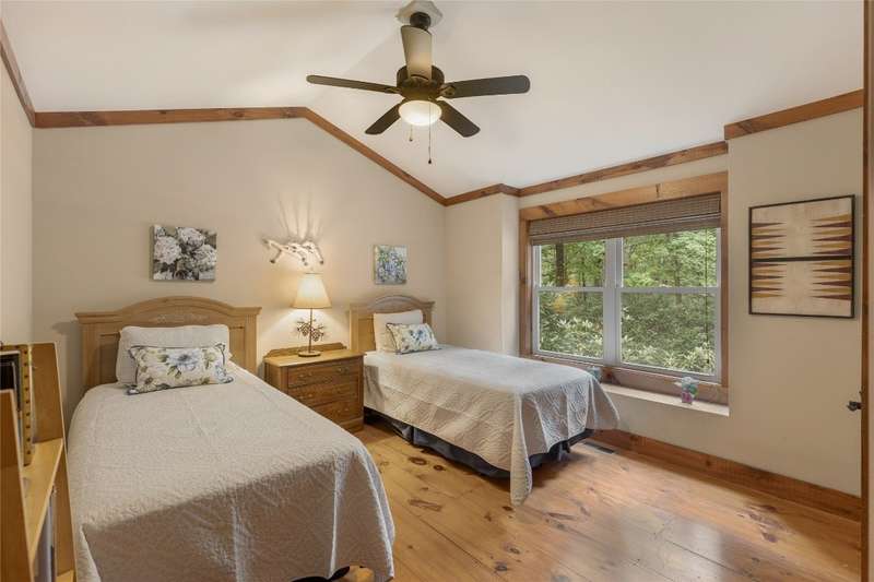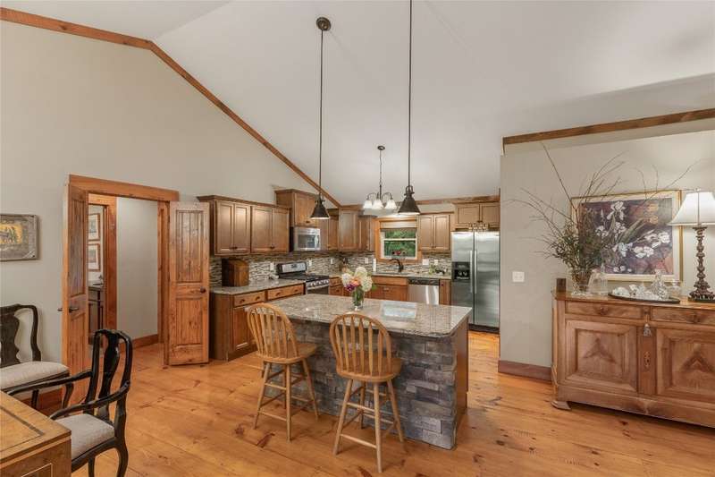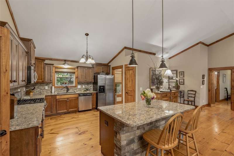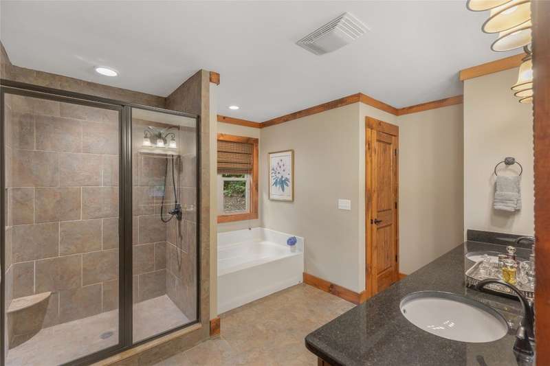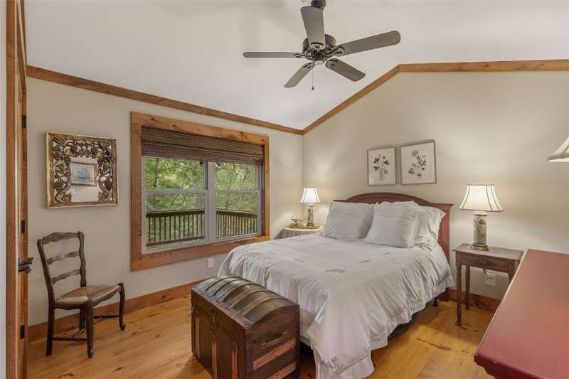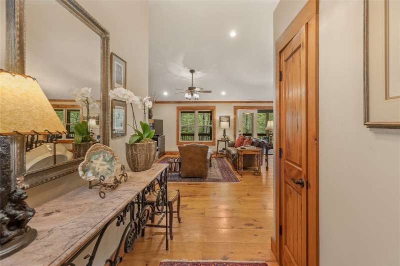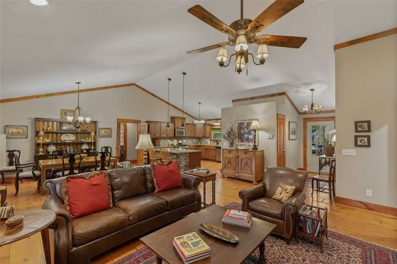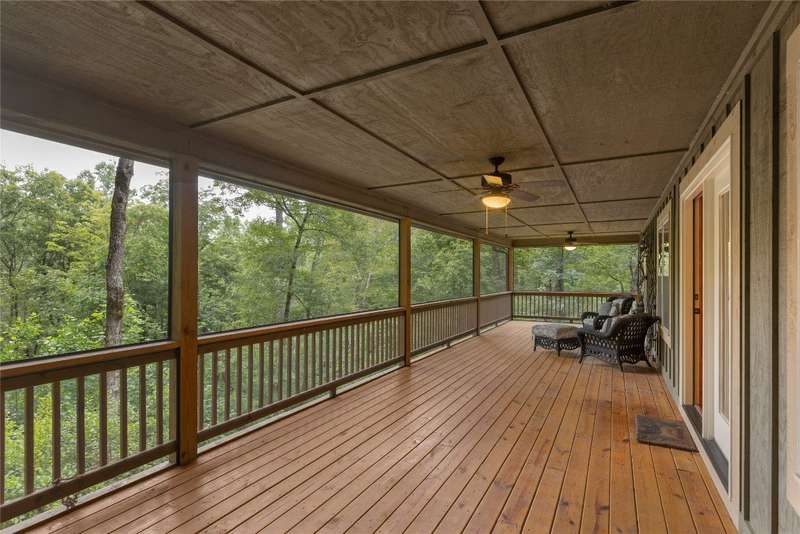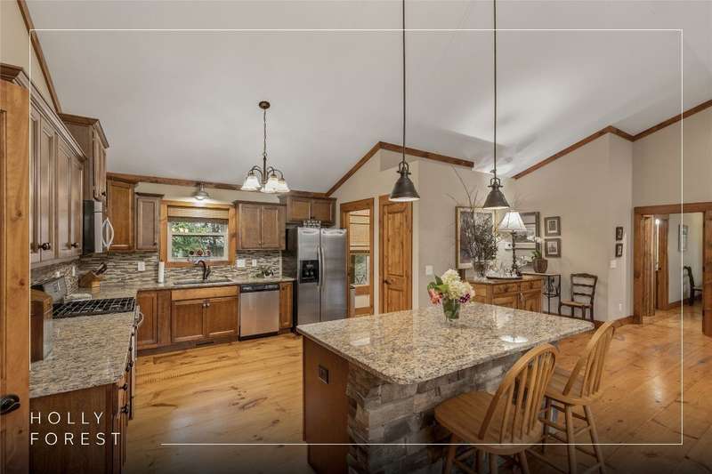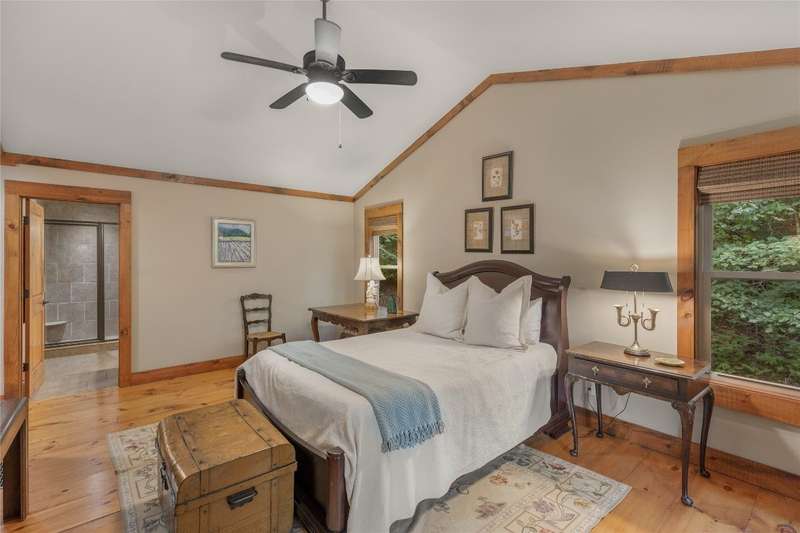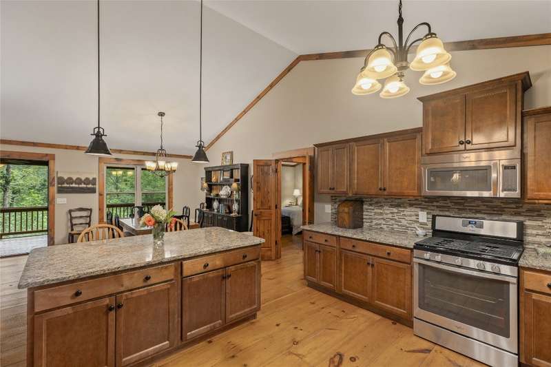 Enjoy an inviting three-bedroom, two-bathroom Arts and Crafts home in Holly Forest VI, where timeless style and modern comfort meet in a move-in-ready, single-level retreat. The spacious kitchen is a cook's dream, offering granite countertops, stainless steel appliances, custom tile backsplash, and a sit-up island perfect for entertaining alongside ample dining space. Wide-planked hardwood floors, cathedral ceilings, and a large open living area with a floor-to-ceiling stone fireplace create a warm and welcoming setting to gather and make lasting memories. The thoughtful split floor plan provides privacy for guests with a separate suite entrance, while the primary suite boasts a luxurious bathroom with dual vanities, a soaking tub, and direct access to the screened porch. Neutral tones, rustic finishes, and fine craftsmanship exude a relaxed mountain vibe. Outdoor living shines with a 12-by-60-foot covered and screened porch featuring a double-sided stone fireplace and year-round distant views of Toxaway Mountain. The landscaped yard offers plenty of space for a firepit, family fun, or pets to roam, and a paved driveway provides easy access to U.S. Highway 64. The exterior blends Hardie board siding with cedar shake accents and a charming covered front porch entry for curb appeal. This property is less than 45 minutes from the Asheville airport, providing the perfect opportunity to escape the summer heat or view the spectacular colors of fall. Enjoy Sapphire Valley Resort's full amenities, including a golf course, tennis courts, pools, a fitness center, a ski hill, and the breathtaking Fairfield Lake. Whether seeking a full-time residence, investment property, or lock-and-leave mountain retreat, this home is ready to welcome its next owner.