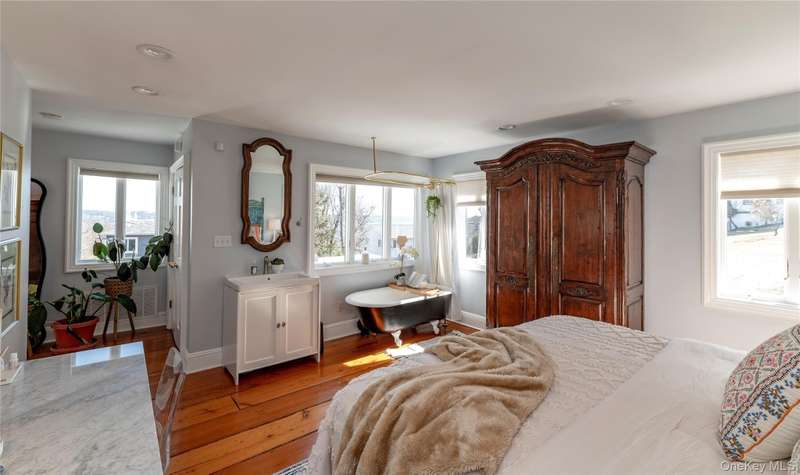 We proudly present this Hudson River mini-estate, where modern living meets historic soul and exceptional value come together in a way rarely found. Set on 1.37 acres, the five-bedroom main house combines reclaimed wood floors, high ceilings, and historic fireplaces with an open layout offering abundant space for entertaining. A sleek chef’s kitchen and dining areas flow easily for gatherings, while the luxe first-floor primary suite features its own fireplace and a bedroom-sized dressing room—an indulgent retreat that elevates daily living. The detached writer’s cottage with its wood-burning stove creates the perfect remote-work escape, while a separate guest suite with private deck and spa bath provides hotel-style hospitality. Modern upgrades including a new slate roof, copper flashing, and four Tesla Powerwalls ensure energy efficiency and whole-home backup power. Beyond the gates, the location brings outdoor adventure and culture to your doorstep—bike the Hudson River trails with direct NYC connections, hike nearby preserves, dock your boat at a local marina, or stroll into Nyack and Piermont for waterfront dining, boutique shopping, and live music. End the day with a cocktail on your deck, taking in the lights of the Tappan Zee Bridge. Rarely does a home offer this mix of riverfront living, privacy, and convenience—just 15 minutes to Metro-North and 25 to the GW Bridge. With approximately 4,150 sq ft across three structures, this estate represents an extraordinary opportunity to secure a truly special Hudson River property at an excellent value. Schedule your private showing today and experience it for yourself. Total taxes = $35,033.07 (2025 School taxes = $27,753.66; 2025 T & C taxes =$7,279.41) Does not include basic STAR rebate