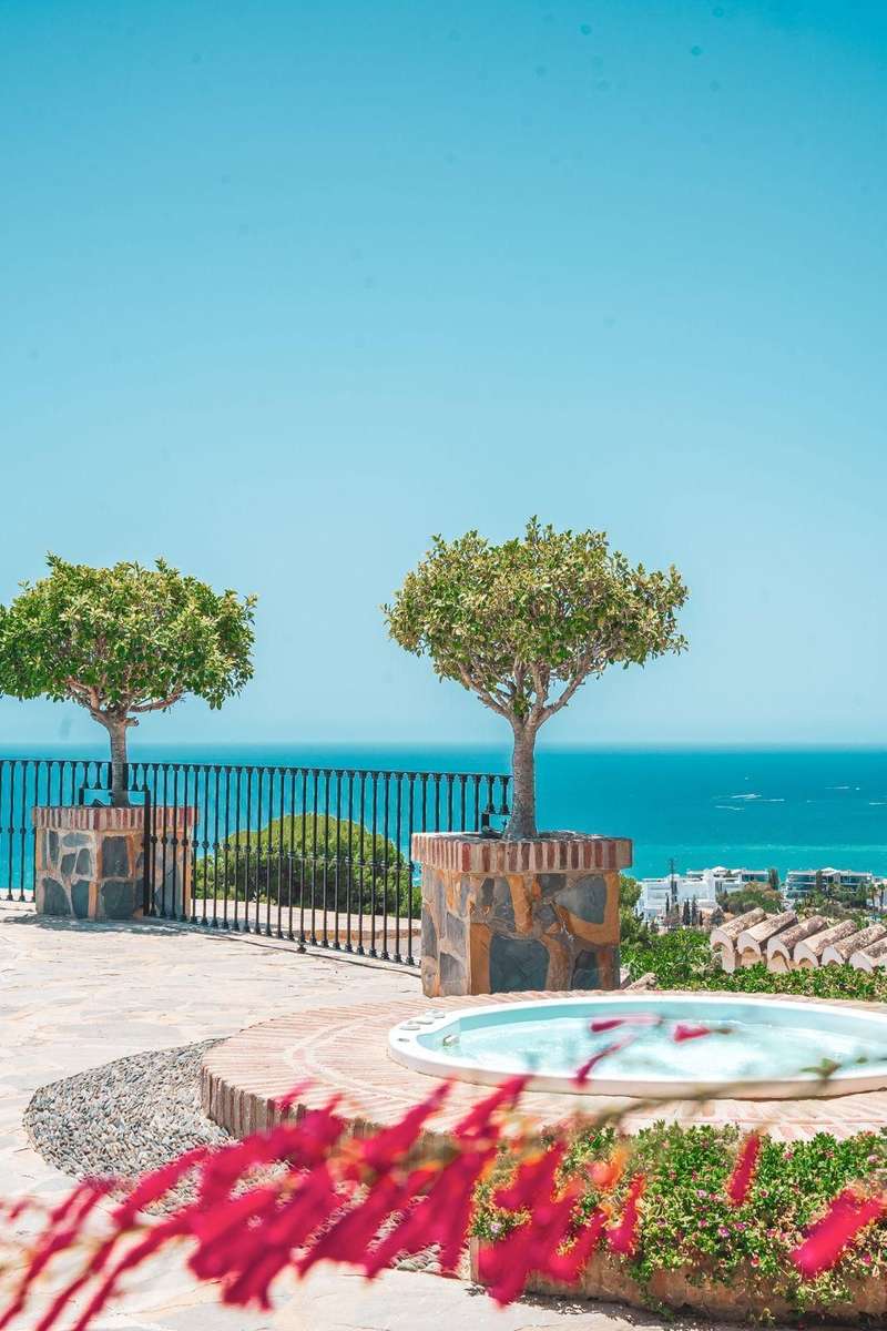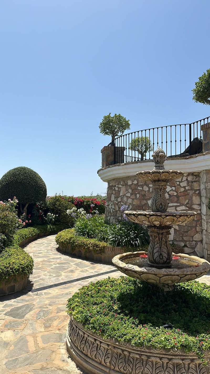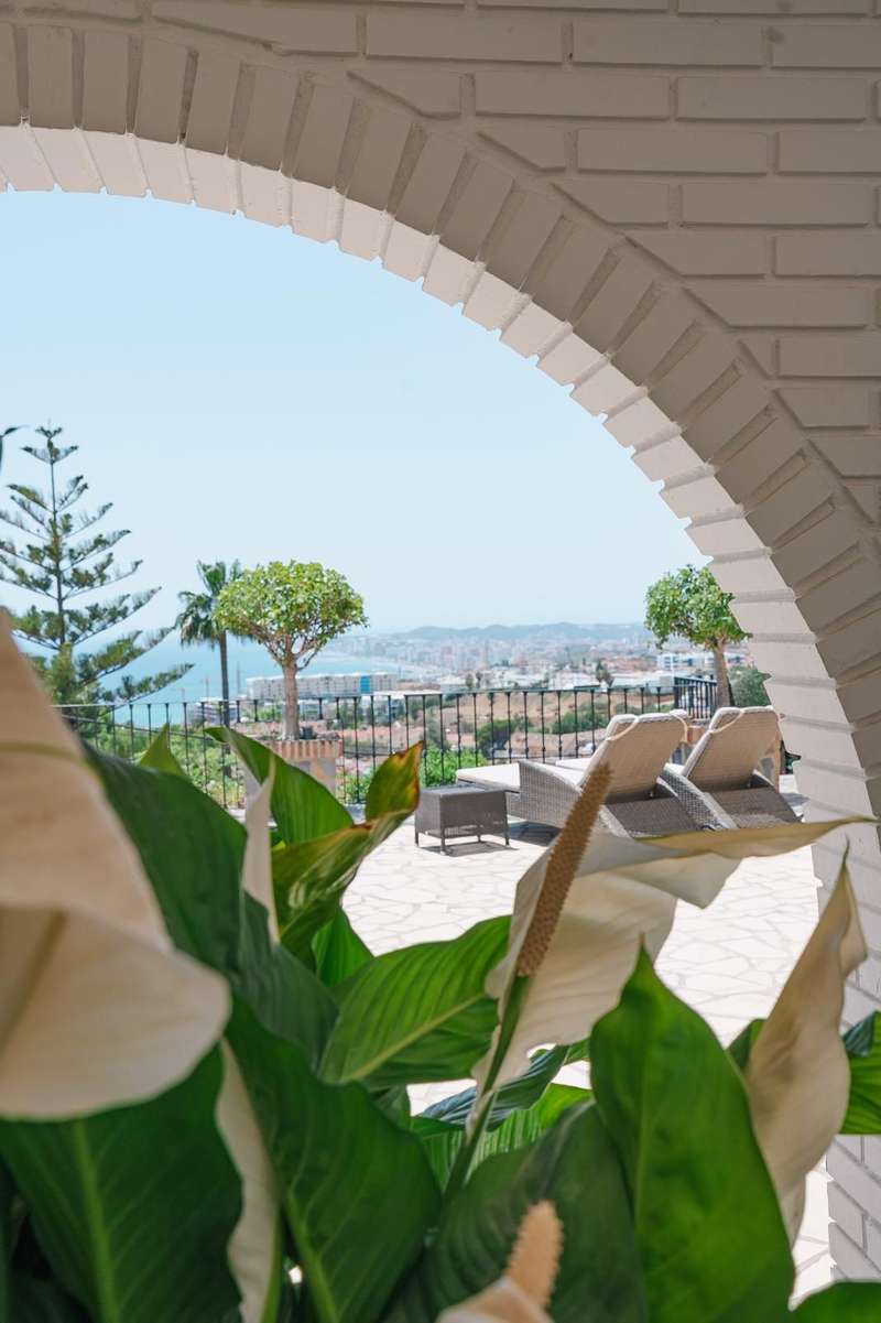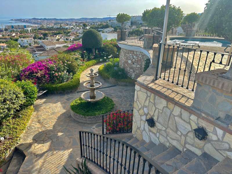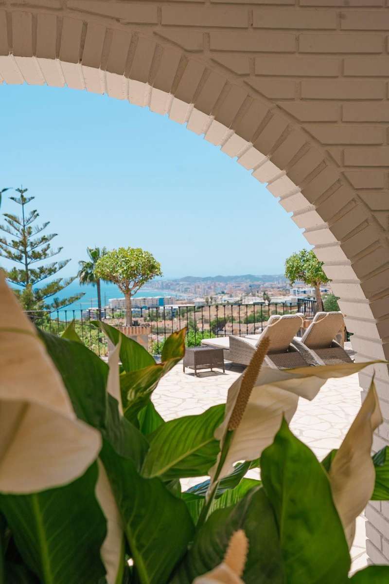 Set in one of the most sought-after residential areas of Benalmádena, this stunning villa blends timeless Andalusian charm with modern comfort, offering total privacy and spectacular panoramic views of the Mediterranean. Built on a generous 1,072 m² plot with 328 m² of living space, this home has been thoughtfully designed to make the most of its orientation, outdoor areas, and natural light. The main house features two spacious bedrooms and a bright open-plan living area with a stylish fireplace and a fully equipped designer kitchen. From here, large glass doors lead to sun-drenched terraces with breathtaking sea views—perfect for relaxing or entertaining. Additionally, the property includes two fully independent guest apartments, offering privacy and flexibility whether for extended family, visitors, or potential rental income. The beautifully landscaped garden surrounds an impressive oval-shaped swimming pool and a jacuzzi, creating an oasis of peace and luxury. Several chill-out