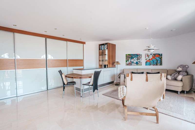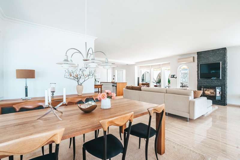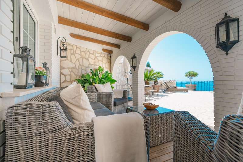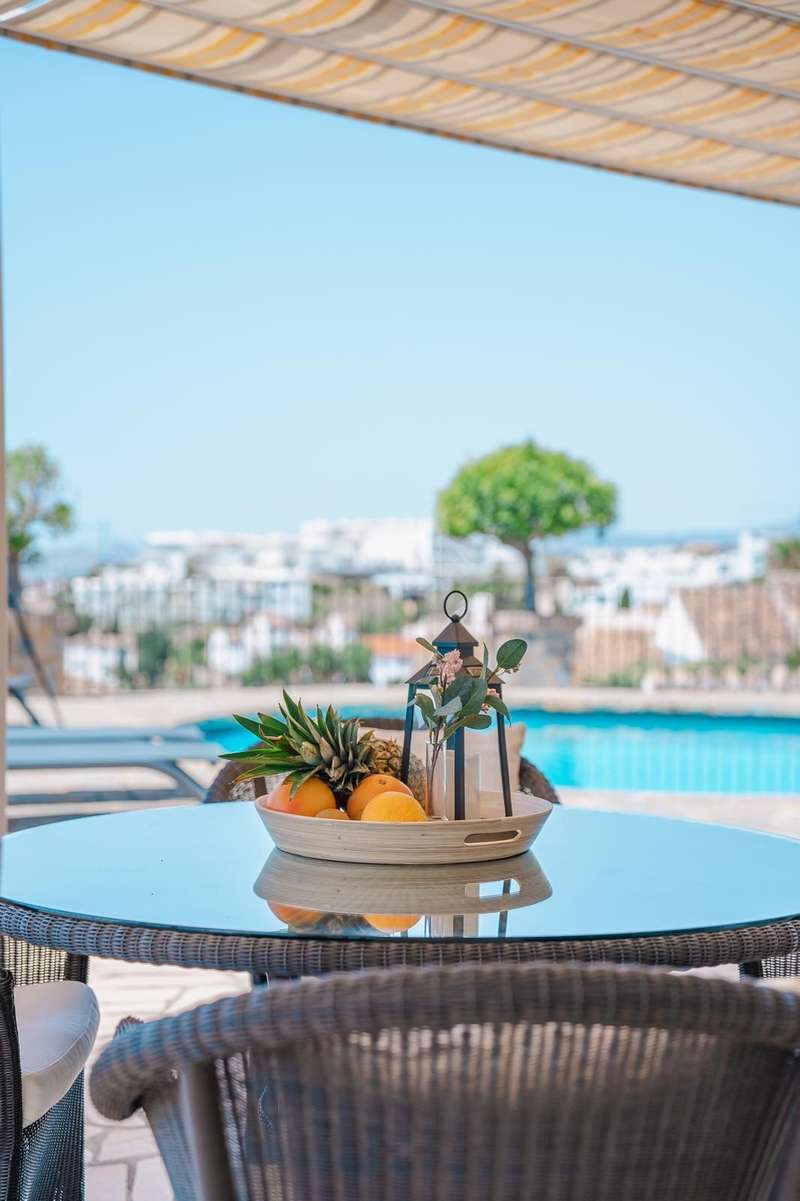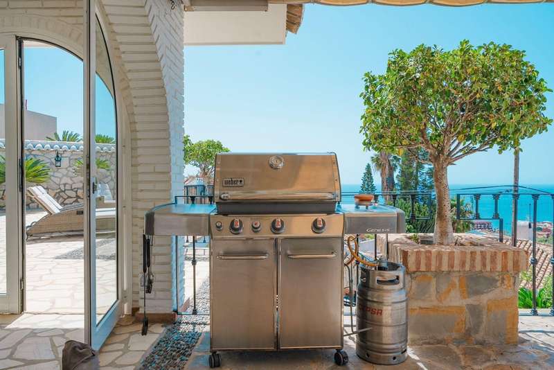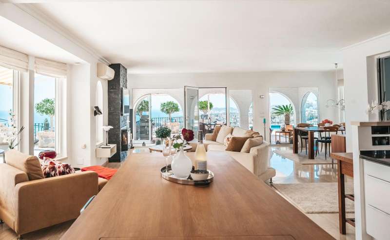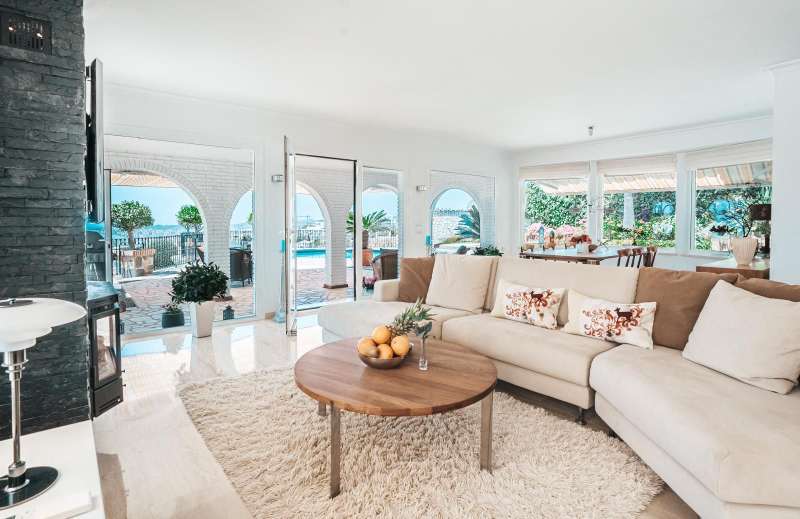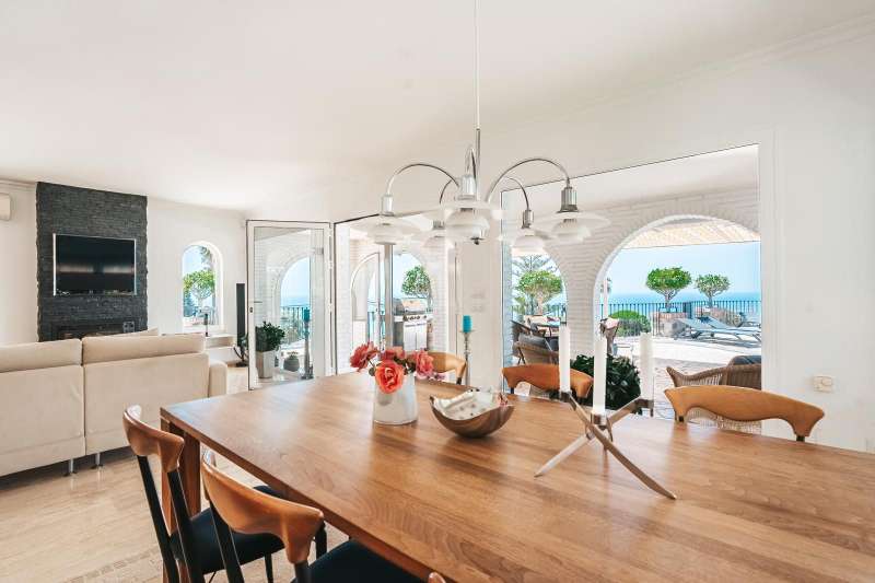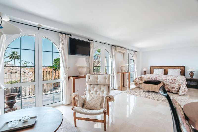 Set in one of the most sought-after residential areas of Benalmádena, this stunning villa blends timeless Andalusian charm with modern comfort, offering total privacy and spectacular panoramic views of the Mediterranean. Built on a generous 1,072 m² plot with 328 m² of living space, this home has been thoughtfully designed to make the most of its orientation, outdoor areas, and natural light. The main house features two spacious bedrooms and a bright open-plan living area with a stylish fireplace and a fully equipped designer kitchen. From here, large glass doors lead to sun-drenched terraces with breathtaking sea views—perfect for relaxing or entertaining. Additionally, the property includes two fully independent guest apartments, offering privacy and flexibility whether for extended family, visitors, or potential rental income. The beautifully landscaped garden surrounds an impressive oval-shaped swimming pool and a jacuzzi, creating an oasis of peace and luxury. Several chill-out