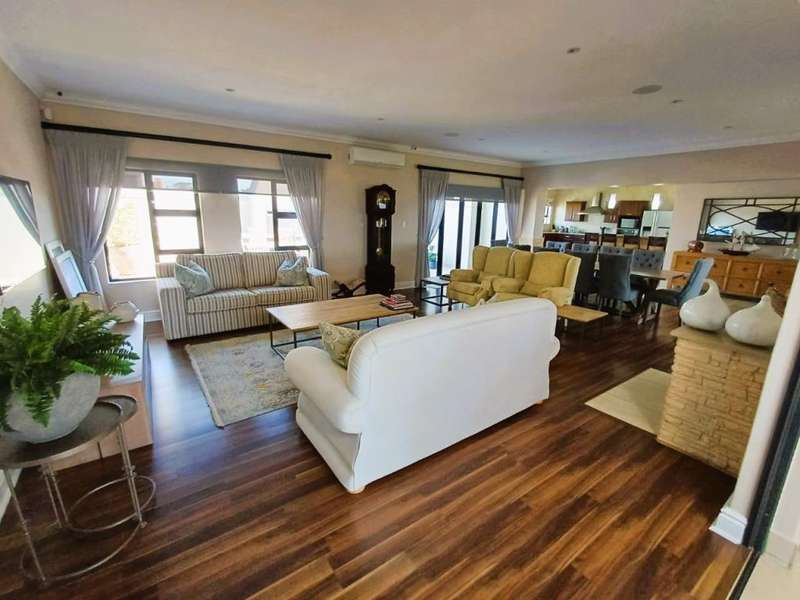 Luxury coastal living! Discover the luxuries of East Coast living in the up market gated estate of Cypraea Sands, Boasting three generously proportioned bedrooms, including a luxurious main en-suite. An additional room and bathroom provide the opportunity for extended family stays or an older child. The large lounge welcomes you with its cozy gas heater, perfect for intimate gatherings or tranquil evenings by the fire. The second lounge boasts beautiful scenic views as well as a built in gas braai overlooking the deck. The perfect outside entertainment setting. There is surround sound throughout the living areas. Air conditioners in lounge and master bedroom. Tv ports in all the bedrooms and living areas. The home is wheel chair friendly. There is a private courtyard, complete with a built-in jet master as well as a double garage and off-the-grid capabilities. 24-hour security surveillance and inside and outside beams. Cypraea residents enjoy exclusive access to the spacious clubhouse, lovely to hire out for birthdays and special events, tennis courts, a bowling green, a jungle gym area as well as a swimming pool.
