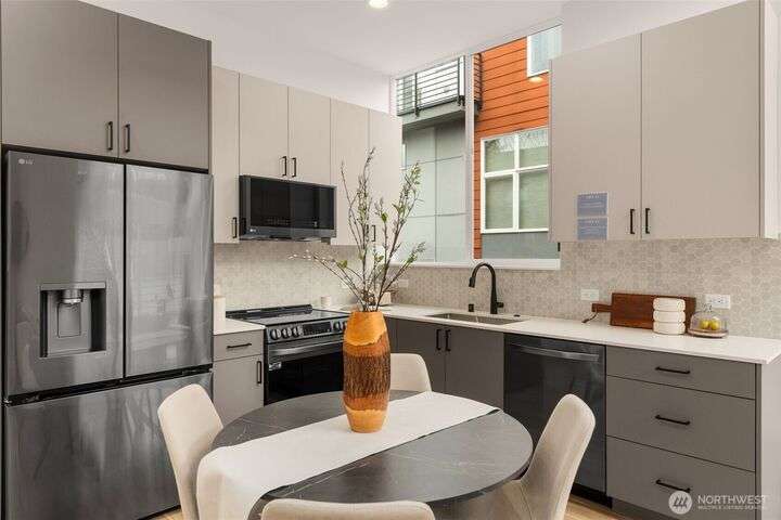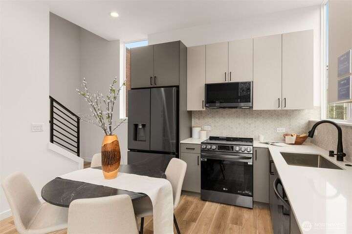 Light-filled beauty at Olive by Greencity Homes! Nestled in one of Seattle's most lively neighborhoods, this elegant home offers access to local eats & Light Rail while enjoying life on a quiet street, 2 yrs of parking included! Sunlight washes over this home through oversized windows at every turn, & an open floorplan with double-height ceiling offers unique living w/ a lofted living space. An office, guest room & flex space offer extra flexibility, topped by a luxe primary suite & cute, rare backyard space perfect for a quiet read or your pup. Enjoy Capitol Hill staples within moments, including the Deluxe, French Guy's Bakery, Broadway Market, Volunteer Park & more. Come see!
