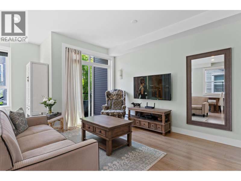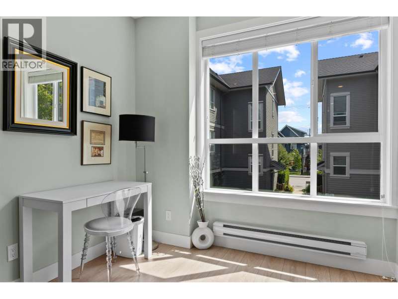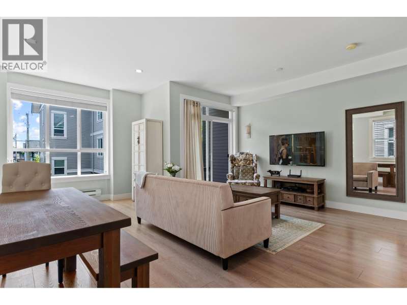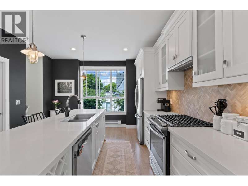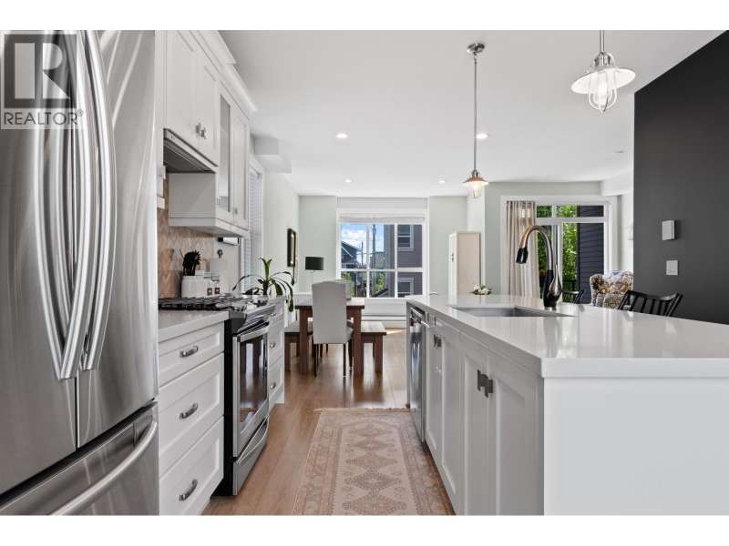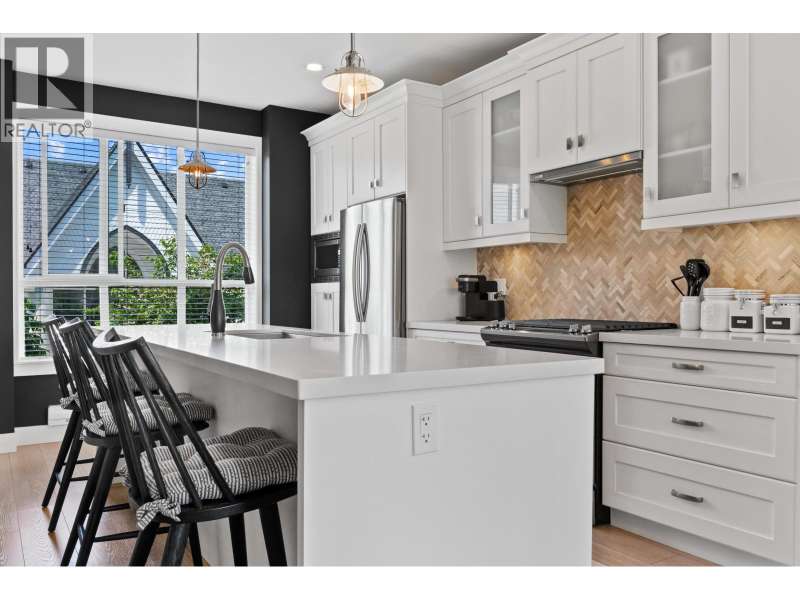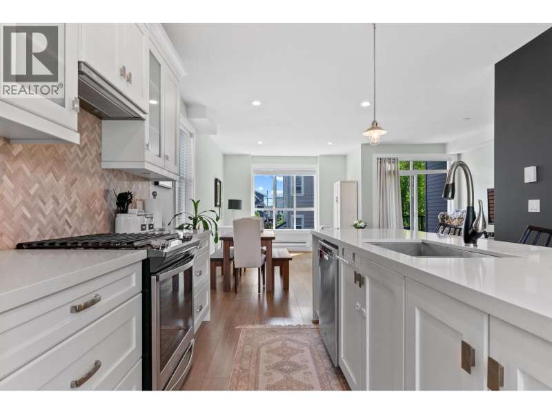 VILLAGE GARDENS, a bright CORNER 2 bed 2.5 bath townhome residence with North exposure, tucked away on the quiet side of complex in the heart of Ladner Village. This 1312 square ft home exudes comfort & elegance. Main floor features an open floor plan with 9 ft ceilings & oversized windows. The kitchen has a 9 ft quartz island for entertaining, gas range stove & s/s appliances. The grand living room & flex complete this inviting space. The generously sized primary bdrm has a walk-in closet & an ensuite bathroom. Thoughtfully decorated throughout w/elegant wallpaper, custom entry stairs, custom entry closet & a stunning double car garage with custom flooring. This home checks the boxes from a tasteful interior to a dream garage for enthusiasts. Steps away from shops, restaurants and Ladner market. (id:58403)