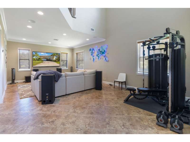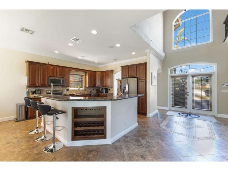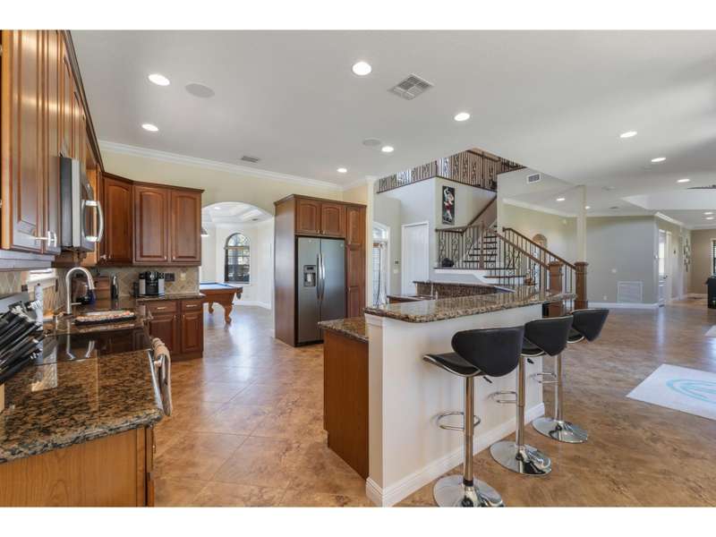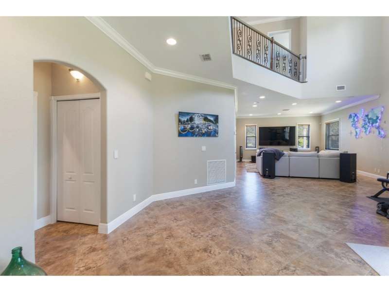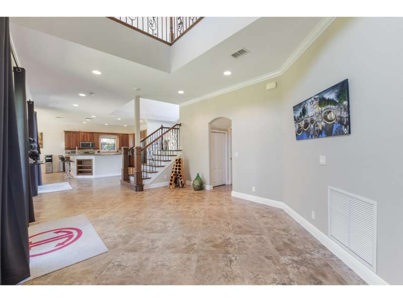 Introducing a breathtaking custom-built residence in the prestigious Torino/St. James community. Nestled at the end of a serene cul-de-sac and backing onto expansive acreage properties, this home offers unmatched privacy and tranquility. Spanning over 3,700 square feet of refined living space, every detail has been thoughtfully designed to impress. Step into the grand foyer, where a striking custom tile mosaic sets the tone for the elegance that flows throughout.