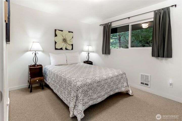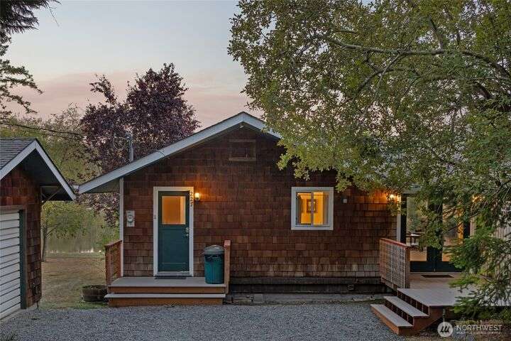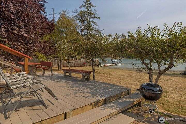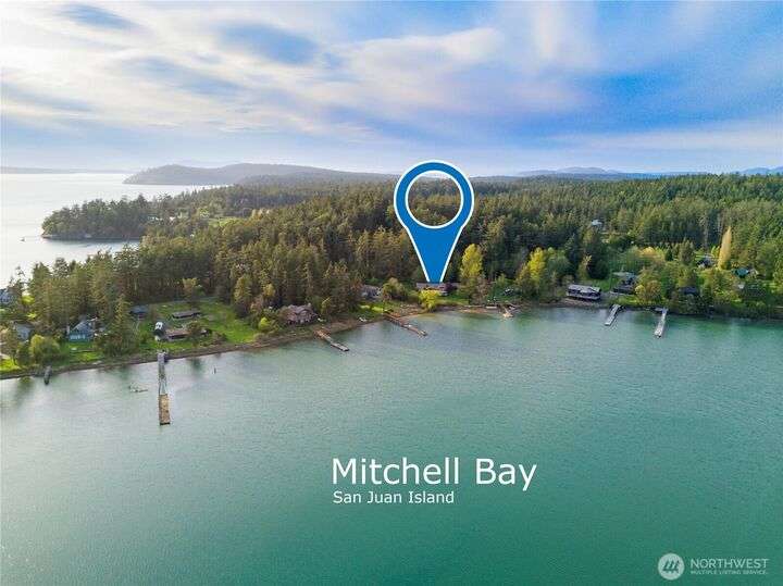 Peaceful waterfront retreat on Mitchell Bay with no-bank access for clamming, crabbing, or launching your kayak. Picture windows frame enchanting bay views, while a wood-burning stove adds cozy charm. The home offers both a living room and family room, plus a dining area with easy flow to the deck and patio. The primary suite features French doors opening to a private deck and an updated en-suite bath with oversized shower. Additional updates include new flooring and refreshed main bath. Relax in the new hot tub after a day of hiking, biking, or kayaking. Nestled in a quiet neighborhood, yet minutes to Roche Harbor Resort, marina, spa, Mount Young trails, and British camp National Park.