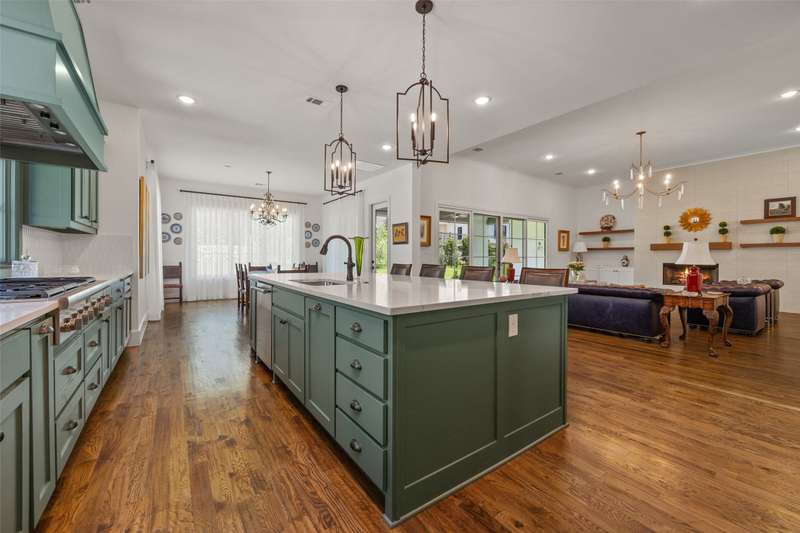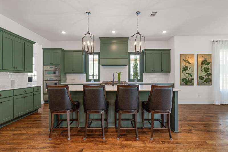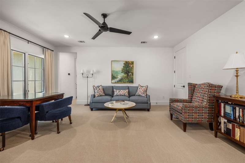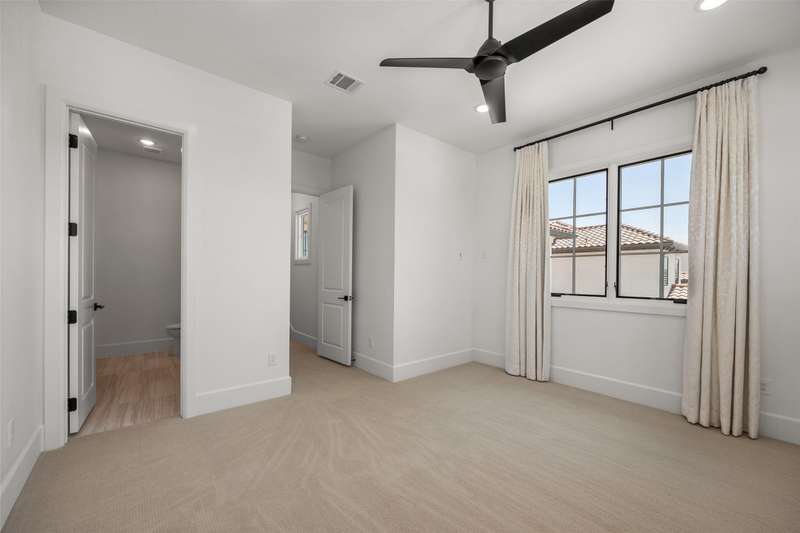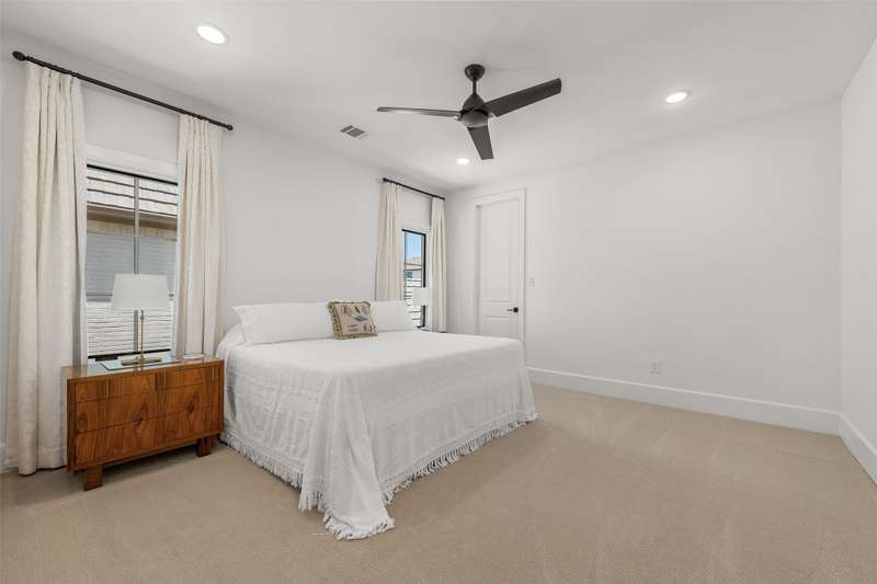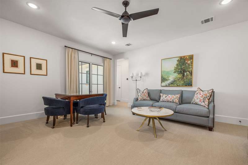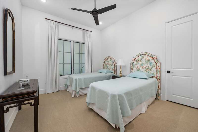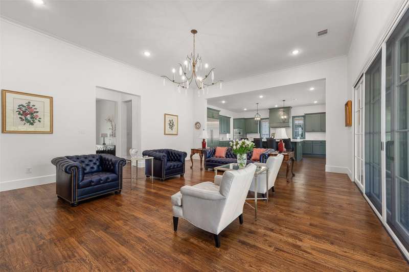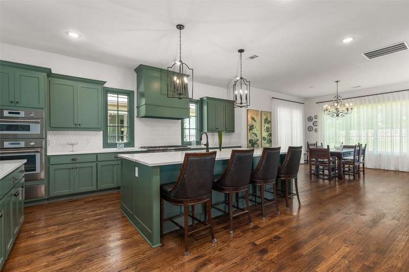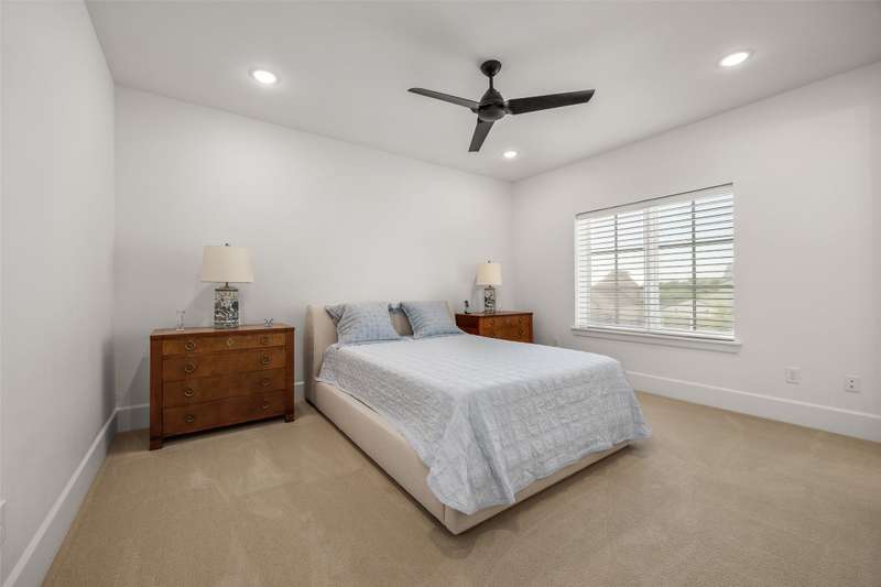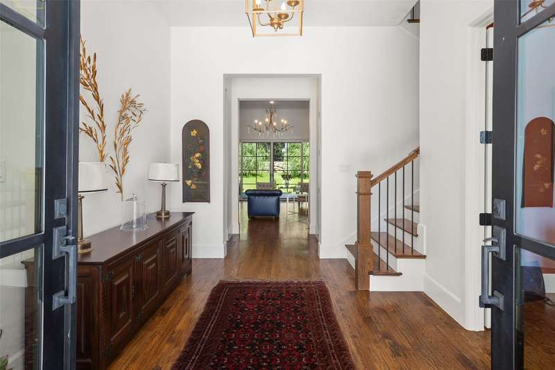 Nestled in the exclusive, 24-hour guarded Montrachet community, this exquisite home perfectly combines timeless elegance with modern luxury and functionality. The prestigious neighborhood features over 50 acres of scenic green space with hiking and biking trails, community pool, amenity center, putting green, pickleball courts and an outdoor pavilion in the pecan orchard. This meticulously designed home exudes a lifestyle of luxury & comfort, offering an array of high-end features and finishes. The thoughtfully designed floor plan includes five spacious bedrooms all with ensuite luxury bathrooms and large walk-in closet with two located on the first floor. A beautifully appointed entryway leads to French doors opening to the versatile front study that could also be perfect for a formal dining or a sitting room. The expansive open-concept kitchen flows seamlessly into the grand living room, distinguished by a dramatic 16-foot sliding glass door that opens to a covered outdoor living area. The backyard is beautifully landscaped with room for a pool. The kitchen is a chef's dream with an oversized island, gourmet appliances and connects to the adjacent dining area. The owner's suite on the main level includes a relaxing sitting area that offers a serene view of the backyard. The spa inspired primary bath features a freestanding tub, separate shower, expansive cabinetry, and a custom designed walk-in-closet. Upstairs there is a large entertainment space, featuring seating and game table spaces along with three additional bedrooms. Abundance of storage throughout.