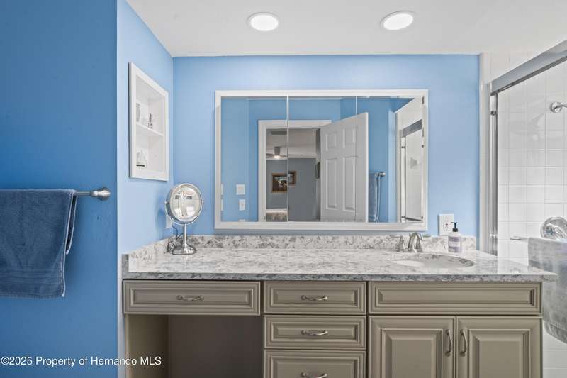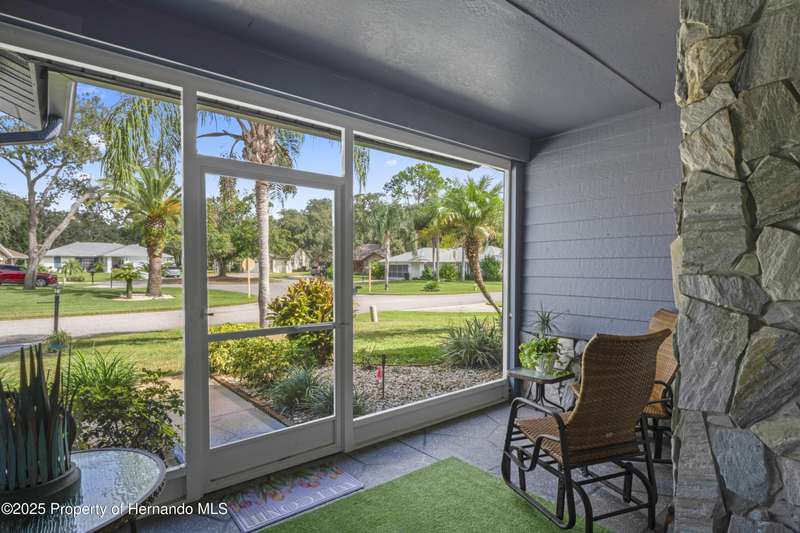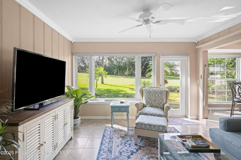 NEW LOWER PRICE!!! And the golf course view is spectacular! Swing into TIMBER PINES and golf, fun and activity are around every corner. This home in Greendale Village has it all! The interior has been updated, remodeled, and painted. The superb views from the eat-in kitchen and main bedroom are hard to beat. Step down into the family room to enjoy ''the best view in the house!'' The property sits on the 6th Fairway of the Hills course, and a golf cart will be at your fingertips. The neighborhood is active and friendly. The hot water heater, AC compressor and range were replaced in 2024, and the disposal in 2025. Exterior paint in 2023, and interior paint in 2024. Note all the crown molding! Sit on the newly screened front porch, or on the back patio to enjoy the scenery and wildlife, as well as the landscaped backyard. The retractable awning over the patio gives options of bright sunshine or shade. Oversized 2 car garage with cabinets. Deep well for irrigation. Newer Thermopane windows. No popcorn on the ceilings! Interior updates go on and on. The amenities at Timber Pines are extensive as well. If you have a desire to belong to a club, or engage in recreation, either physical or relaxing, this 55+ community is for you! Newer Wellness Center and Paws Park, pickleball and tennis courts, PLUS 3 GOLF COURSES to name a few. A great restaurant and bar, 2 beautiful pools, an activity lodge. 24 hour security. Spectrum Cable and Internet are included in your HOA. If you are looking for a wonderful, low maintenance life, this home is made for you! You'll have a ball here! Call today for an appointment!