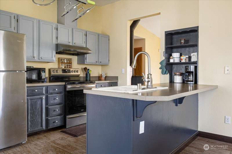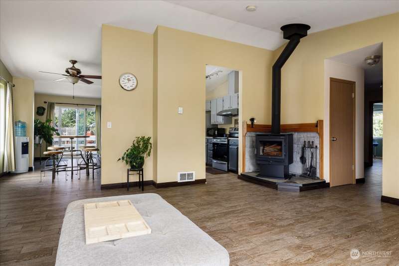 A one-story home edging a quiet cul-de-sac in the heart of Coupeville & mere minutes from annual festivals, the prairie, waterfront shops/restaurants & healthcare. With 1861 asf--brimming w/sunny rooms--highlights include: 4 bdrms, 2 full baths, a spacious living room with high-end porcelain floors, efficient & effective NEW wood stove & smooth transition to the organized kitchen with ample storage & newer appliances. A comfortable dining space & open family rm offer fast access to an oversized deck--ideal for entertaining alfresco year round. Add a 2 car garage, huge detached storage shed, fully fenced back yard/garden--only steps away from school(s), & more! A setting that evokes a feeling that's happy & warm--just as your home should!