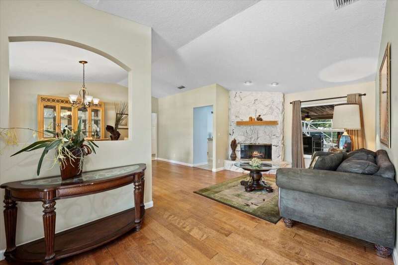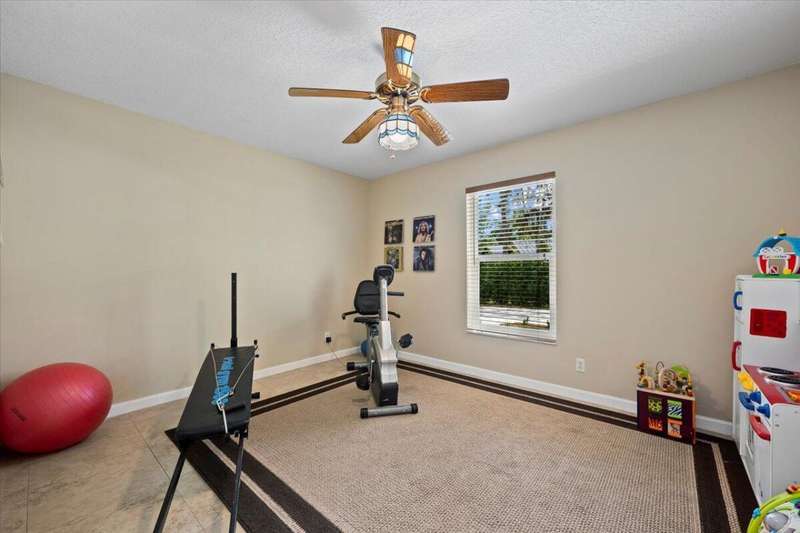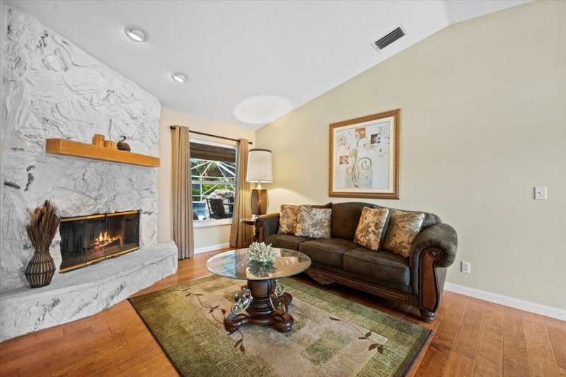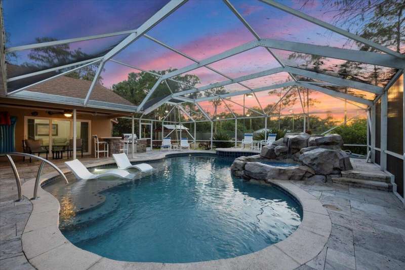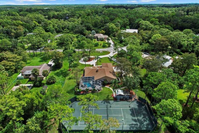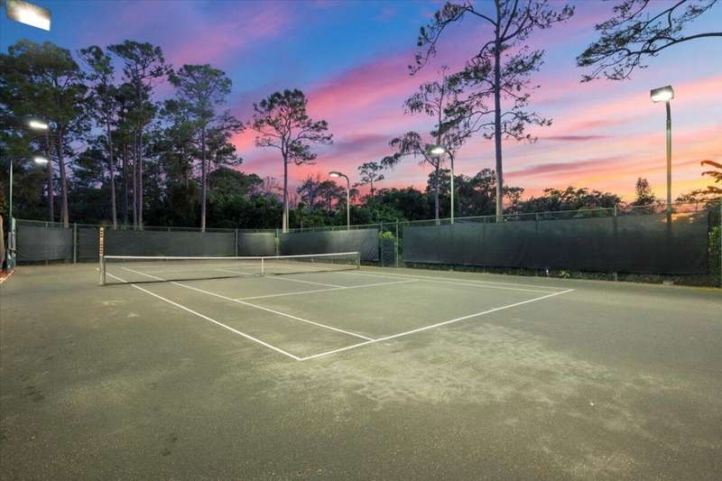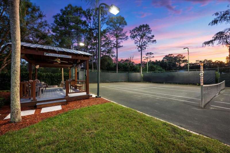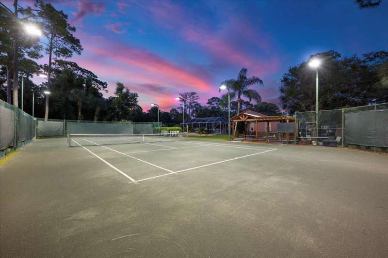 Private Tennis Court! Is tennis your dream? Then this is your dream come true--the ball is in your court! Set at the end of a quiet, paved cul-de-sac is a beautifully landscaped 1.04 acre lot with landscape lighting and a cobblestone driveway. This distinctive 3-bedroom plus den, 3-bath residence is a private paradise for tennis lovers and outdoor enthusiasts. Play every day on your private, regulation-size, Har-Tru (clay) tennis court with eight professional 1,000-watt metal-halide lights (newer ballasts and bulbs) for evening matches and a 10-foot fence on 3 sides for optimal play. An automatic above-ground sprinkler, fed by well water, keeps the court in peak condition. Between sets, relax in the stunning 10 x 20 cedar gazebo with Trex flooring, ceiling fan, power, lighting
