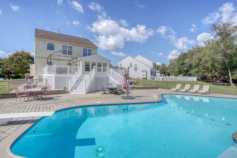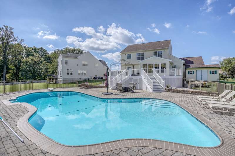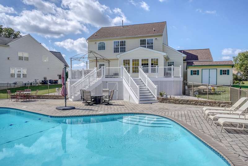 LOCATION and PREMIUM 1+ acre lot! Pristine 4 bedroom, 2 1/2 bathroom, 2 car garage colonial in Lakeside on 1.17 acres backing to trees and a view of Silver Lake! This home has had valuable improvements including the roof in 2024, HVAC in 2021, salt conversion on Anthony Sylvan gunite pool which includes a loveseat and diving board, gas heater, and is surrounded by an expansive paver patio and complemented with a maintenance free deck. The main floor offers hardwood flooring throughout and includes a living room/study, dining room, kitchen with breakfast room, family room with gas fireplace, main floor laundry and sunroom addition off the kitchen. The upper floor features a primary suite with a private bathroom including a tub, shower and double bowl vanity, 2 closets and 3 additional bedrooms with shared hall bath. The basement is unfinished but offers tons of potential and the exterior is professionally landscaped and includes lawn irrigation. Garage includes a 240 amp outlet. Pride of ownership is readily apparent and you would be lucky to secure this home on a premium lot! .
