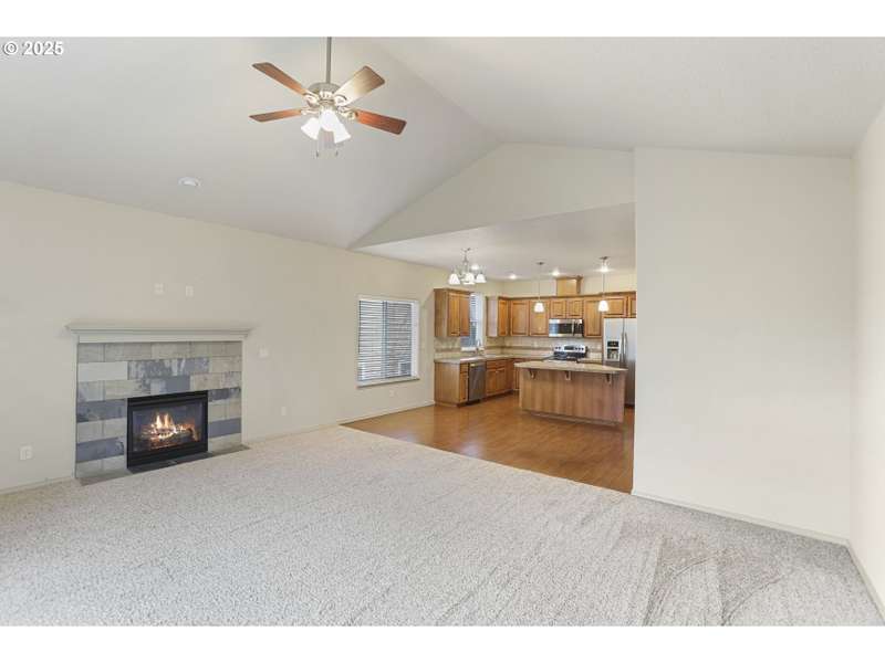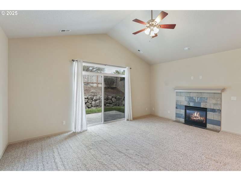 This charming 3-bedroom, 2-bath home offers the perfect blend of comfort and convenience. The spacious kitchen is equipped with stainless steel appliances, a pantry, and ample counter space—ideal for cooking and entertaining. The vaulted living room feels open and inviting, featuring a gas fireplace and a slider that leads to the back patio, perfect for indoor-outdoor living. The primary suite has a walk-in closet and a private en-suite bathroom. With so much to love, this home is a must-see! Schedule your private showing today!