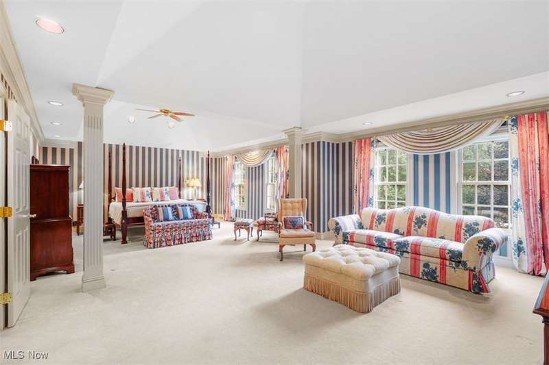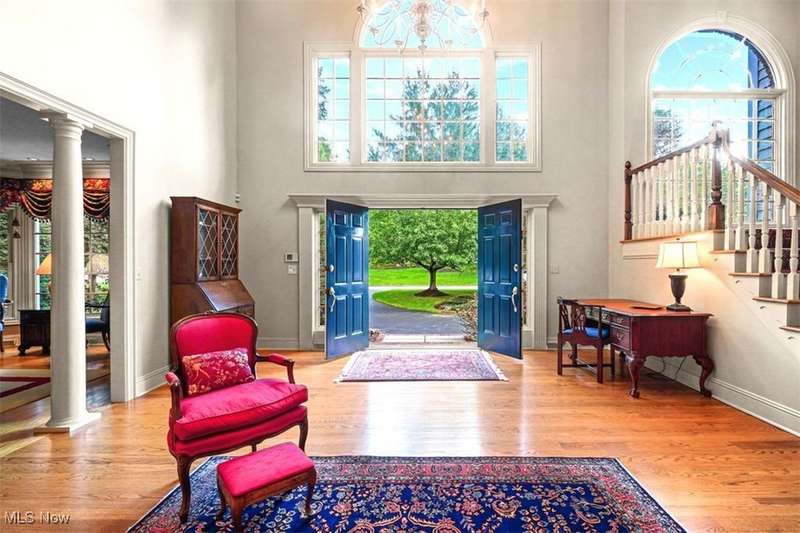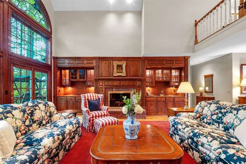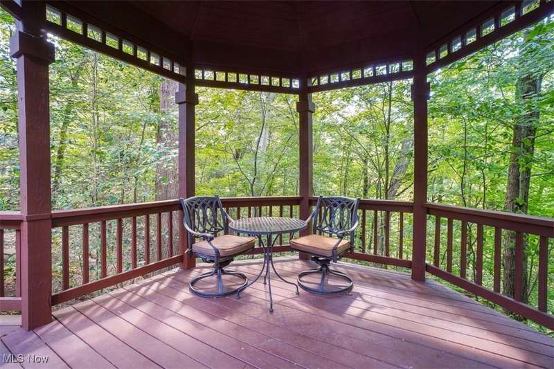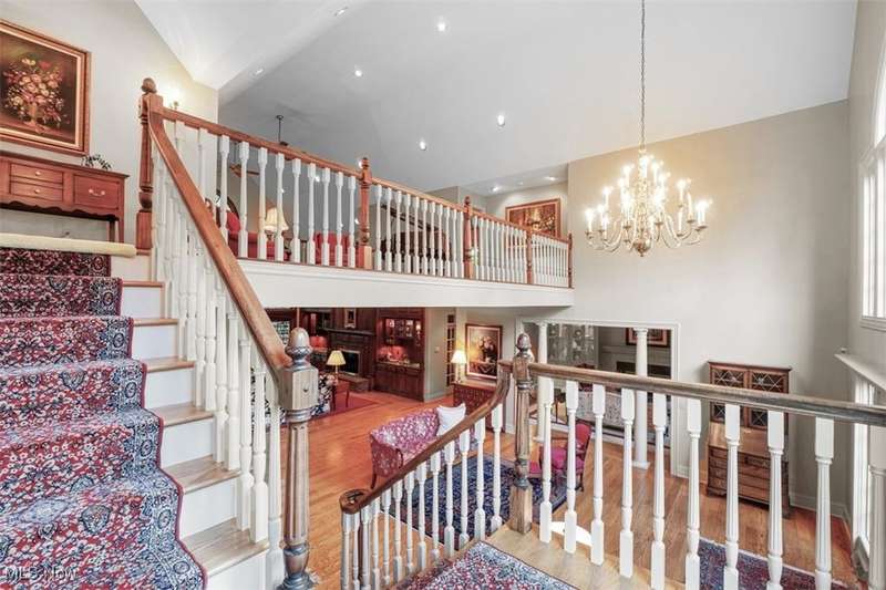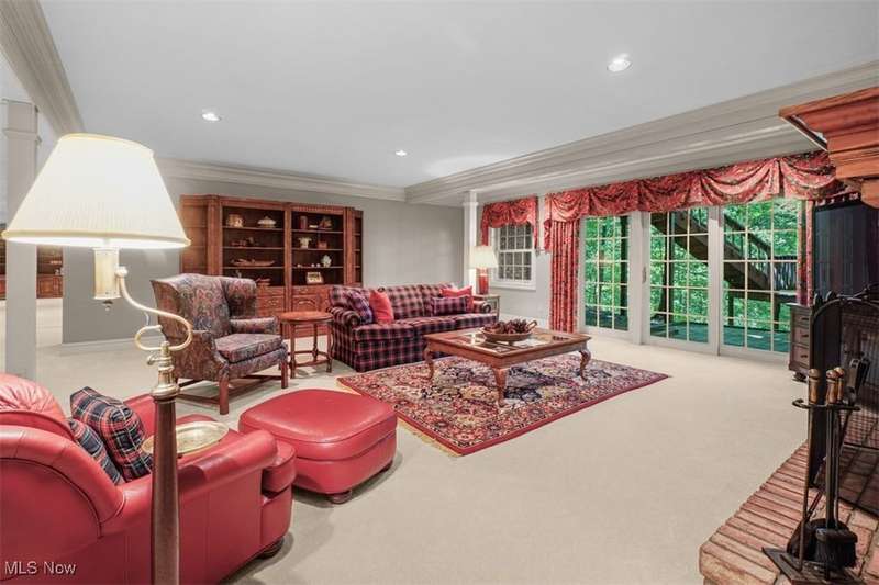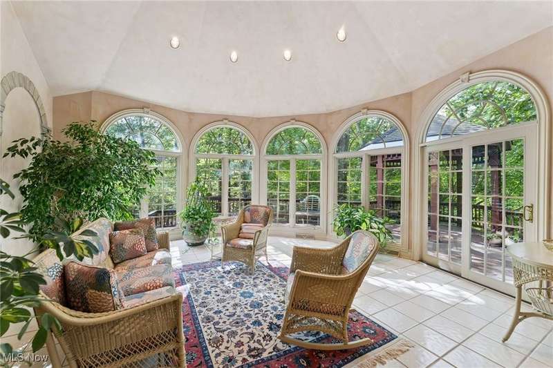 Welcome to this Canyon Lakes retreat, a custom-built residence set on a 1.6-acre double lot in Chagrin Falls (Bainbridge Township, Kenston Schools). Designed in 1993 as the sellers' "forever home," every choice reflects a commitment to quality living?hardwood floors, beamed ceilings, moldings, built-ins, solid doors, brass fixtures, elegant wallpapers, and finishes that stand the test of time. With more than 6,500 sq. ft. above grade plus 3,500 sq. ft. in the walkout lower level, the home offers both open gathering spaces and private rooms for quiet moments. A soaring wall of windows topped by a stunning Palladian window floods the great room with light, while the kitchen, sunroom, formal dining and living rooms, and library provide versatility for daily living and entertaining. A walk-in pantry, mudroom, laundry, two powder rooms, and a 3-car garage complete the first floor. Upstairs, the owner's suite includes a sitting area, walk-in closet, and spacious bath with dual vanities, soaking tub, and shower. Guest en-suite and Jack-and-Jill bedrooms are thoughtfully arranged. The lower level is designed for fun and function?perfect for game day, sleepovers, or holiday gatherings. Multiple recreation areas, kitchenette, full bath, and exercise space open to patios and wooded views. Decks with a gazebo invite entertaining or quiet mornings surrounded by nature. Located in sought-after Canyon Lakes, close to highways, shopping, and the Village of Chagrin Falls, this property is more than a house?it's a home where memories are made, and quality is felt in every detail.
