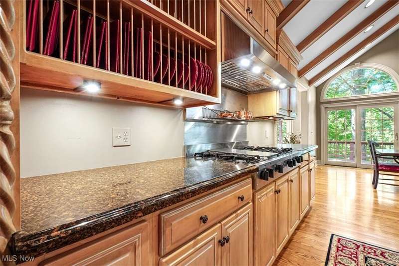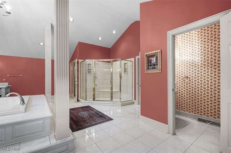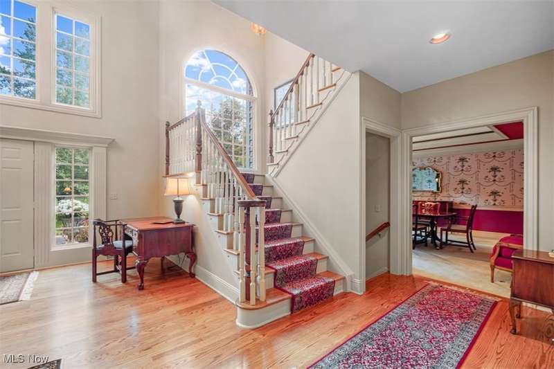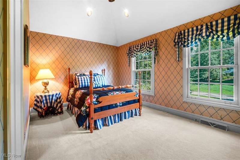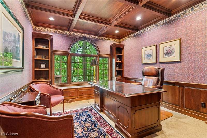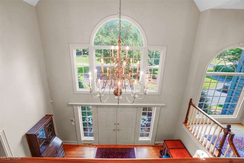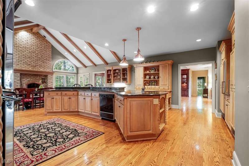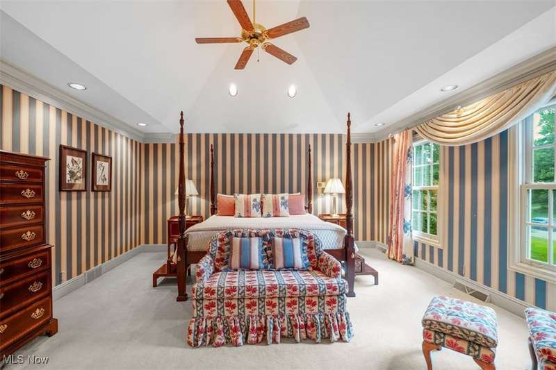Welcome to this Canyon Lakes retreat, a custom-built residence set on a 1.6-acre double lot in Chagrin Falls (Bainbridge Township, Kenston Schools). Designed in 1993 as the sellers' "forever home," every choice reflects a commitment to quality living?hardwood floors, beamed ceilings, moldings, built-ins, solid doors, brass fixtures, elegant wallpapers, and finishes that stand the test of time. With more than 6,500 sq. ft. above grade plus 3,500 sq. ft. in the walkout lower level, the home offers both open gathering spaces and private rooms for quiet moments. A soaring wall of windows topped by a stunning Palladian window floods the great room with light, while the kitchen, sunroom, formal dining and living rooms, and library provide versatility for daily living and entertaining. A walk-in pantry, mudroom, laundry, two powder rooms, and a 3-car garage complete the first floor. Upstairs, the owner's suite includes a sitting area, walk-in closet, and spacious bath with dual vanities, soaking tub, and shower. Guest en-suite and Jack-and-Jill bedrooms are thoughtfully arranged. The lower level is designed for fun and function?perfect for game day, sleepovers, or holiday gatherings. Multiple recreation areas, kitchenette, full bath, and exercise space open to patios and wooded views. Decks with a gazebo invite entertaining or quiet mornings surrounded by nature. Located in sought-after Canyon Lakes, close to highways, shopping, and the Village of Chagrin Falls, this property is more than a house?it's a home where memories are made, and quality is felt in every detail.