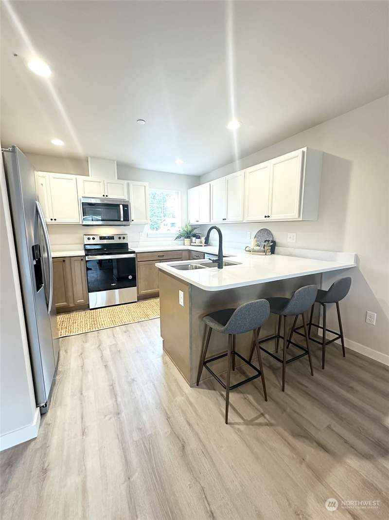 Brand new townhome in Bellingham's new Sunset Village community. This 3 story, 3 bedroom, 1.75 bath interior unit features an oversized garage, stainless steel appliances, quartz countertops & mixed cabinetry. Walkable to shopping, dining, bus line, & trail system. Don't miss out on a great opportunity! SELLER OFFERING up to $10,000 towards closing costs.