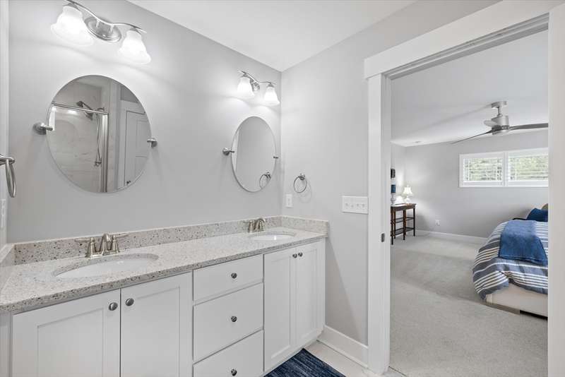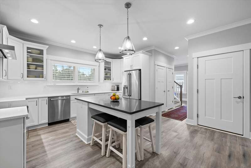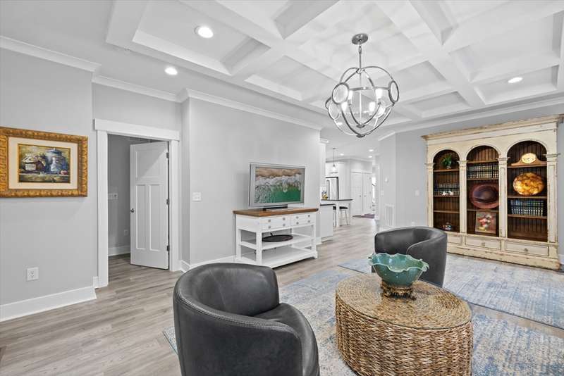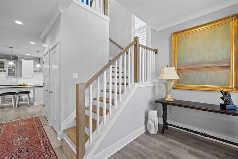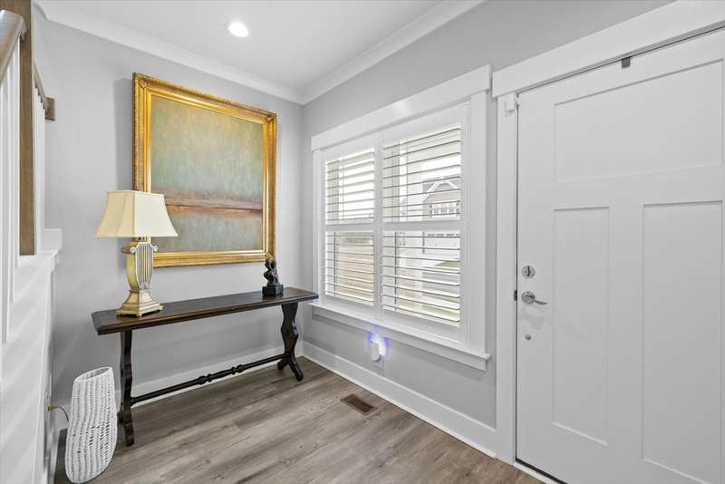Location, location, location! East of Route 1 is the most desirable location - This 3,094 sq/ft custom home is located just one mile from the Breakwater Junction Trail that connects Rehoboth and Lewes where you can ride your bike or walk on this lovely trail. Rehoboth Avenue is a mere 2.7 miles away! Custom craftsmanship and masterful design are featured in this previous model home. As you enter the home, shiplap adorns the foyer. Luxury vinyl plank flooring is featured on the first floor. The chef's kitchen is appointed with a 36 inch Bosch induction range, GE Profile Cafe appliances, crisp white cabinetry with white quartz countertops, an island with room for seating, and an amazing Murphy door that opens to the pantry. The main level features a laundry room with an adjacent half bath. Additional highlights include a nicely appointed sunroom off of the living room with views of the trees and landscaping. Shiplap is featured on the walls and a coffered ceiling in the living room makes the room look so elegant. The first floor owner's suite is off of the living room and features a luxurious two person shower with beautiful tile work and frameless shower door. The second floor features four very spacious bedrooms with en suites and two bedrooms have covered balconies for you to sit and enjoy the breeze. Other important features include: Encapsulated crawlspace, climate controlled two-car garage with epoxy floor, a side entrance, and heat and air via mini-split. Community features include: Exclusive 20 home luxury homes, 1 mile to Breakwater Junction Trail, East of Route 1 with easy access onto Coastal Highway, minutes to downtown Rehoboth Beach boardwalk, restaurants, and entertainment. Two gas grills - community cooking and gathering space; stylish fire pit with ample seating - perfect for evenings with family and friends are located within the community.