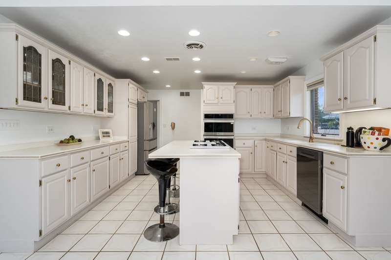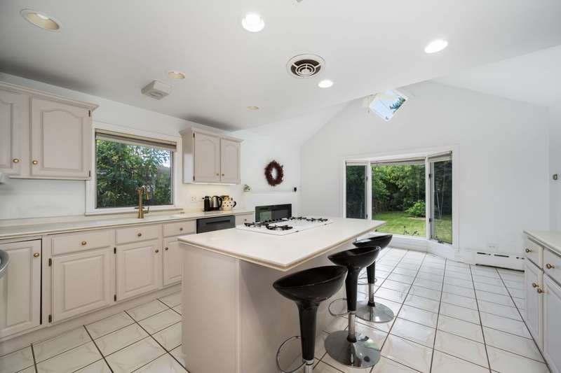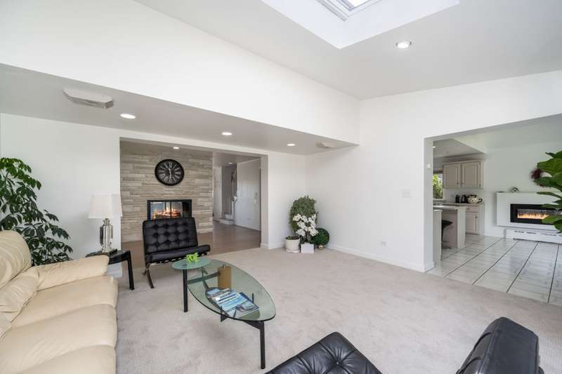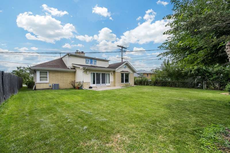 Welcome home to this beautifully updated 3-bedroom, 2-bathroom brick home in a prime Park Ridge location! The circular driveway leads you into a light-filled interior featuring vaulted ceilings with skylights, updated flooring, and expansive windows that bathe the home in natural light. The living room and dining room are seamlessly divided by a striking stone, double-sided gas fireplace-an elegant focal point for both spaces. The thoughtfully renovated kitchen boasts new appliances, abundant cabinetry, an island with seating, and an additional electric fireplace feature. The main level also offers a full bathroom and two generously sized guest bedrooms, providing comfort and flexibility for family or visitors. The primary suite encompasses the entire upper level, featuring soaring ceilings, ample closet space, new flooring, and a private full bath. Step outside to your private, fully fenced backyard-an inviting retreat with ample space for entertaining, gardening, or relaxing. Additional updates include a brand new roof (Sept. 2025), fresh interior paint, new flooring upstairs, new carpet in the family room, linoleum flooring in the basement, updated HVAC, water heater radiators in the living and family rooms, and an electric decorative fireplace. This exceptional home is set within top-rated school boundaries, close to public transportation, shopping, dining, and offers convenient access to O'Hare. Best of all, it's directly across from South Park, complete with a playground, wading pool, tennis courts, and a baseball field.