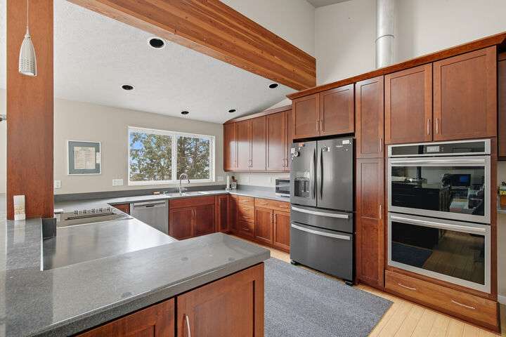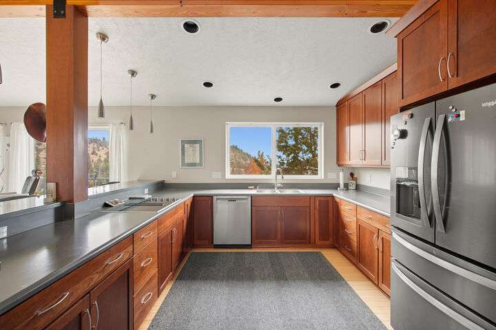 Stunning home with breathtaking views in a serene, private setting just minutes from the Deschutes River Canyon, Steelhead Falls, and public lands. A wall of windows fills the spacious great room and kitchen with natural light and showcases sweeping canyon and valley views. The primary suite is a tranquil retreat with a walk-in shower, soaking tub, and private access to the deck and yard. The finished walk-out basement offers a family room, bathroom, sleeping area, and kitchenette—perfect for guests, multigenerational living, or rec space. This home offers comfort, versatility, and direct access to Central Oregon's outdoor lifestyle. Schedule your tour today!