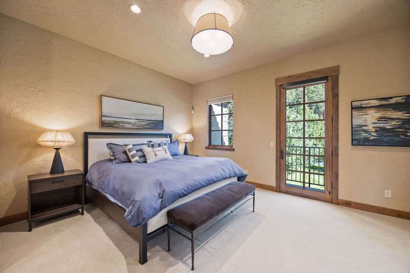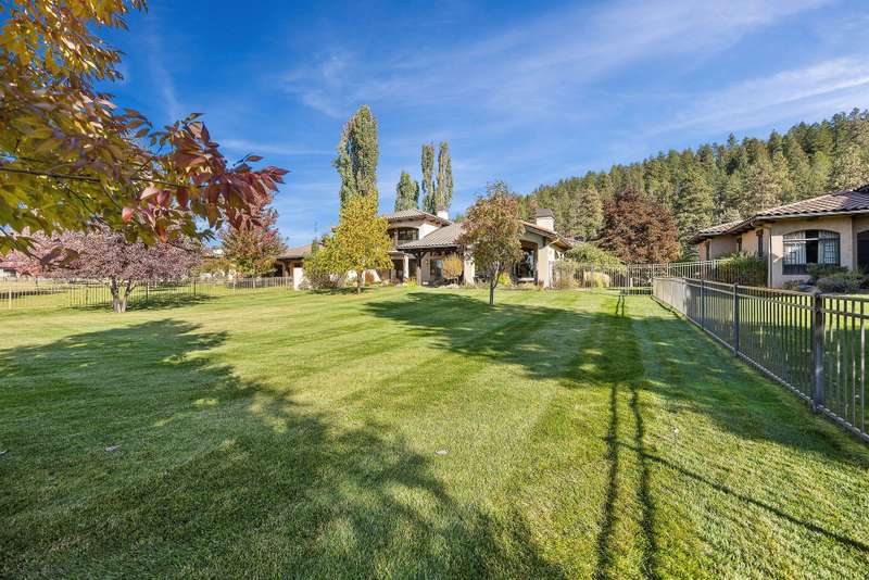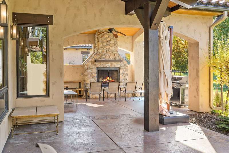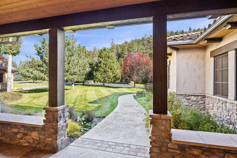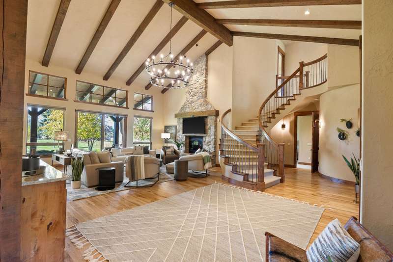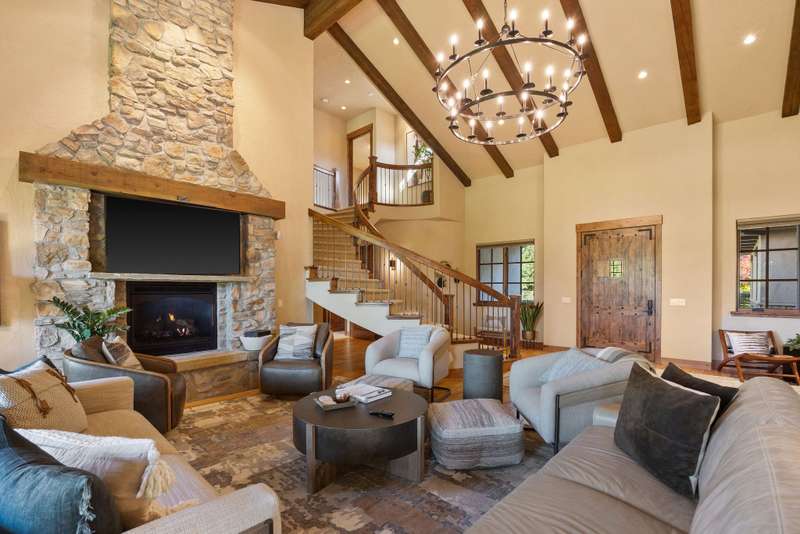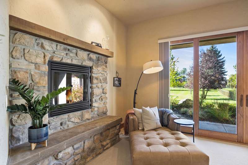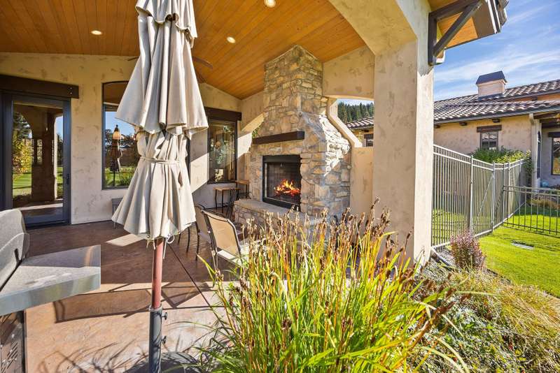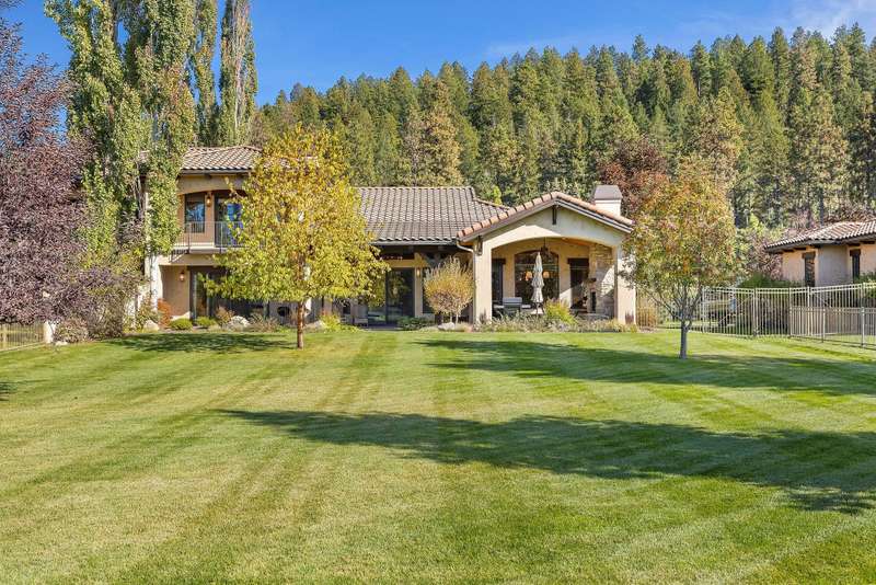 This elegant, Tuscan-style townhome is a rare offering in Bigfork's Cabernet Estates offering the perfect blend of luxury, comfort, and prime location. Step into the impressive main living space with soaring cathedral ceilings accented by rustic timber beams, creating a perfect balance of grandeur and Montana charm. The spacious primary suite on the main floor offers the ultimate in privacy and comfort. Enjoy your own fireplace, a generous walk-in closet, and a spa-like en-suite bathroom with a stunning circular walk-in tile shower. A sweeping circular staircase leads to the upper level, where two well-appointed guest bedrooms and an additional full bath await. The covered patio is perfect for Montana living, featuring a stained concrete floor and a cozy outdoor fireplace-ideal for relaxing or entertaining in any season. Whether you're seeking a low-maintenance primary home or a seasonal escape, this sophisticated townhome offers the perfect Montana lifestyle base.