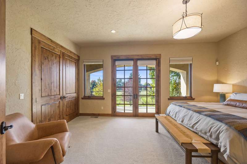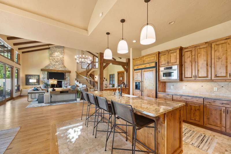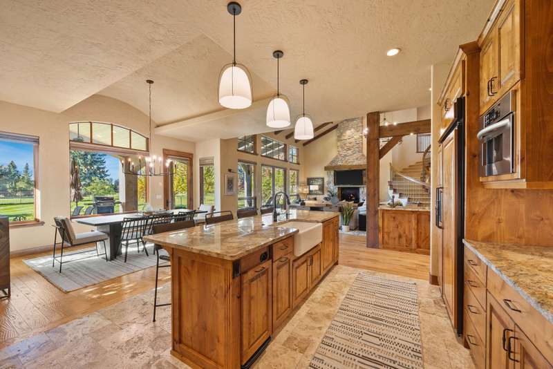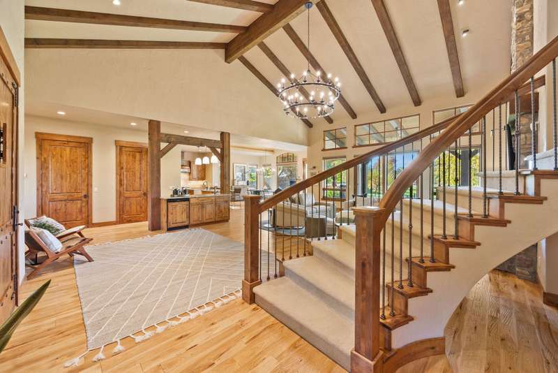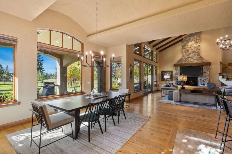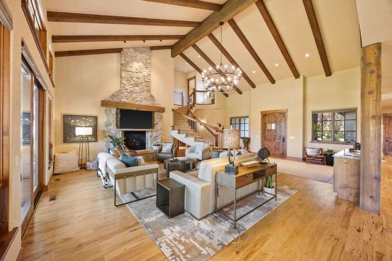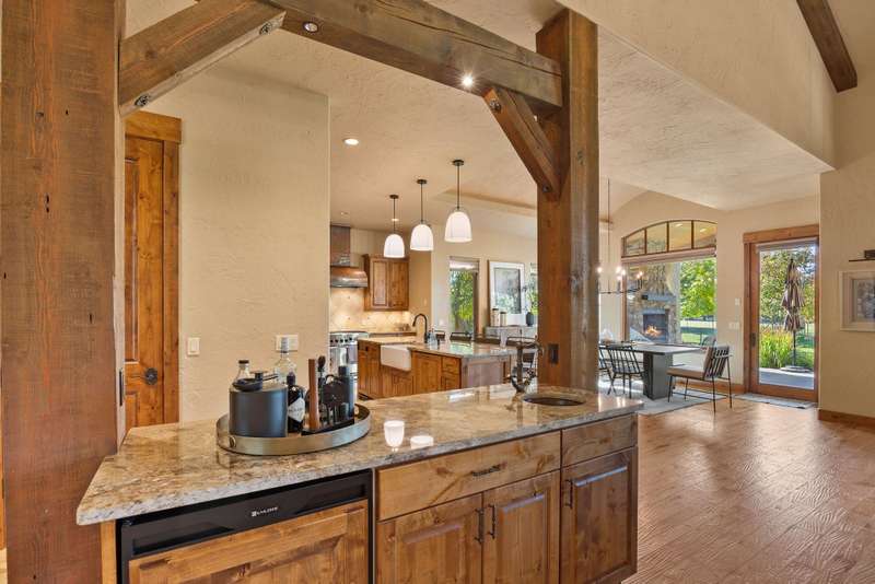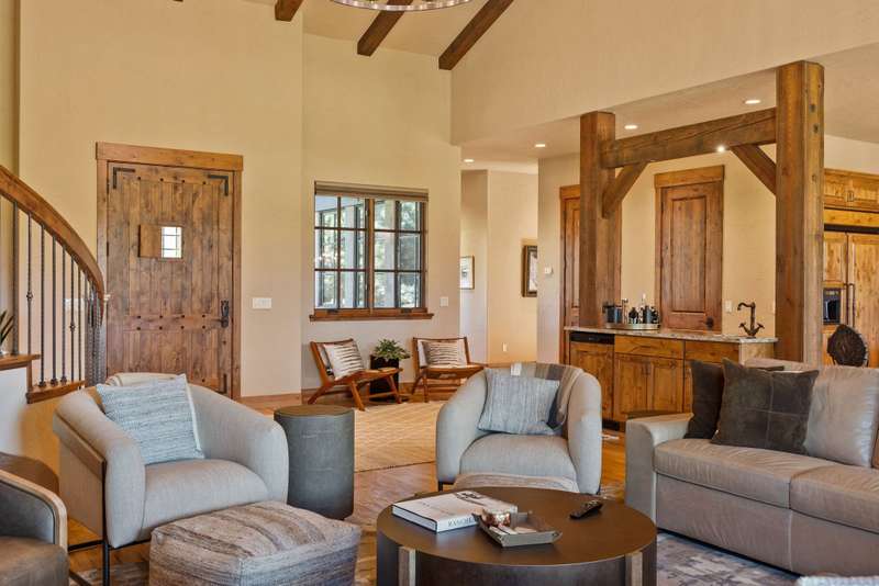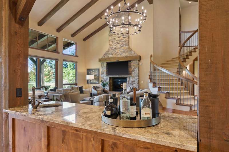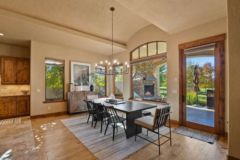 This elegant, Tuscan-style townhome is a rare offering in Bigfork's Cabernet Estates offering the perfect blend of luxury, comfort, and prime location. Step into the impressive main living space with soaring cathedral ceilings accented by rustic timber beams, creating a perfect balance of grandeur and Montana charm. The spacious primary suite on the main floor offers the ultimate in privacy and comfort. Enjoy your own fireplace, a generous walk-in closet, and a spa-like en-suite bathroom with a stunning circular walk-in tile shower. A sweeping circular staircase leads to the upper level, where two well-appointed guest bedrooms and an additional full bath await. The covered patio is perfect for Montana living, featuring a stained concrete floor and a cozy outdoor fireplace-ideal for relaxing or entertaining in any season. Whether you're seeking a low-maintenance primary home or a seasonal escape, this sophisticated townhome offers the perfect Montana lifestyle base.