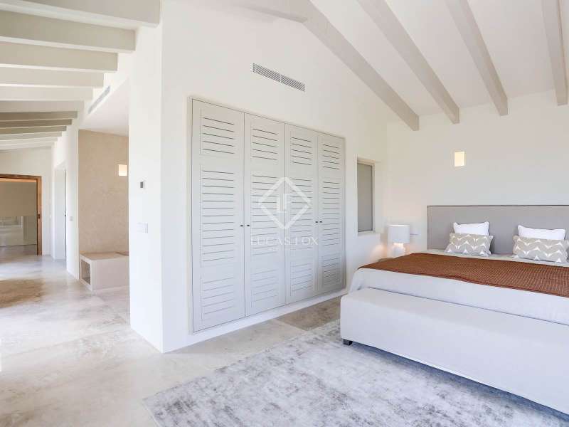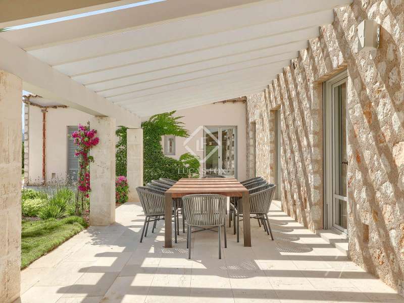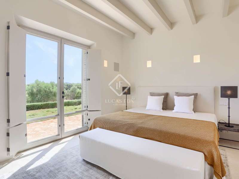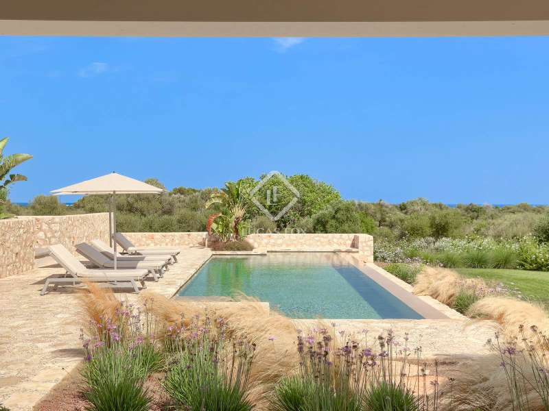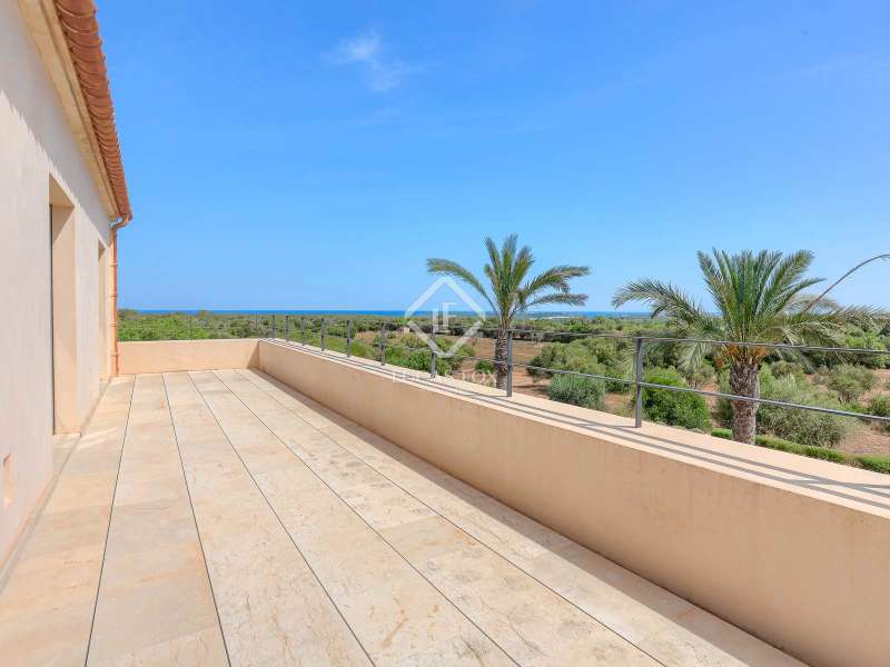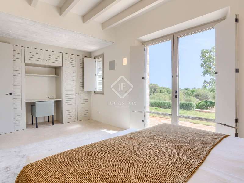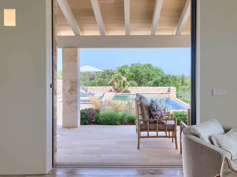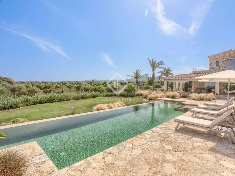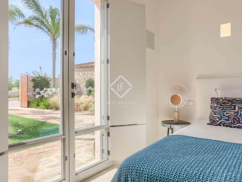 This exclusive project captures the true essence of traditional Mallorcan country estates, with its distinctive reddish soil, privileged natural surroundings, and breathtaking panoramic views of the Mediterranean Sea. Located just moments from the iconic fishing port of Portocolom, the property offers the perfect blend of peace, tradition, and contemporary comfort in one of the most sought-after areas in southeast Mallorca. The finca offers approximately 400 m² of living space on a plot of around 60,200 m², with a total constructed area of about 750 m². It features five bedrooms and four bathrooms, plus a guest toilet. Built in 2024, the property includes two parking spaces and a garage, and is classified as a country estate. The home is distributed over two floors. On the ground floor, there are four en-suite bedrooms, all finished to a high standard. A spacious dining area connects seamlessly to a modern kitchen, which can remain open or be closed off with elegant wooden sliding doors. This area opens onto a semi-covered terrace, ideal for year-round al fresco dining. The bright and airy living room, with large windows, offers direct access to the stunning swimming pool. Also on this floor is a functional laundry room with outdoor access and a guest toilet. The upper floor is dedicated exclusively to the luxurious master suite, which includes a generous walk-in wardrobe, a designer bathroom, and a private terrace with spectacular views of the sea and the iconic Portocolom lighthouse. The property is equipped with solar panels and includes a technical basement housing all the essential machinery, ensuring both comfort and energy efficiency.