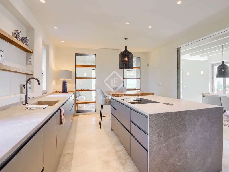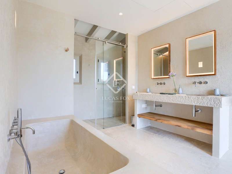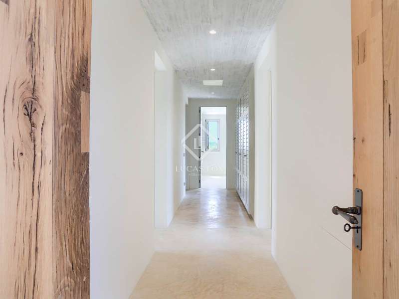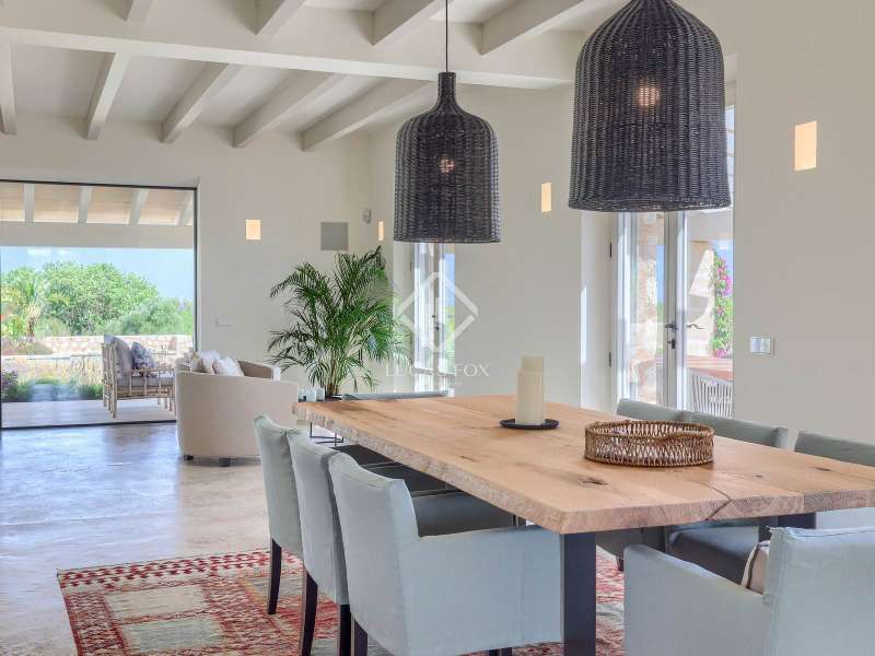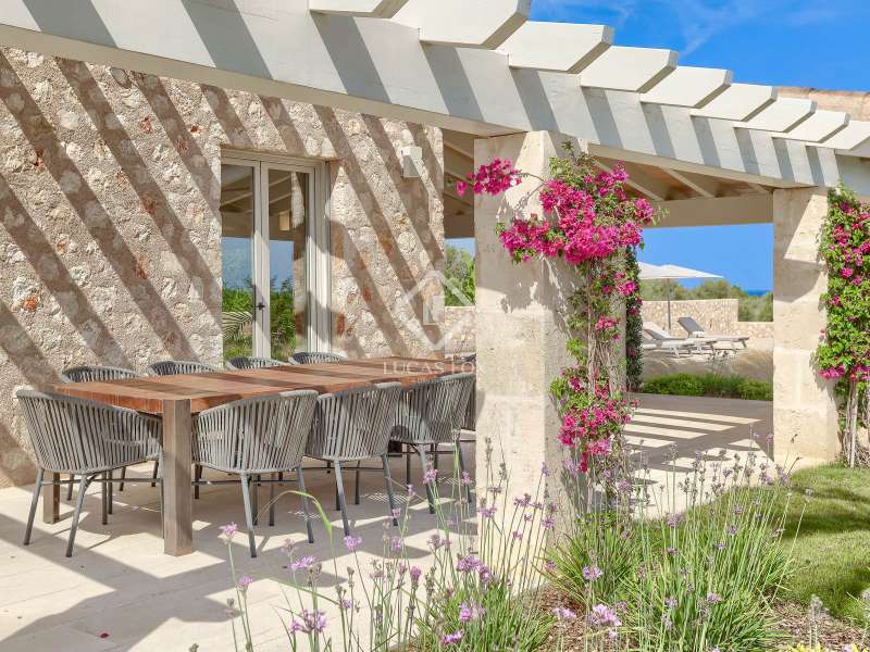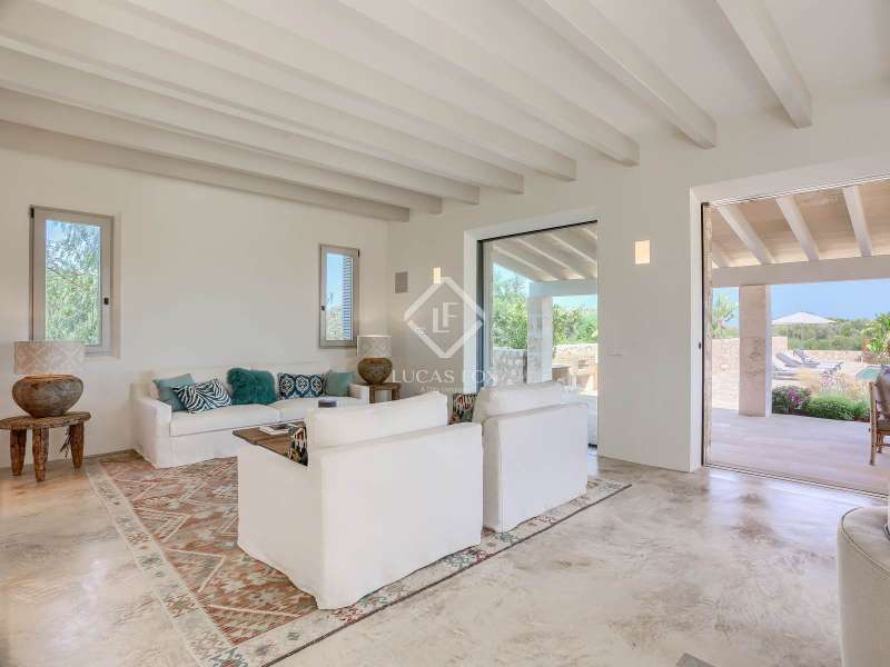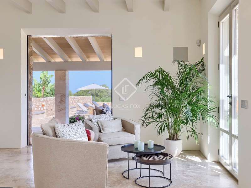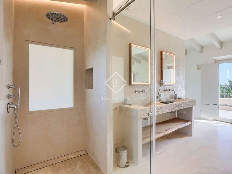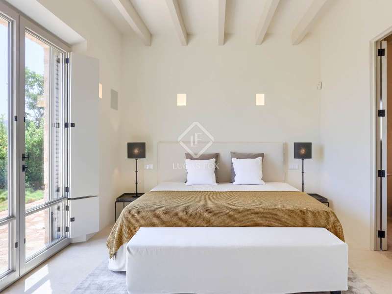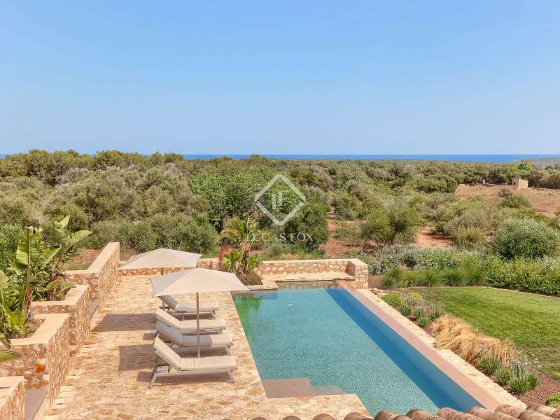 This exclusive project captures the true essence of traditional Mallorcan country estates, with its distinctive reddish soil, privileged natural surroundings, and breathtaking panoramic views of the Mediterranean Sea. Located just moments from the iconic fishing port of Portocolom, the property offers the perfect blend of peace, tradition, and contemporary comfort in one of the most sought-after areas in southeast Mallorca. The finca offers approximately 400 m² of living space on a plot of around 60,200 m², with a total constructed area of about 750 m². It features five bedrooms and four bathrooms, plus a guest toilet. Built in 2024, the property includes two parking spaces and a garage, and is classified as a country estate. The home is distributed over two floors. On the ground floor, there are four en-suite bedrooms, all finished to a high standard. A spacious dining area connects seamlessly to a modern kitchen, which can remain open or be closed off with elegant wooden sliding doors. This area opens onto a semi-covered terrace, ideal for year-round al fresco dining. The bright and airy living room, with large windows, offers direct access to the stunning swimming pool. Also on this floor is a functional laundry room with outdoor access and a guest toilet. The upper floor is dedicated exclusively to the luxurious master suite, which includes a generous walk-in wardrobe, a designer bathroom, and a private terrace with spectacular views of the sea and the iconic Portocolom lighthouse. The property is equipped with solar panels and includes a technical basement housing all the essential machinery, ensuring both comfort and energy efficiency.