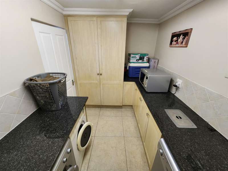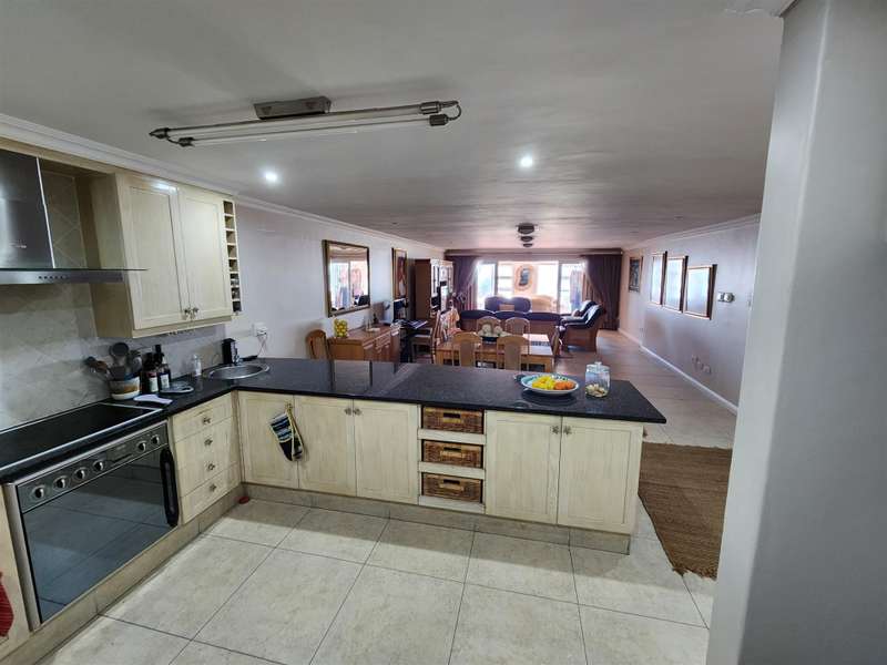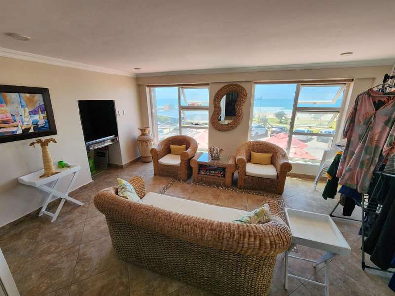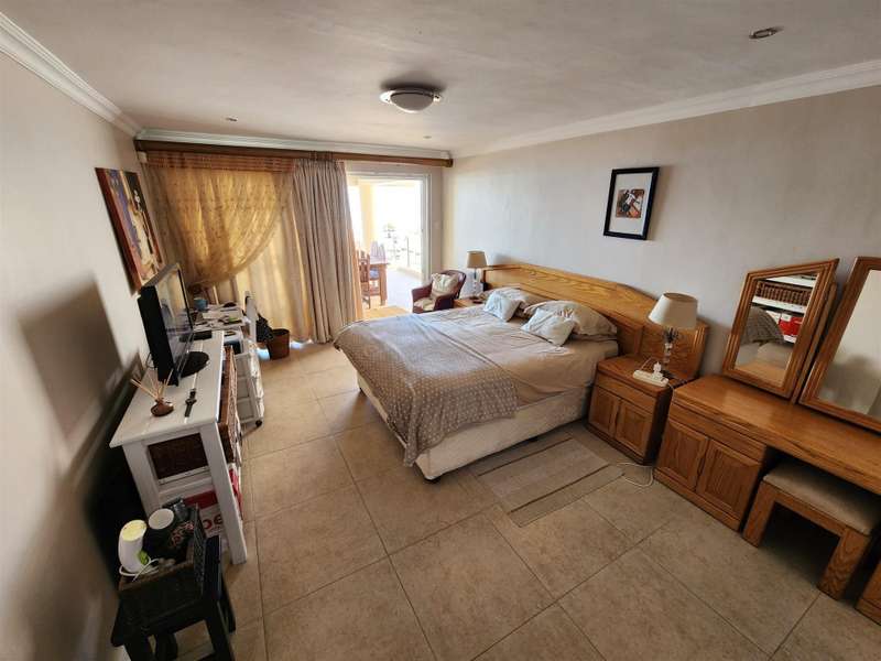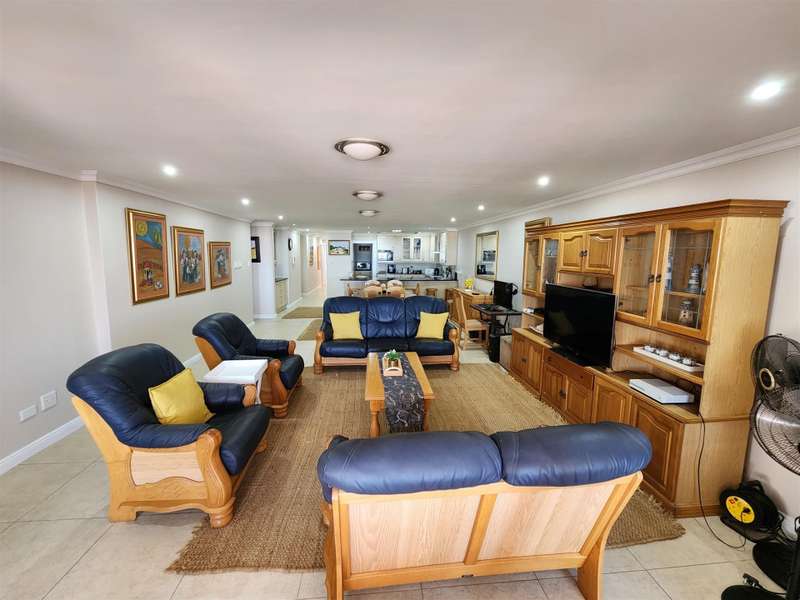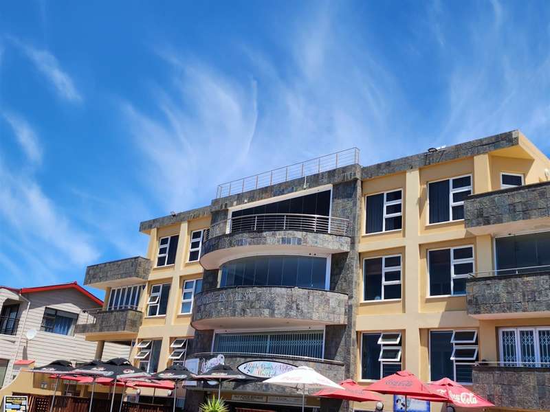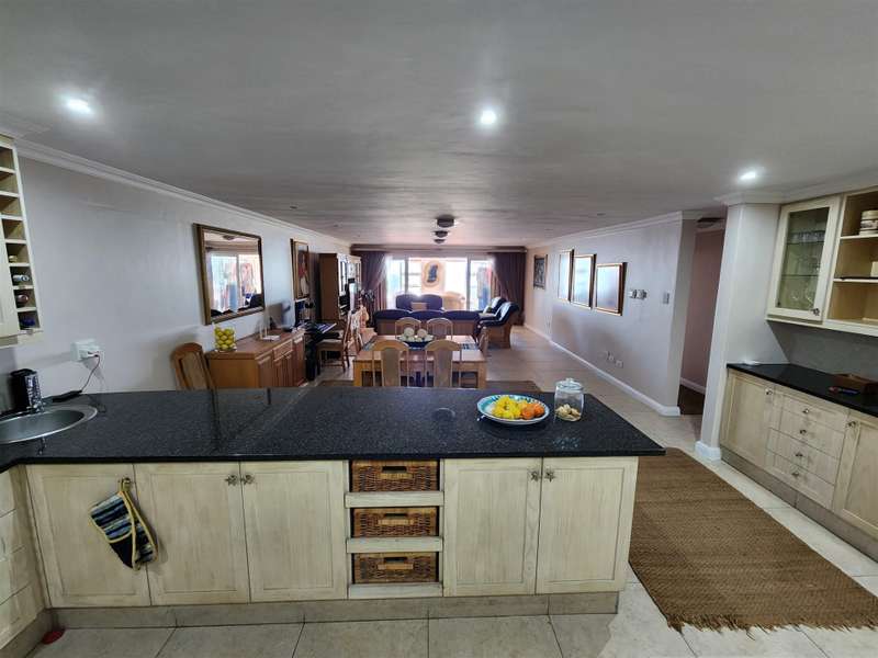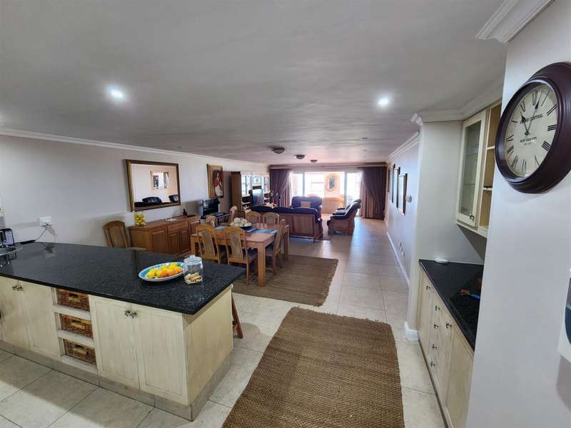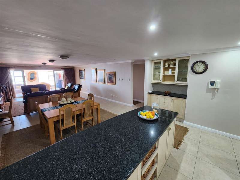 This spacious apartment of 226 m?? offers much more than the camera can capture. A large open plan kitchen, dining and living room area opens to an enclosed balcony with gas braai and lovely views of the ocean and the main beach with its Blue Flag status. The modern kitchen has a separate, large scullery/laundry and offers ample cupboard space for all your requirements. Three large bedrooms, each with an en-suite bathroom as well as a guest toilet rounds off the apartment. The main bedroom opens onto a balcony with lovely views of the main beach and the ocean. The apartment also has a single garage with small lockable storage space in the basement. The apartment is situated opposite Dolphin beach, the main beach of Jeffreys Bay, and in close proximity of the various restaurants, entertainment venues and the business area. This is an excellent investment for holiday makers or permanent residents alike. Do not hesitate as this apartment will not be in the market for very long.