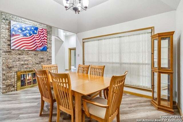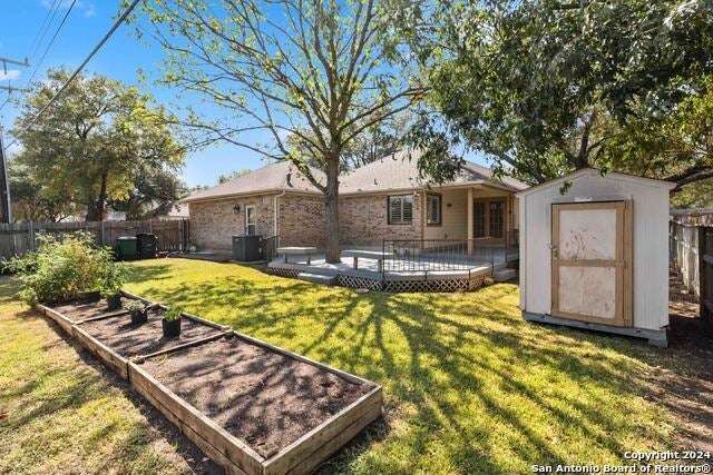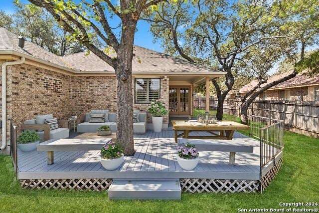 Welcome to your dream home in the highly desirable Woods of Shavano! This nearly 2,500 square foot, one-story residence is perfectly situated on an oversized corner lot, offering both space and privacy in a vibrant community. With three spacious bedrooms and two full baths, this home is ideal for families, professionals, or anyone looking to embrace comfortable living in a prime location. As you step through the inviting entryway, you're greeted by a warm and cozy living area that features a stunning floor-to-ceiling brick fireplace-perfect for gathering with loved ones on chilly evenings. The large formal dining room provides an elegant setting for entertaining, while the eat-in kitchen is designed for casual meals and intimate gatherings. The kitchen boasts a central island and a high bar, inviting cozy conversations over morning coffee or evening snacks. The home's smart floor plan is enhanced by like-new laminate flooring and carpeting, creating a versatile canvas for your personal style. The bedroom wing is thoughtfully laid out, offering two guest rooms with a well-appointed guest bath, alongside the primary retreat. The primary suite is a true sanctuary, complete with an updated seamless glass walk-in shower and double vanities for ultimate convenience.One of the standout features of this property is the enclosed sunroom, a flexible space that can easily serve as a home office, gym, or playroom, allowing you to tailor it to your lifestyle needs. Step outside onto the expansive, freshly painted deck-an entertainer's dream! Overlooking beautifully tended garden boxes and a spacious backyard oasis, this outdoor area is perfect for summer barbecues and quiet evenings under the stars. With a side-entry garage and extra private street parking, this home offers a level of convenience that is hard to find. Located in a wonderful central area, you'll have easy access to local parks, shopping, dining, and top-rated schools. Don't miss your chance to own this delightful home in Woods of Shavano-a perfect blend of comfort, style, and location. Schedule your private tour today and start envisioning your new life in this beautiful space!