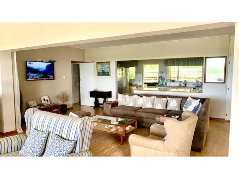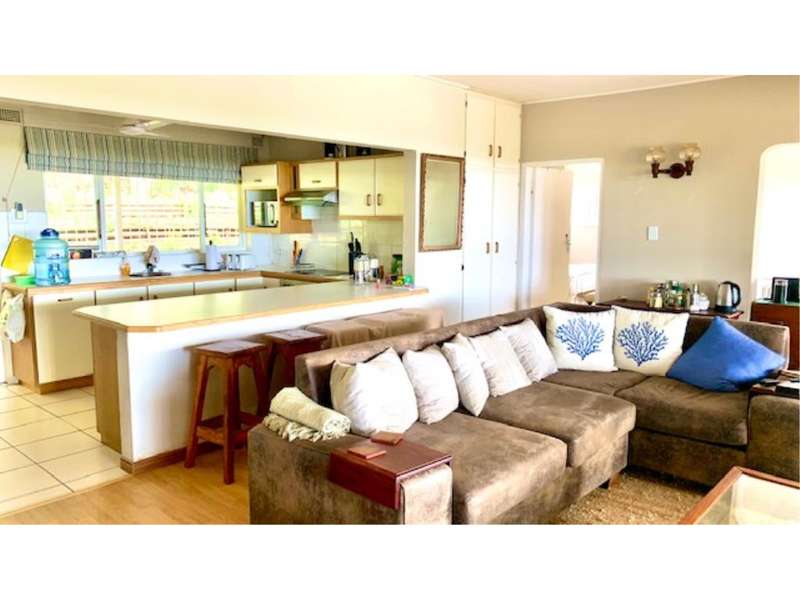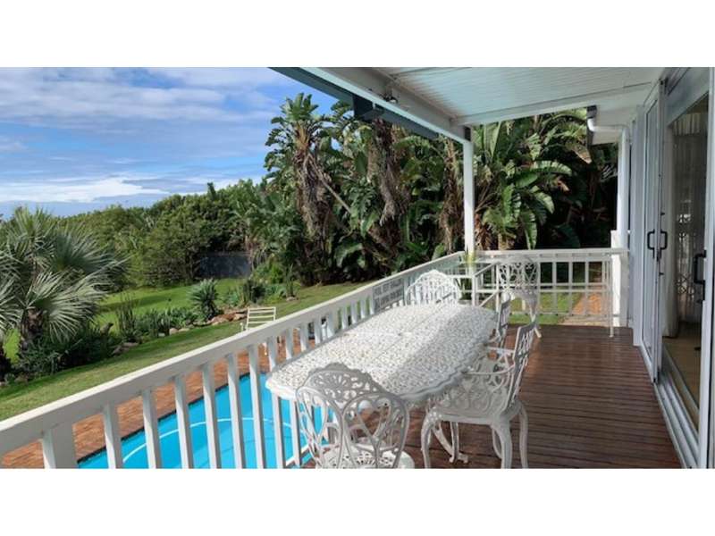 OCEAN VIEWS AND A DAM TO FISH IN PALM BEACH Pretty as a picture, this spacious modern open-plan home has been renovated, there are 4 bedrooms, one being main en-suite and 3 of the bedrooms have aircons. The open-plan lounge opens up to the covered patio where you overlook the pool, ocean, dam and landscaped garden. There is a second lounge which can be used as TV or formal lounge. The dining room is separate and has a sliding door that opens onto the patio. The large spacious kitchen has lots of cupboard space. The covered patio at the back of the kitchen runs the entire length of the house where the aircons, geyser are housed neatly in cupboards, there is still plenty of extra storage space. There is a fitted out study/office and a single garage has been turned into sleeping quarters. Workshop, staff quarters, water tanks, alarm system, beams, automated gate and fencing. This gem has so much to offer. View by appointment only. Call Liz Foster!