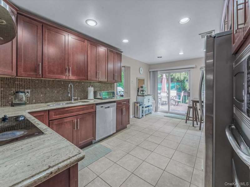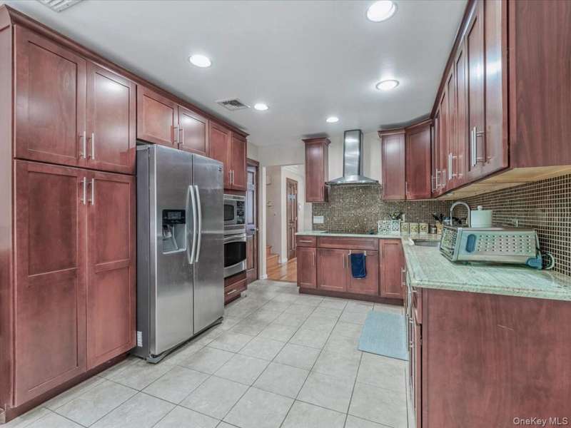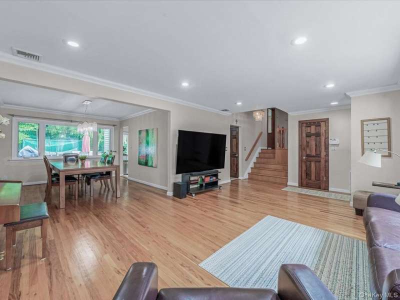 Welcome to this beautiful split-level home nestled on a quiet, tree-lined street in the Herricks School District. Step into a spacious and sun-drenched living room that flows seamlessly into the formal dining room and a large eat-in kitchen with generous counter space and access to the backyard. Just a few steps down, you'll find a comfortable and welcoming den, a half bath, and access to the two-car garage.Upstairs features a spacious primary bedroom with an ensuite bath, along with two additional bedrooms and a second full bathroom. Additional highlights include a finished basement/bonus space with a laundry area, hardwood floors throughout the home, new water heater and new washer/dryer.Ideally located close to shops, dining, major highways, and public transportation, this home presents an incredible opportunity to settle into one of Nassau County's most desirable neighborhoods.