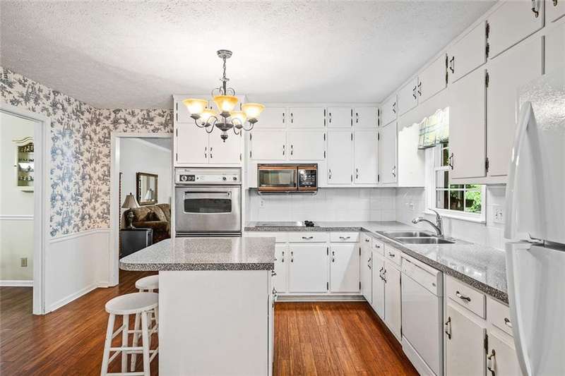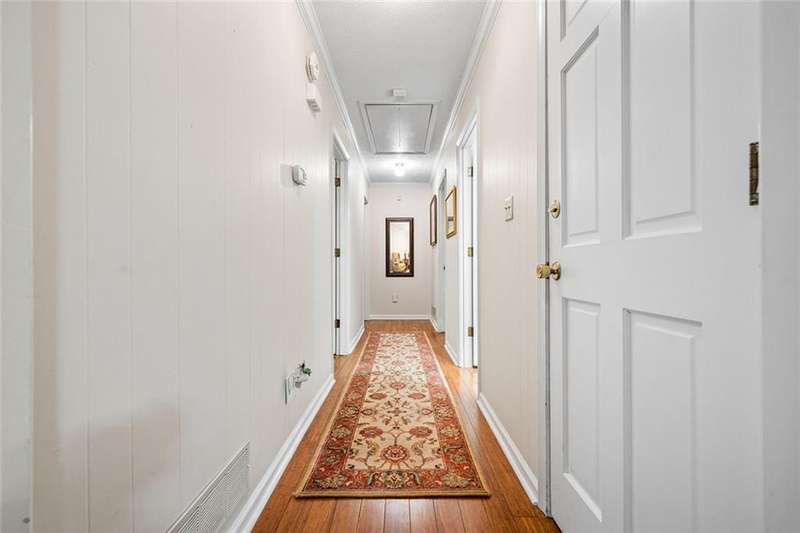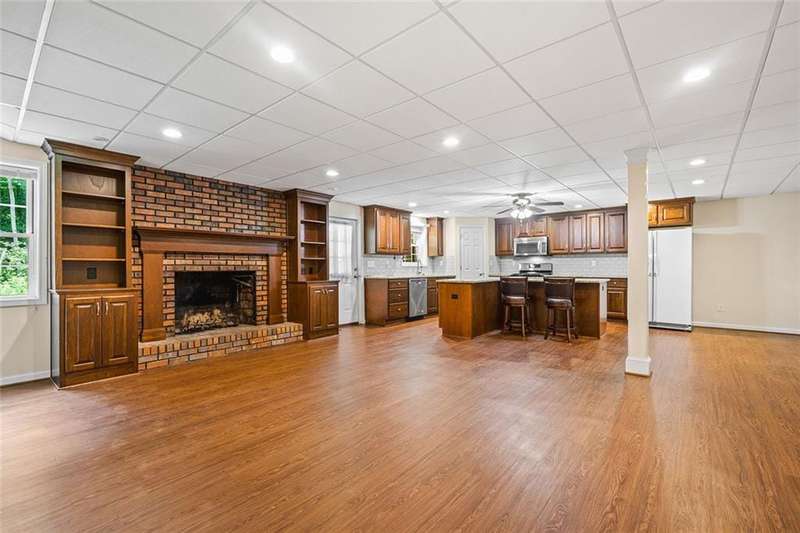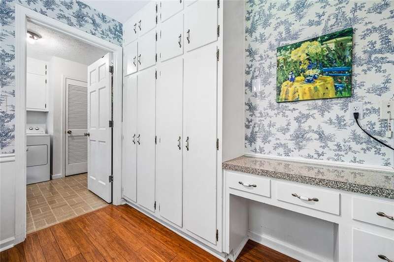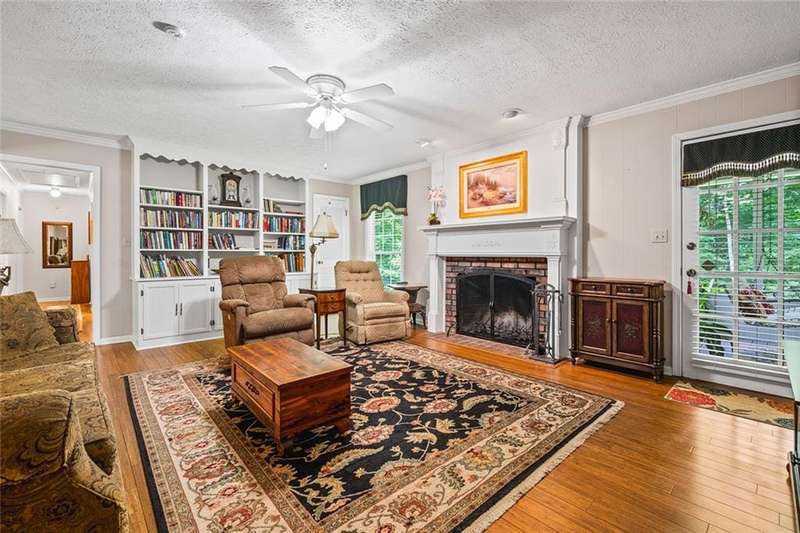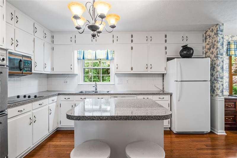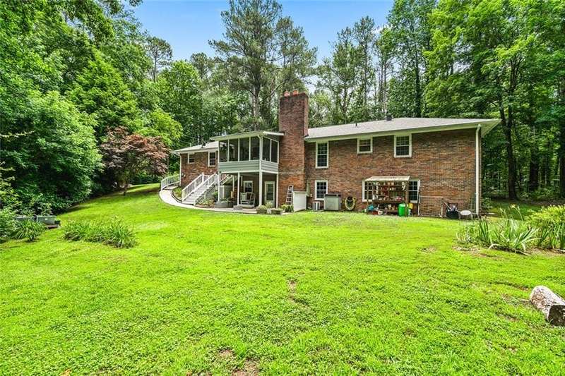 Welcome to this beautifully remodeled, four-sided brick ranch situated on a knoll within its own private sanctuary. The adjacent tract of land offers breathtaking views of a serene lake. The main level features spacious bedrooms, a screened-in porch overlooking a completely private lot, a den with a masonry fireplace, a kitchen island, a stainless double oven, a glass cooktop, and a new microwave, all accented by a slate entry. Enjoy stunning bamboo floors throughout, numerous built-in bookcases, a custom mantle with dentil molding, and custom trim work throughout the house. The finished basement includes an additional bedroom, a home office, a beautifully remodeled tile bath with a large walk-in shower (perfect for an in-law suite), and a huge kitchen with stainless steel appliances and granite countertops, opening up to a large living space with a masonry fireplace. The lower level also features a boat door. Outside, the beautifully landscaped grounds boast an impressive array of blooming plants and a creek, all set on 5.6 acres of total privacy. Located in a great area, close to the East-West Connector, shopping, and schools. Truly a rare find in Cobb County.