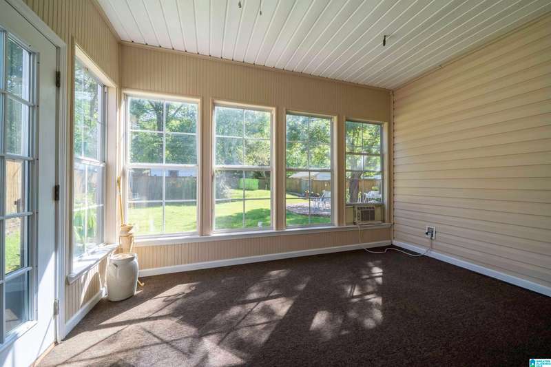 This charming 3 bedroom, 2 bath home in the peaceful Cobblestone community in Pinson, Alabama. Built in 1993, this home has a huge open floorplan with spacious main living area with a cozy fireplace, all one-level living here! The split-bedroom design provides privacy for guests or family, the main bedroom is positioned nicely in the rear of the home, with ensuite with a large walk-in closet. Stay cool in the summer & warm in the winter as you enjoy looking out into your beautifully landscaped backyard from your glassed sunroom. This home has a two-car garage with a spacious driveway for additional parking. All carpeted rooms professionally cleaned making this home move in ready! HVAC yearly service completed in 06/2025 so enjoy how super cool it is inside! This well-maintained home is ready for it's new owners!