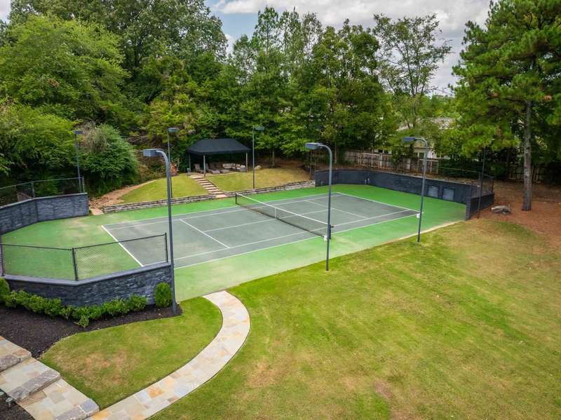 Get ready for family fun in every season! This enchanting 1.49-acre estate is the ultimate playground for kids of all ages?just a short walk from Lausanne School. With 8,000 sq. ft. of welcoming living space plus an 1,800 sq. ft. pool/guest house with gym, there's room for everyone to spread out and enjoy. Summer days will be filled with splashing in the sparkling gunite pool, evening tennis matches on the regulation-size lit court, and family movie nights in the upstairs media room with wet bar. The gourmet kitchen?complete with SubZero refrigeration, double Thermador ovens, and granite counters?makes family meals a joy, while the adjoining keeping room with fireplace invites cozy nights by the fire. Two main-level primary suites offer flexibility for newborns, parents, grandparents, or guests. Surrounded by beautiful acreage, yet close to shopping, dining, medical centers, and the Greenline, this estate is more than a house?it's where fun, laughter, and memories are made every day.