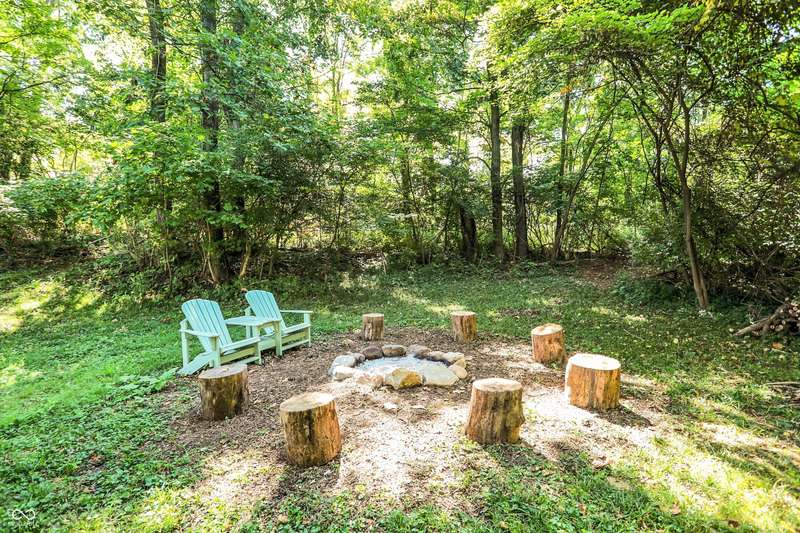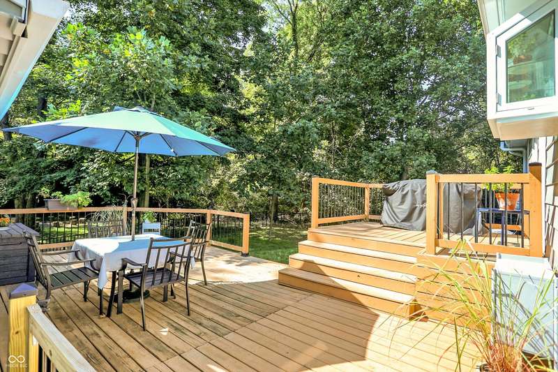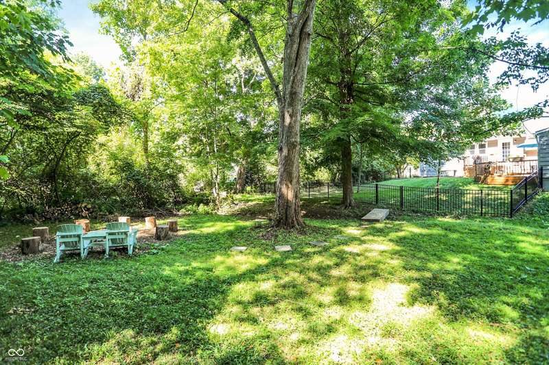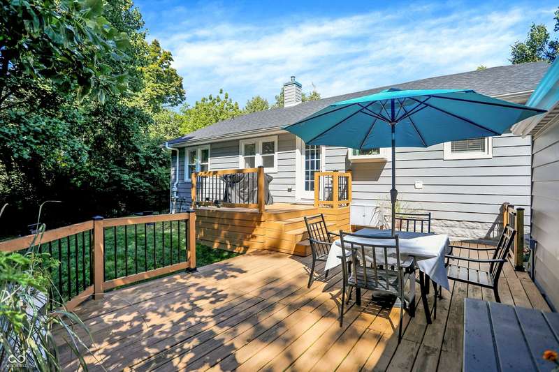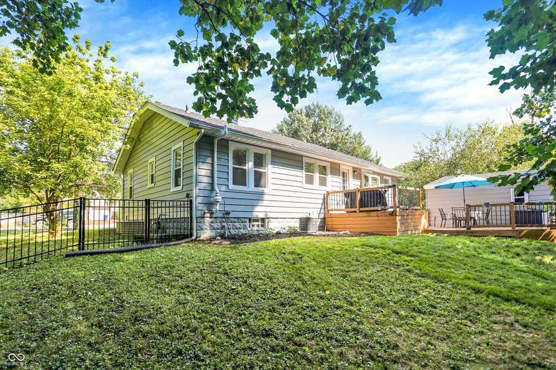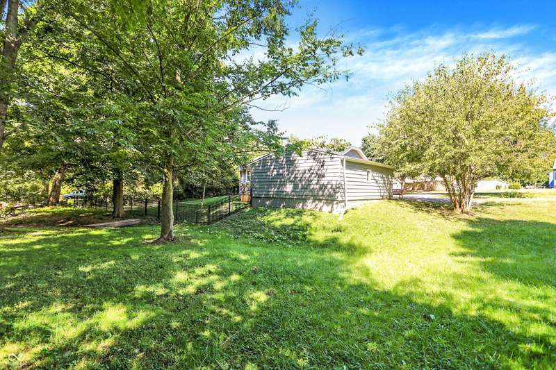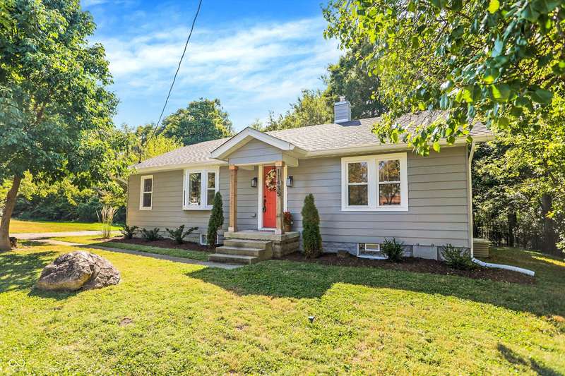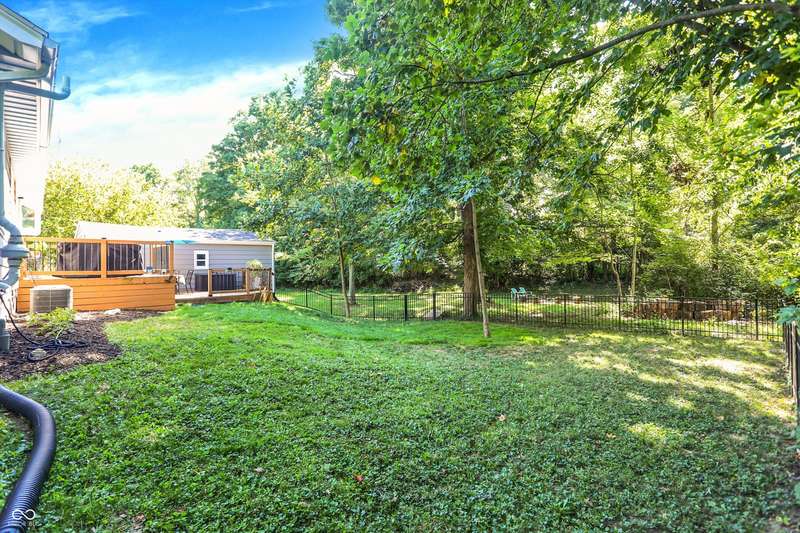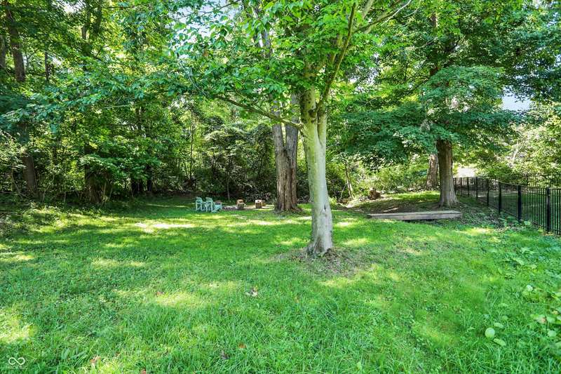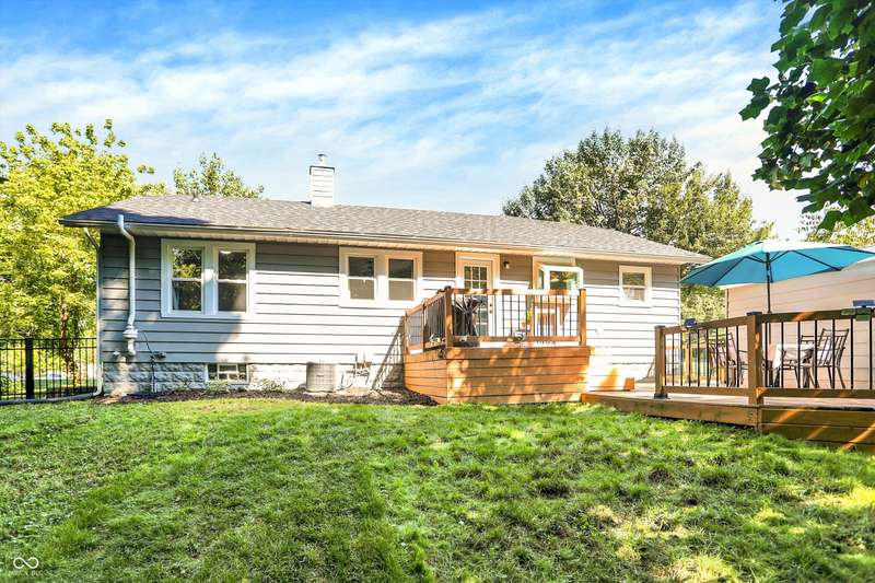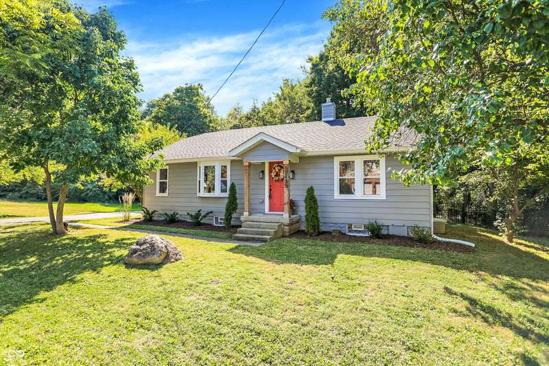 This charming 4-bedroom ranch with finished basement sits on nearly an acre wooded lot. Nestled in historic, charming Oaklandon, the home is just 2 miles from Fort Ben State Park and minutes from Geist. Step outside to your own peaceful retreat: a spacious deck overlooking a gently sloped, private backyard with a firepit surrounded by mature trees. Updates include: (new in 2024) windows , new bamboo flooring/baseboards, new carpet, freshly painted ceiling and trim, water softener and water heater, front-load washer/dryer, aluminum fence. New roof in 2023. All new bright kitchen with quartz countertops, tall cabinetry, new stainless-steel appliances, deep sink & greenhouse window. The mudroom/pantry with new front-load washer & dryer, pantry storage, and sunlit windows with new blinds. Beautiful and unique features like arched walls, dining room brick wall, built-in glass-front cabinet and living room bay window. Beautifully updated full bath with recessed niche, new double vanity, tiled floors & modern fixtures. The finished basement offers versatility too with a 4th bedroom, recreation room, craft room area, and storage areas. Note - no HOA or CCR.