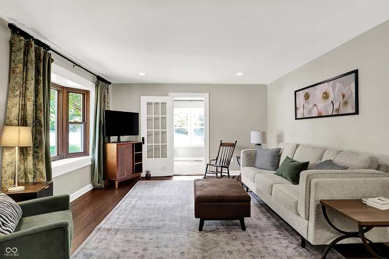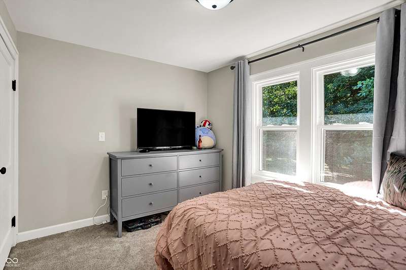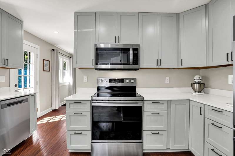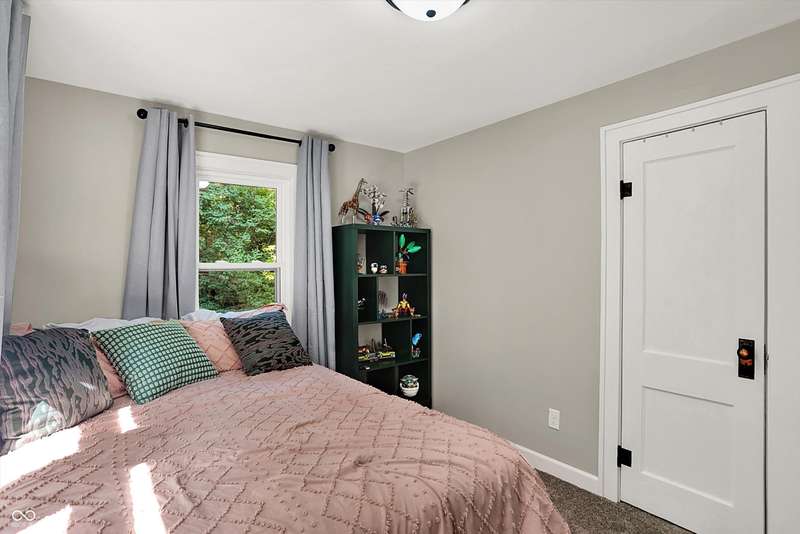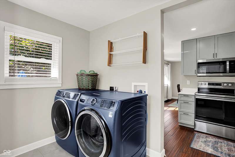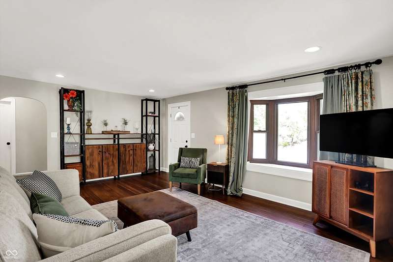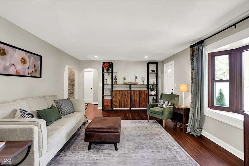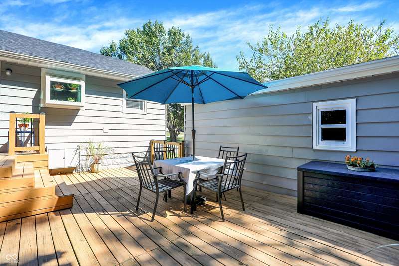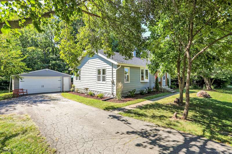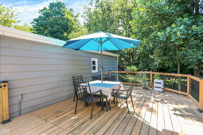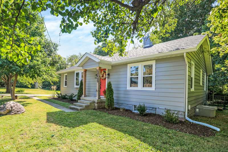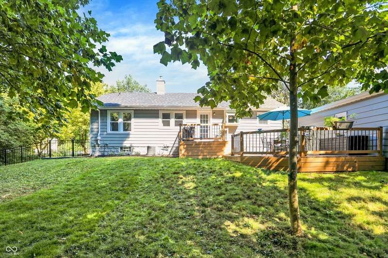 This charming 4-bedroom ranch with finished basement sits on nearly an acre wooded lot. Nestled in historic, charming Oaklandon, the home is just 2 miles from Fort Ben State Park and minutes from Geist. Step outside to your own peaceful retreat: a spacious deck overlooking a gently sloped, private backyard with a firepit surrounded by mature trees. Updates include: (new in 2024) windows , new bamboo flooring/baseboards, new carpet, freshly painted ceiling and trim, water softener and water heater, front-load washer/dryer, aluminum fence. New roof in 2023. All new bright kitchen with quartz countertops, tall cabinetry, new stainless-steel appliances, deep sink & greenhouse window. The mudroom/pantry with new front-load washer & dryer, pantry storage, and sunlit windows with new blinds. Beautiful and unique features like arched walls, dining room brick wall, built-in glass-front cabinet and living room bay window. Beautifully updated full bath with recessed niche, new double vanity, tiled floors & modern fixtures. The finished basement offers versatility too with a 4th bedroom, recreation room, craft room area, and storage areas. Note - no HOA or CCR.