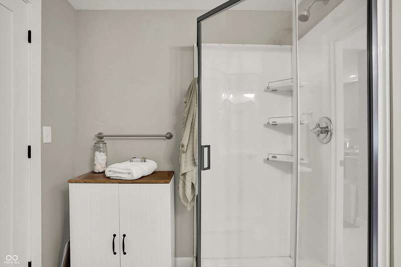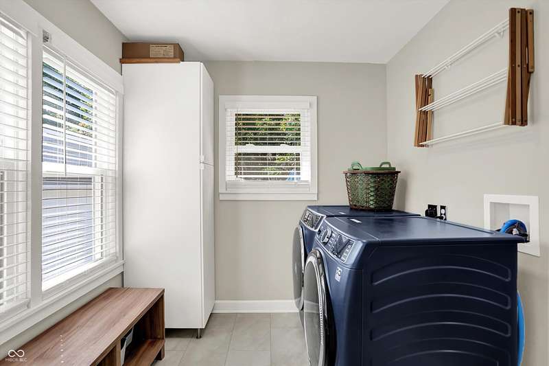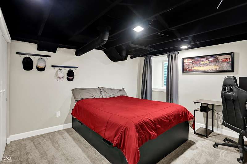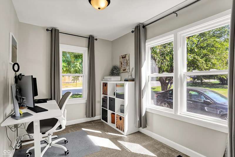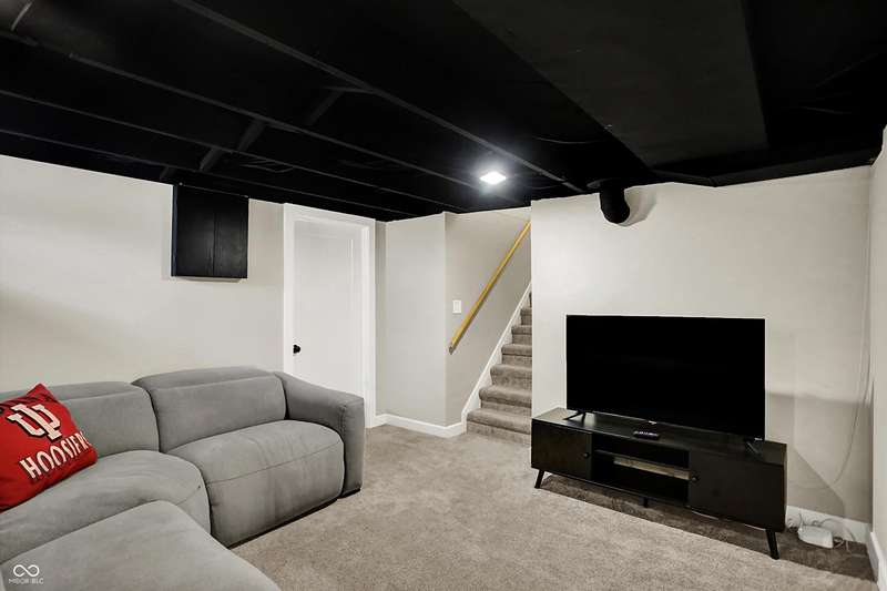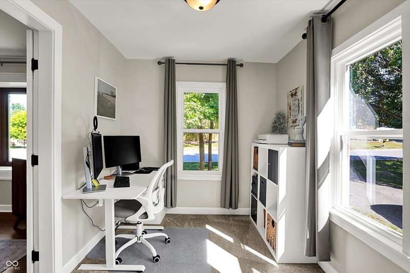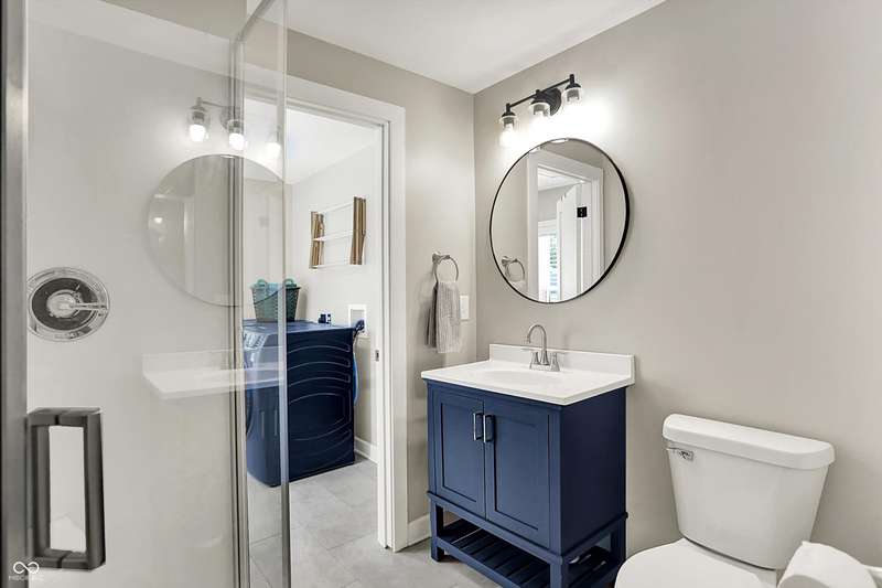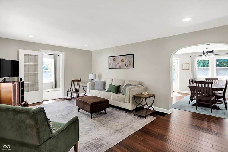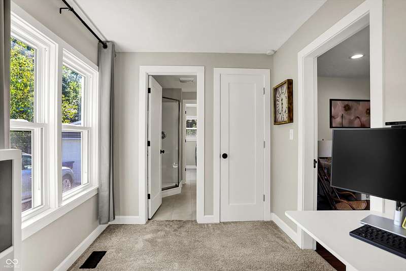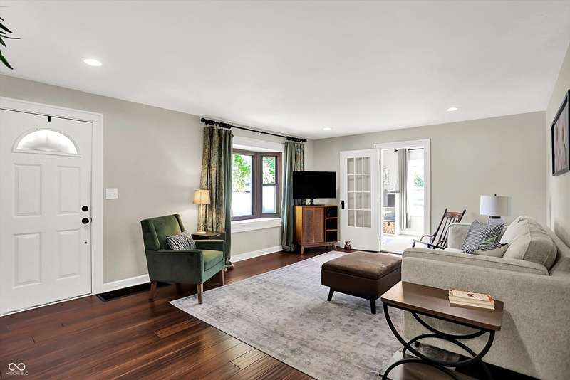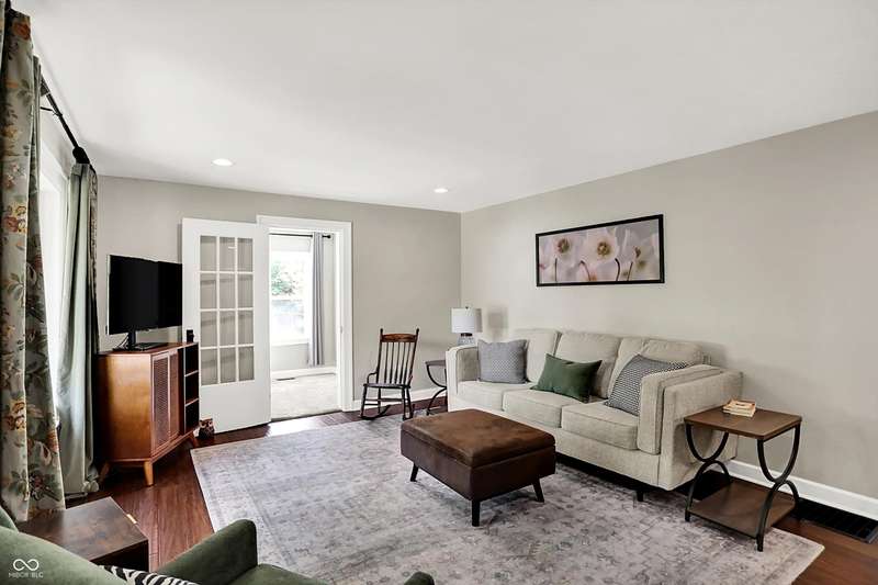 This charming 4-bedroom ranch with finished basement sits on nearly an acre wooded lot. Nestled in historic, charming Oaklandon, the home is just 2 miles from Fort Ben State Park and minutes from Geist. Step outside to your own peaceful retreat: a spacious deck overlooking a gently sloped, private backyard with a firepit surrounded by mature trees. Updates include: (new in 2024) windows , new bamboo flooring/baseboards, new carpet, freshly painted ceiling and trim, water softener and water heater, front-load washer/dryer, aluminum fence. New roof in 2023. All new bright kitchen with quartz countertops, tall cabinetry, new stainless-steel appliances, deep sink & greenhouse window. The mudroom/pantry with new front-load washer & dryer, pantry storage, and sunlit windows with new blinds. Beautiful and unique features like arched walls, dining room brick wall, built-in glass-front cabinet and living room bay window. Beautifully updated full bath with recessed niche, new double vanity, tiled floors & modern fixtures. The finished basement offers versatility too with a 4th bedroom, recreation room, craft room area, and storage areas. Note - no HOA or CCR.