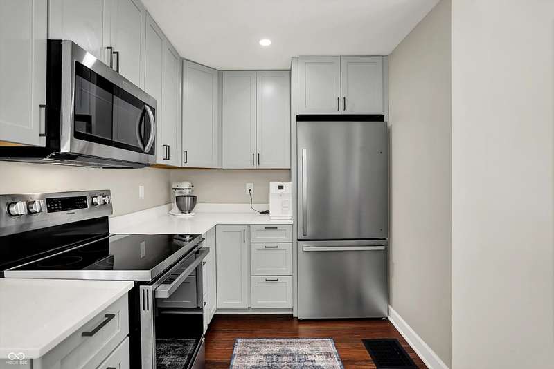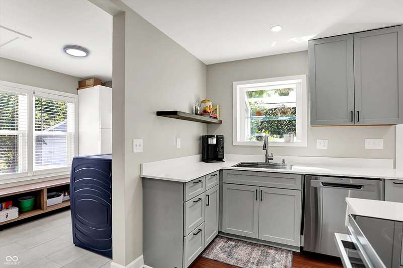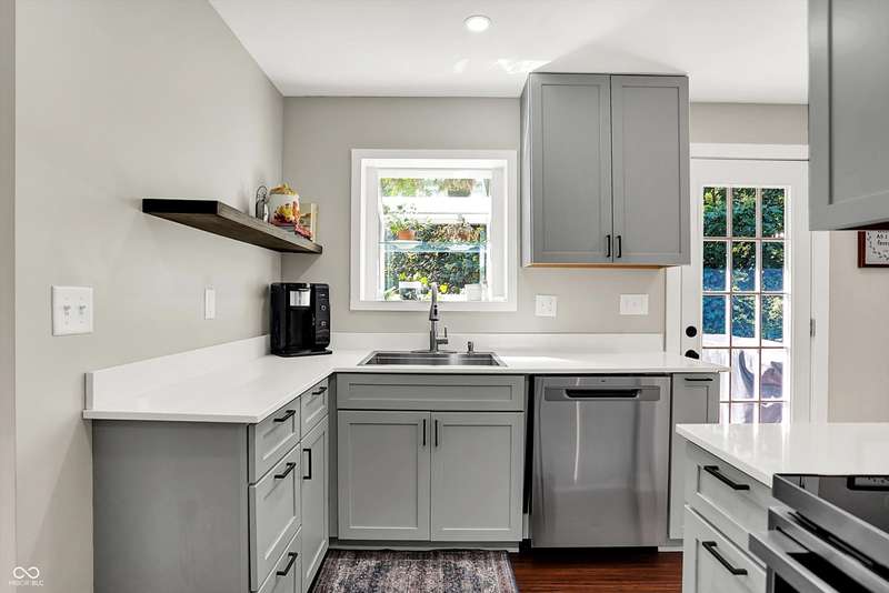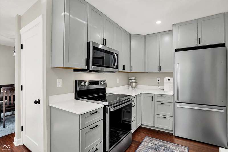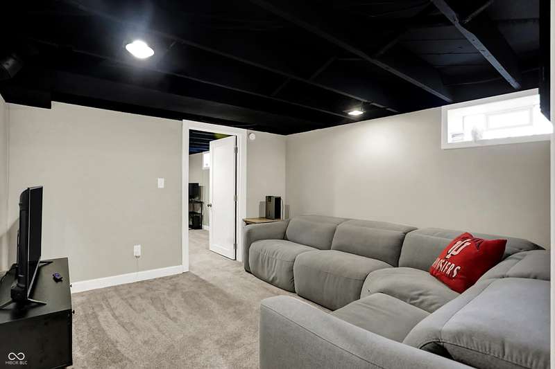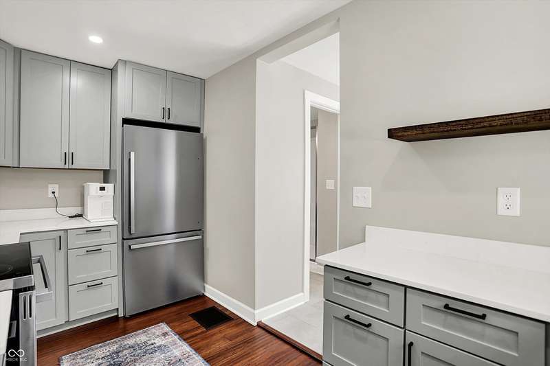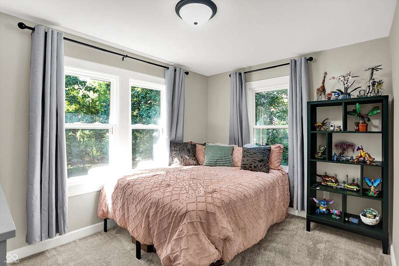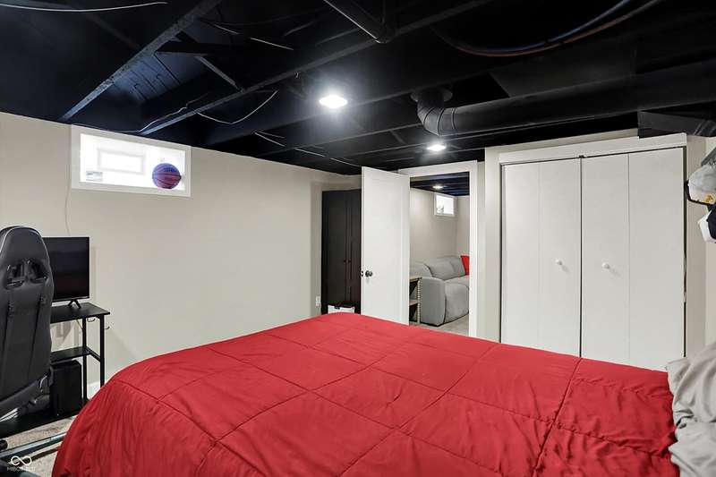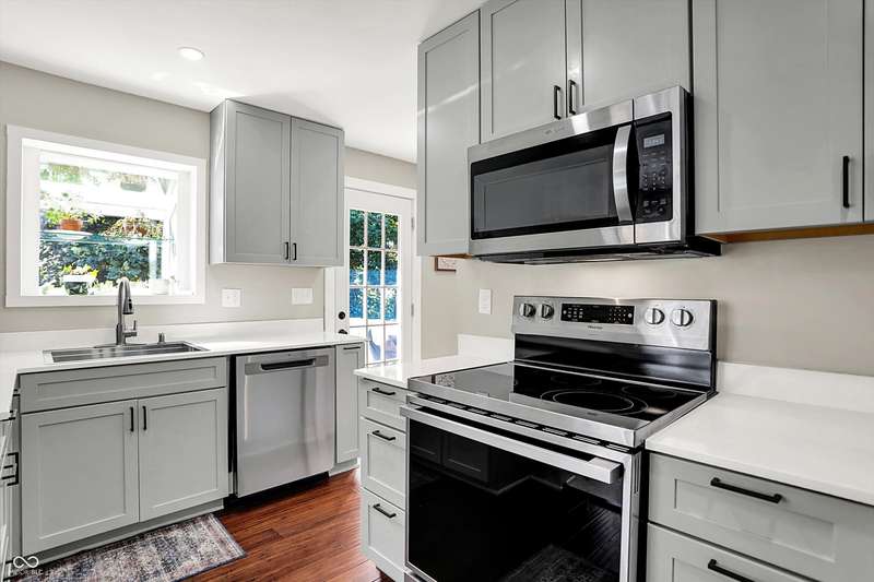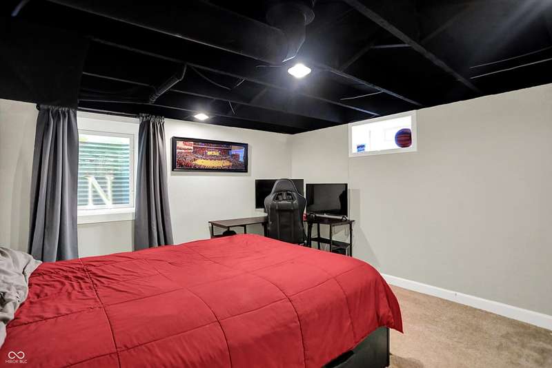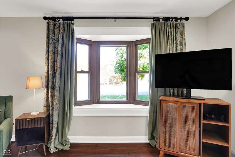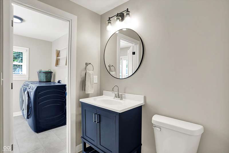 This charming 4-bedroom ranch with finished basement sits on nearly an acre wooded lot. Nestled in historic, charming Oaklandon, the home is just 2 miles from Fort Ben State Park and minutes from Geist. Step outside to your own peaceful retreat: a spacious deck overlooking a gently sloped, private backyard with a firepit surrounded by mature trees. Updates include: (new in 2024) windows , new bamboo flooring/baseboards, new carpet, freshly painted ceiling and trim, water softener and water heater, front-load washer/dryer, aluminum fence. New roof in 2023. All new bright kitchen with quartz countertops, tall cabinetry, new stainless-steel appliances, deep sink & greenhouse window. The mudroom/pantry with new front-load washer & dryer, pantry storage, and sunlit windows with new blinds. Beautiful and unique features like arched walls, dining room brick wall, built-in glass-front cabinet and living room bay window. Beautifully updated full bath with recessed niche, new double vanity, tiled floors & modern fixtures. The finished basement offers versatility too with a 4th bedroom, recreation room, craft room area, and storage areas. Note - no HOA or CCR.