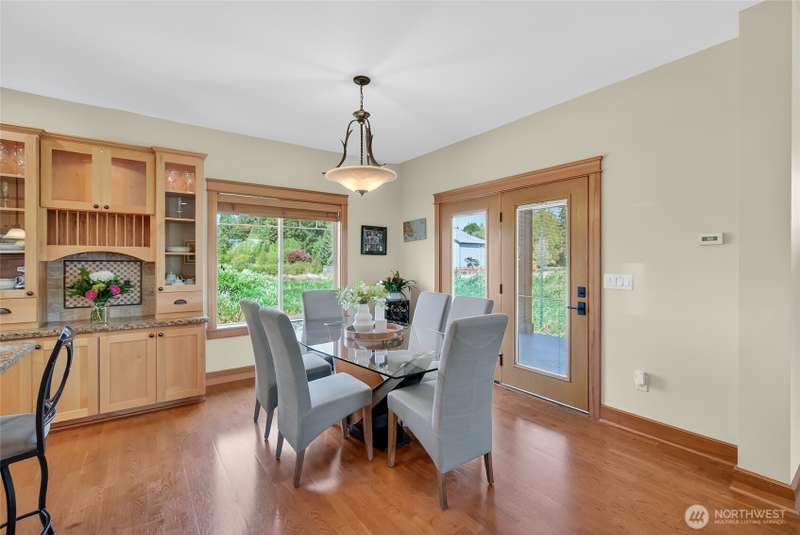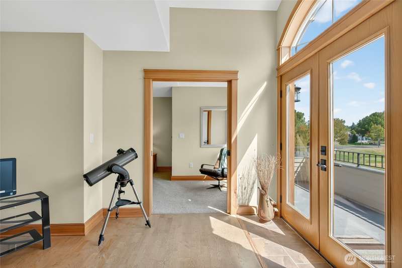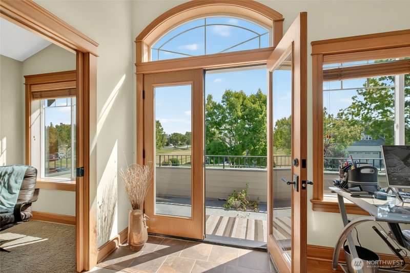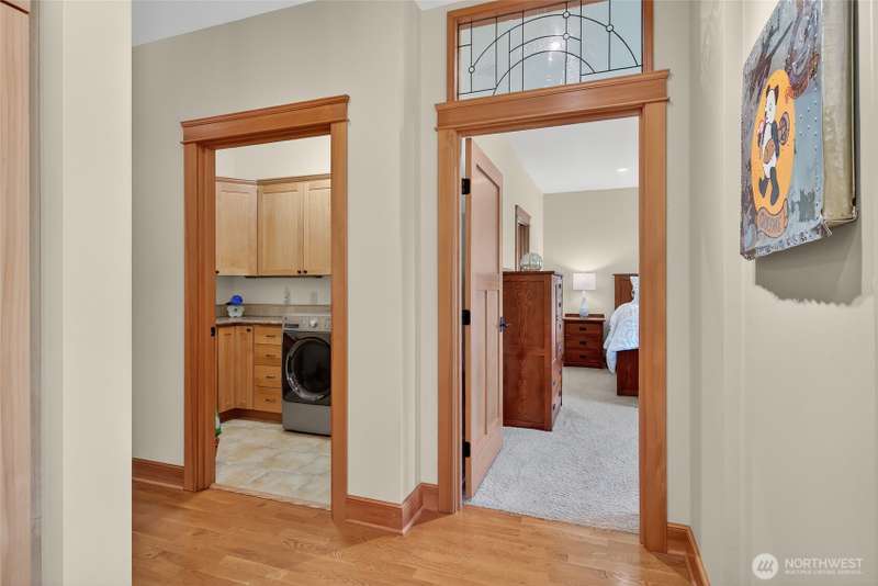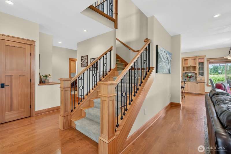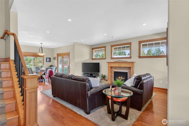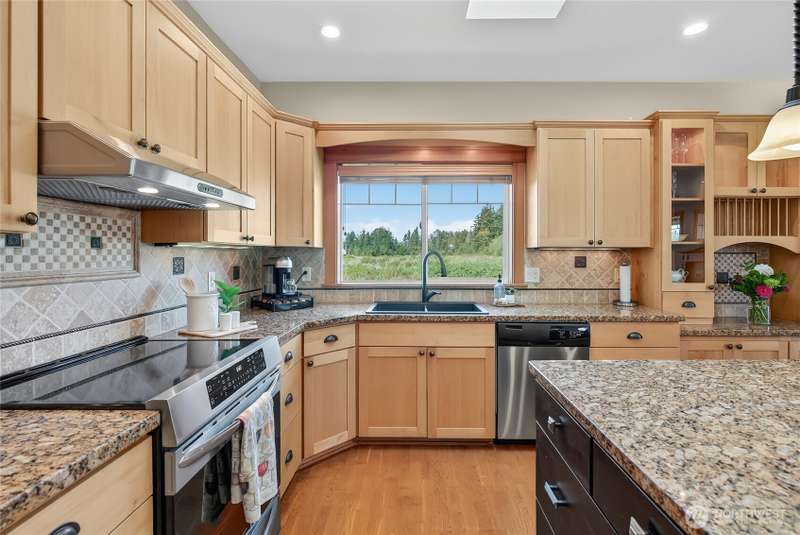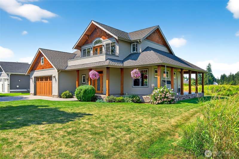 Custom built by well respected builder, JWR. This beautiful home features solid woodwork, premium finishes, unique leaded glass doors and details, large welcoming entry, high ceilings, quality craftsmanship. Primary owner's suite on main level with lots of natural light, large bathroom with soaker tub, tiled shower and private water closet. Beautiful kitchen w/ granite counters, stainless appliances, travertine backsplash, induction cooking, skylights and views! 2 ample sized bedrooms upstairs, full bath and sunny loft/flex area space with balcony for stargazing. Wrap around covered porch lends itself to the best sunset views and entertaining than any of the surrounding homes. End unit property alongside natural protected growth area.